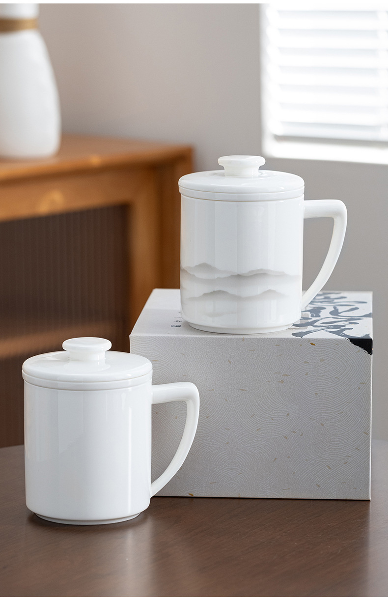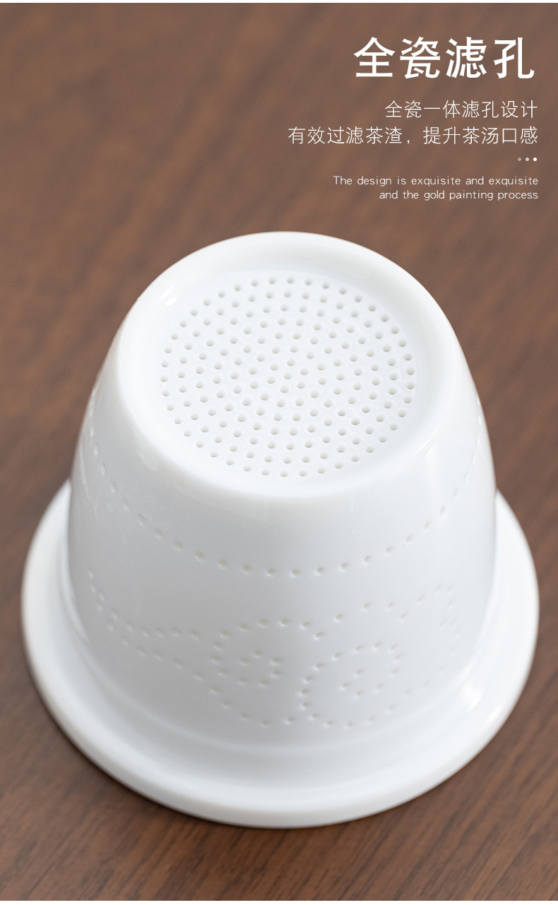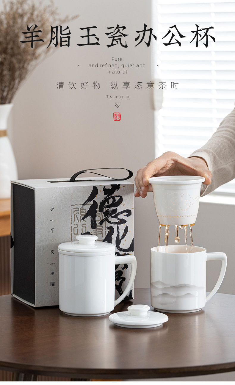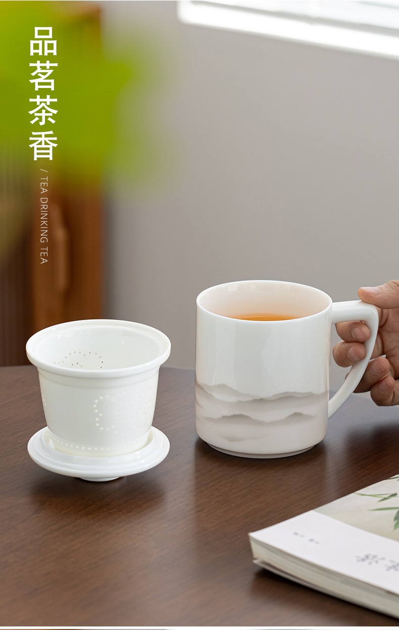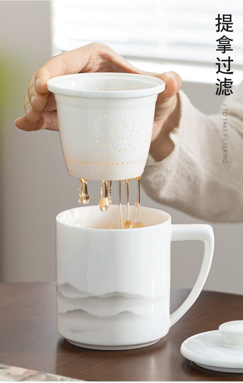 德化陶瓷羊脂玉茶杯个人专用办公杯茶水分离马克杯带过滤logo制定