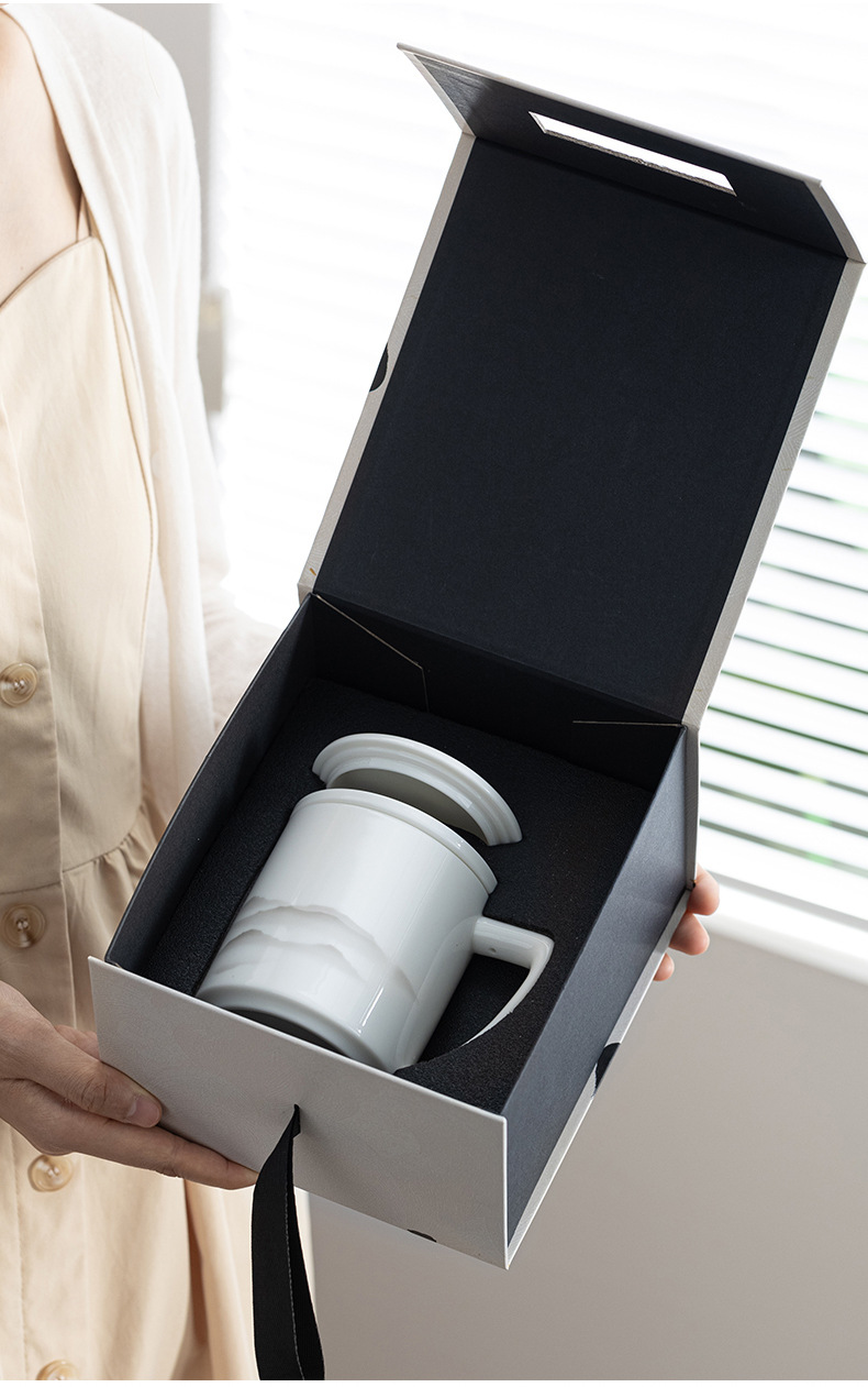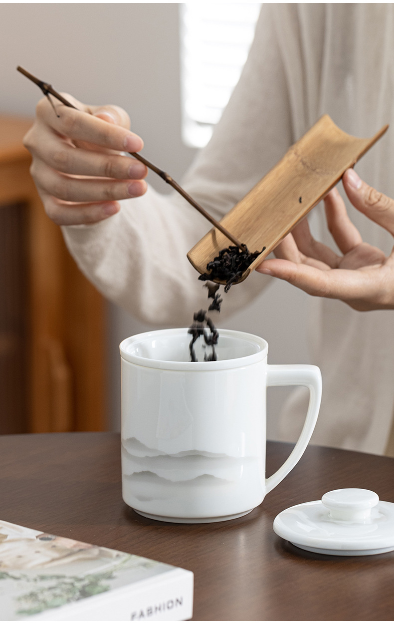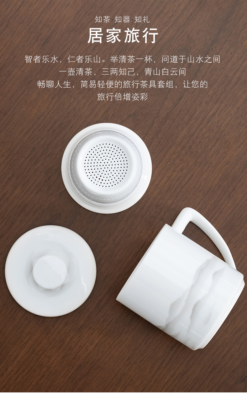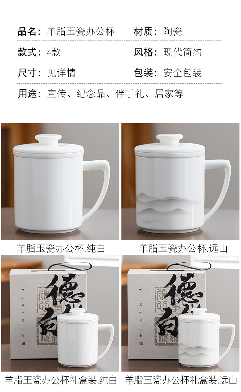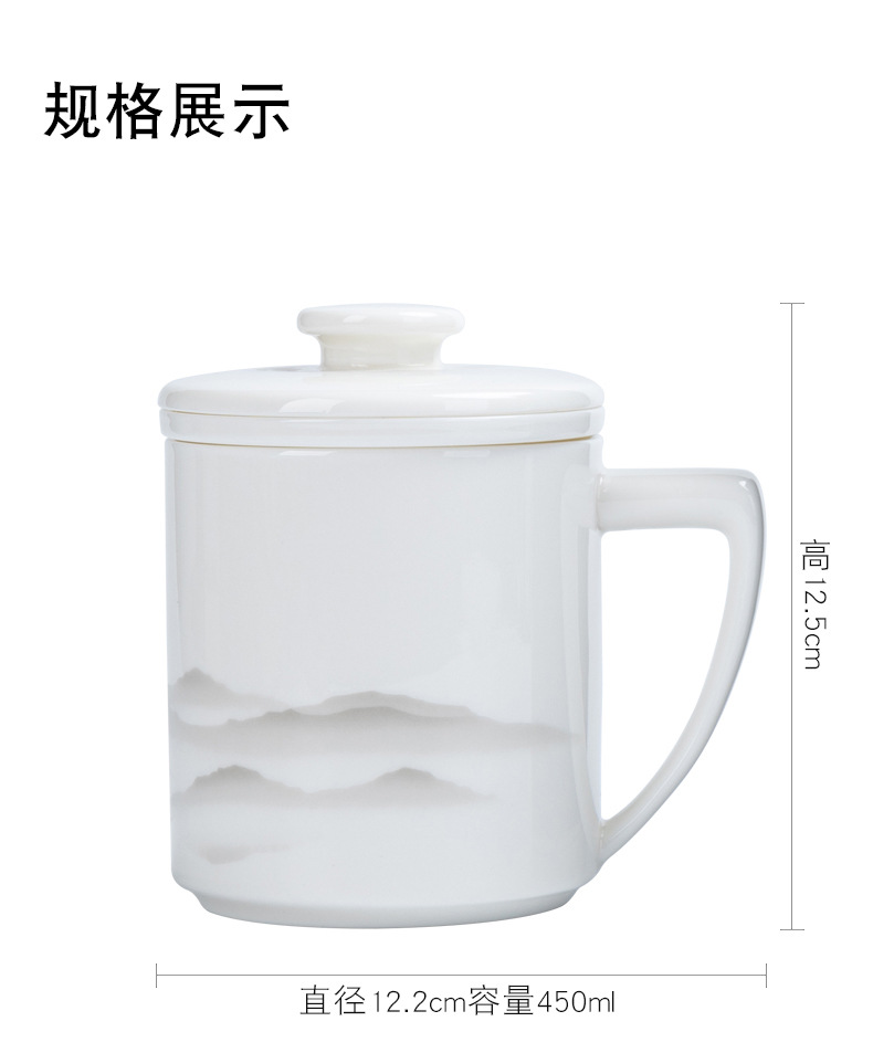德化陶瓷羊脂玉茶杯个人专用办公杯茶水分离马克杯带过滤logo制定