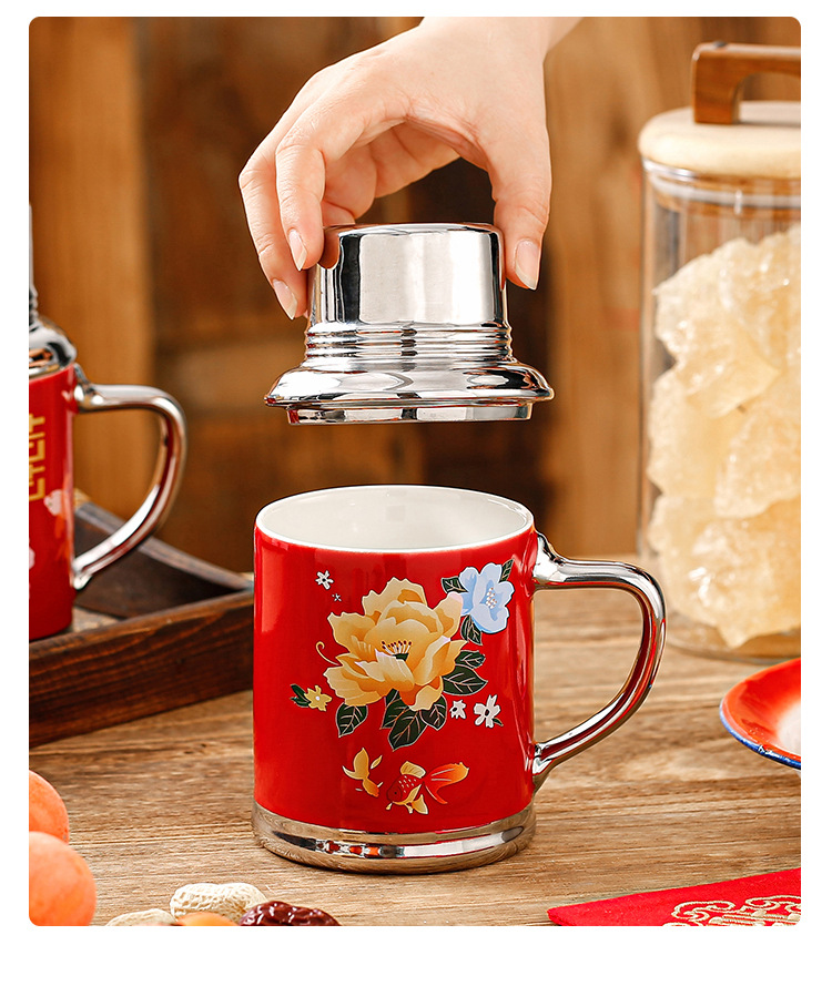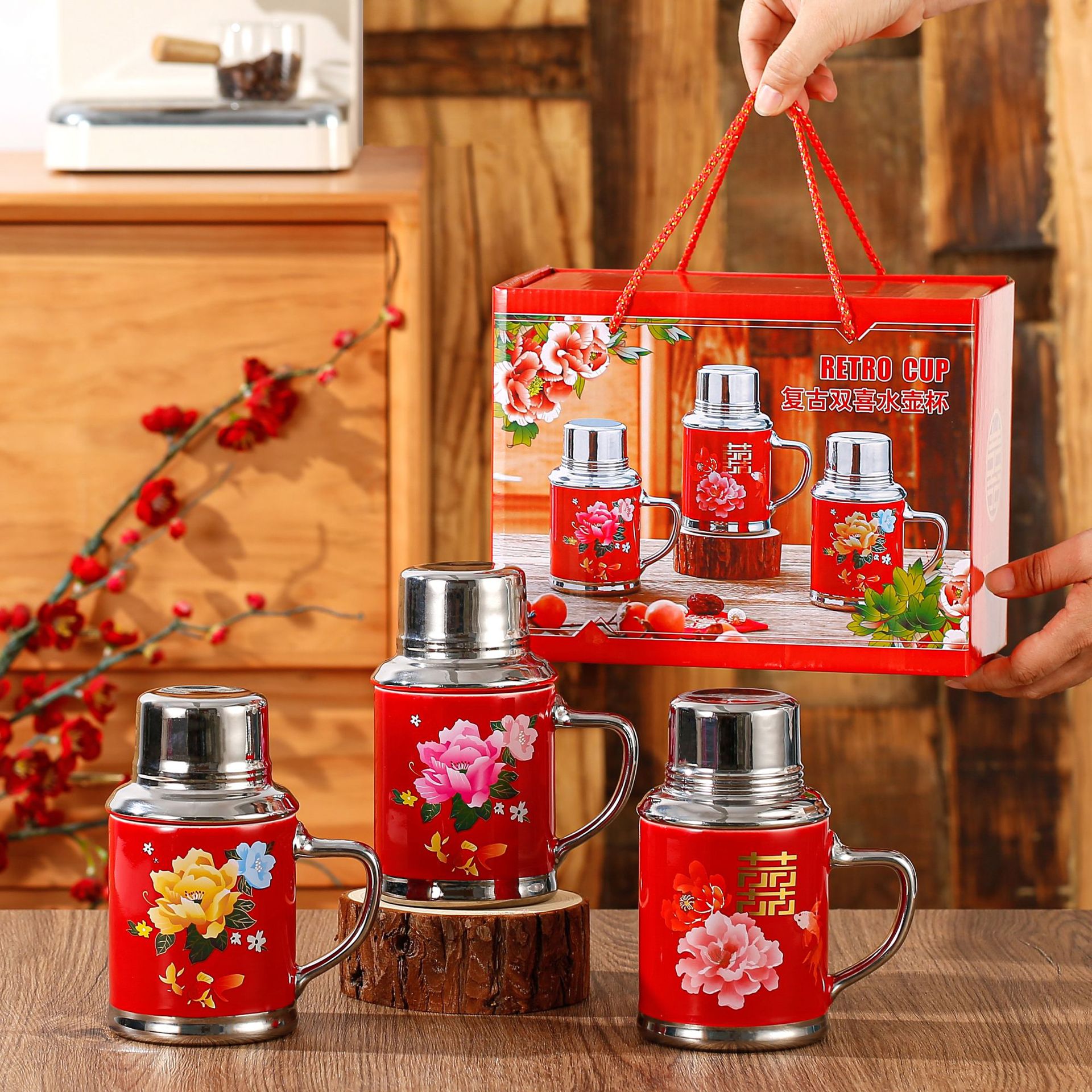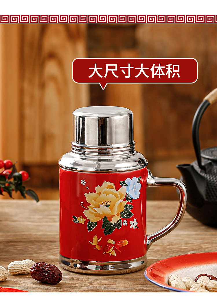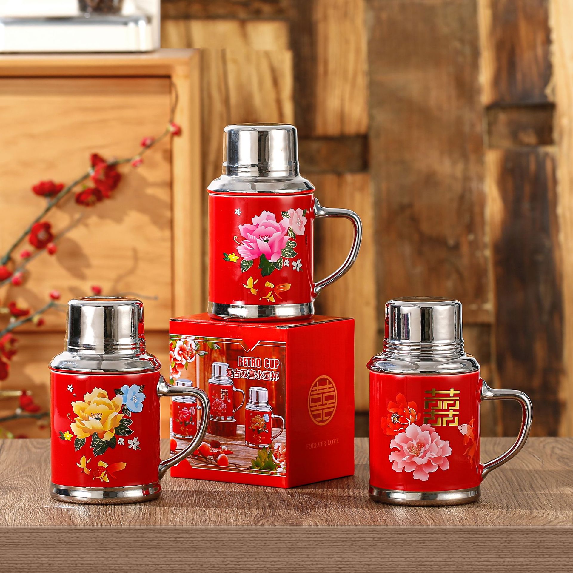 复古怀旧陶瓷杯大容量搪瓷水杯喜庆礼品高颜值创意马克杯老式茶缸