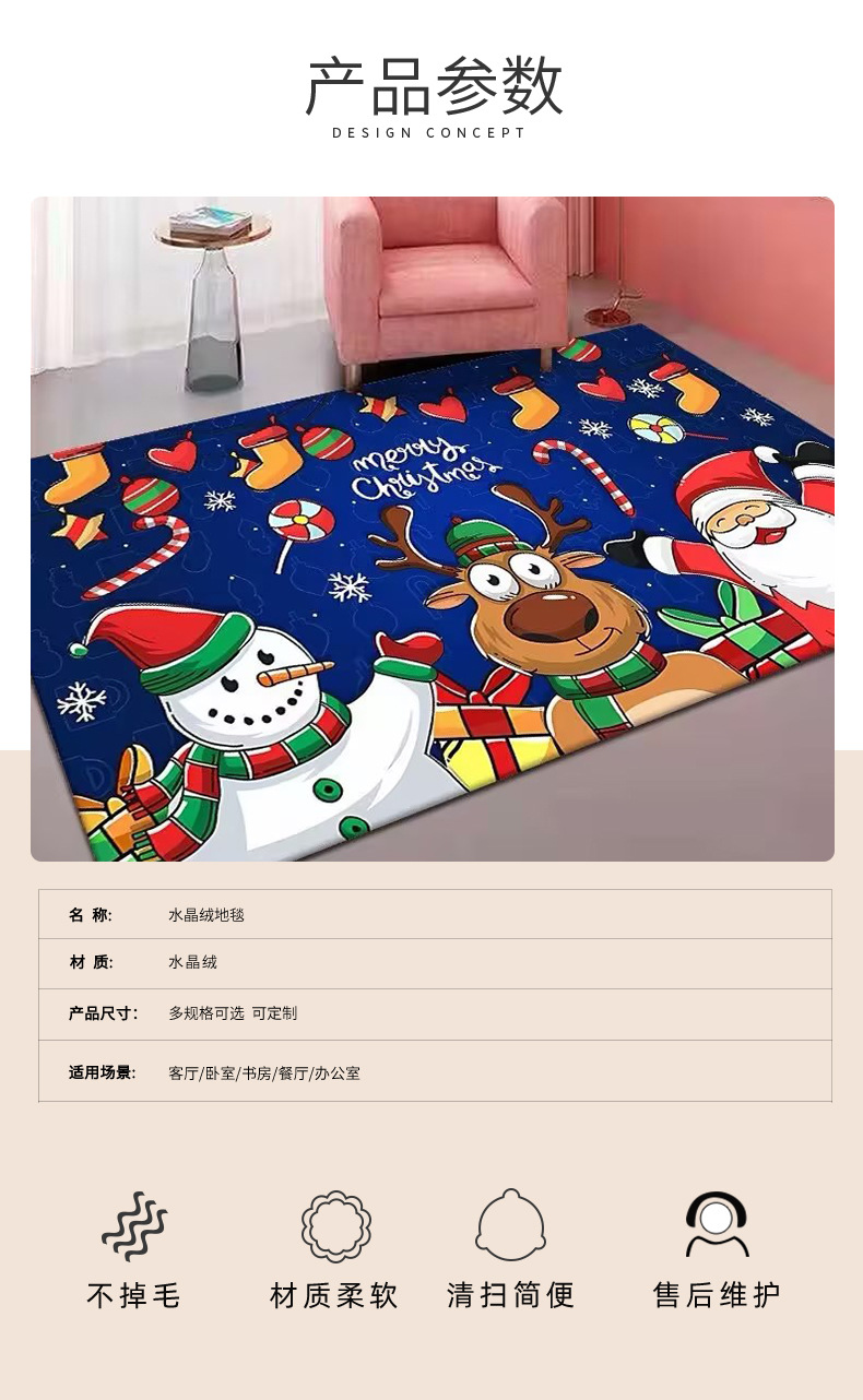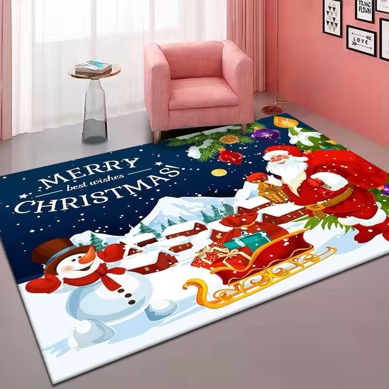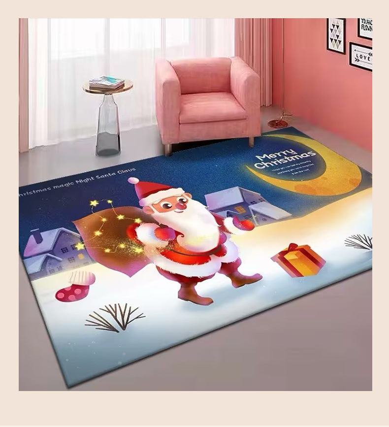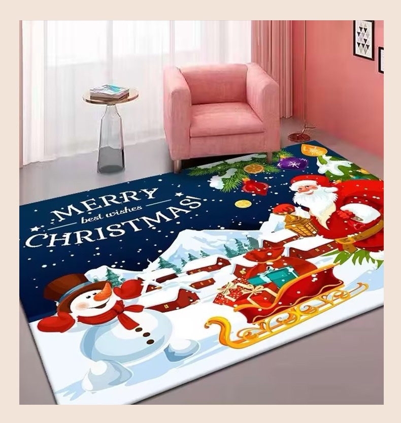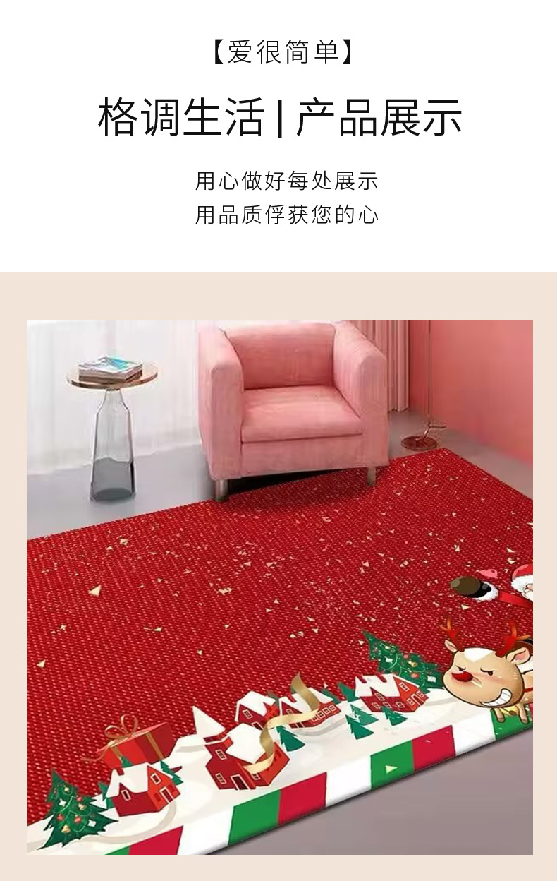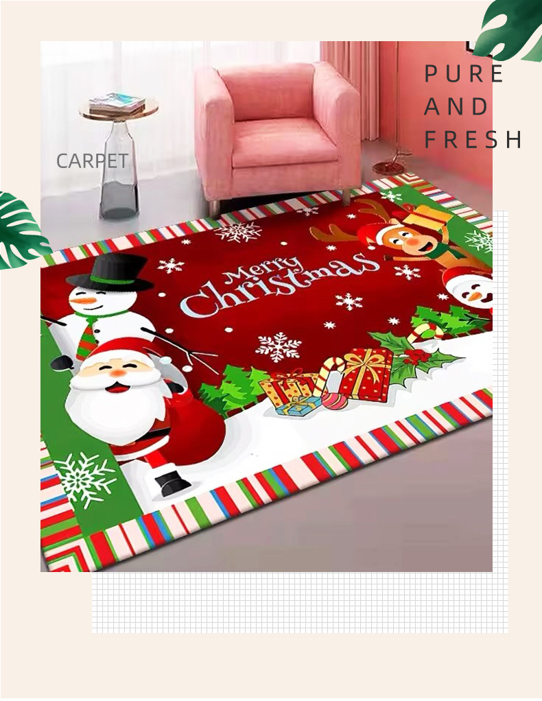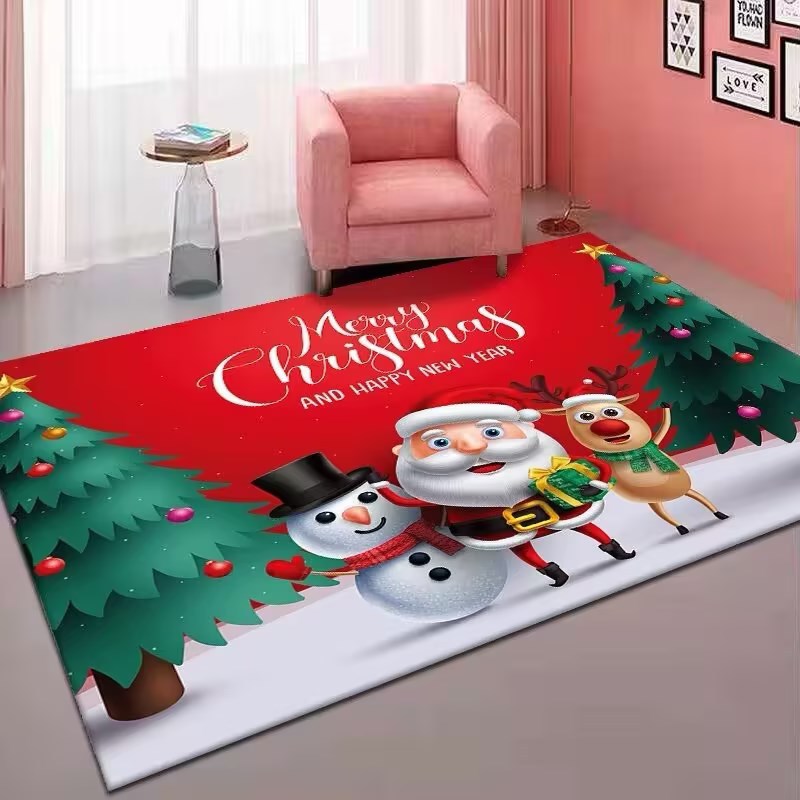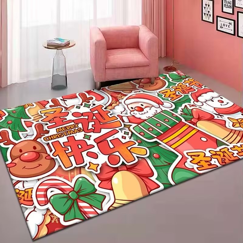 跨境热供圣诞节客厅地毯沙发茶几大面积防滑易打理满铺进门地垫