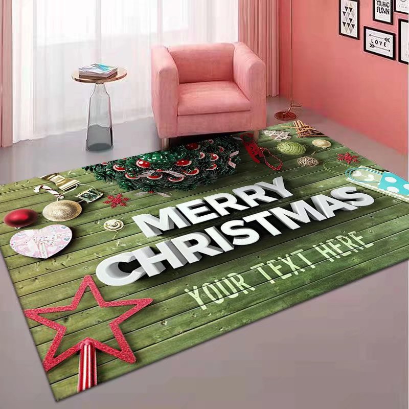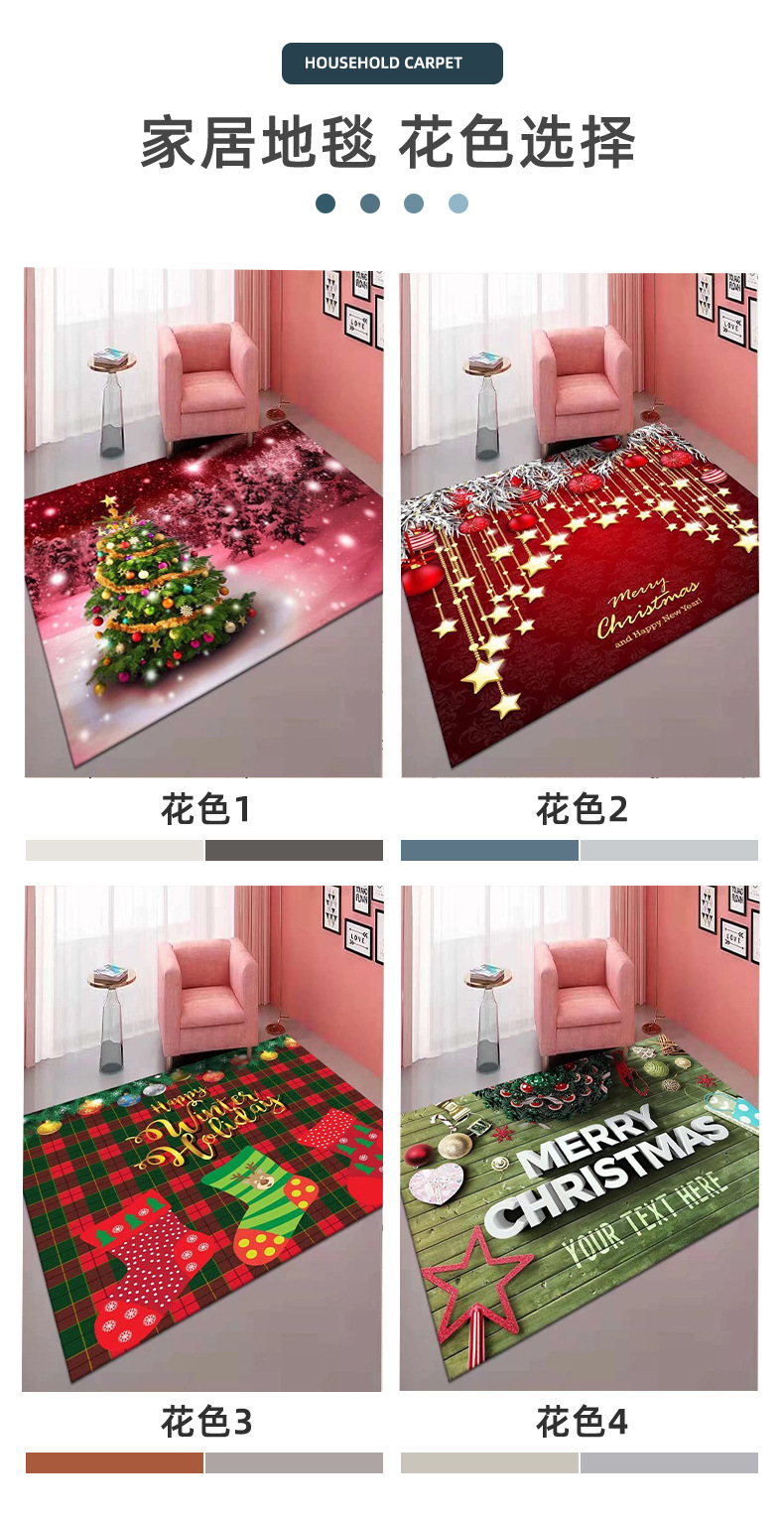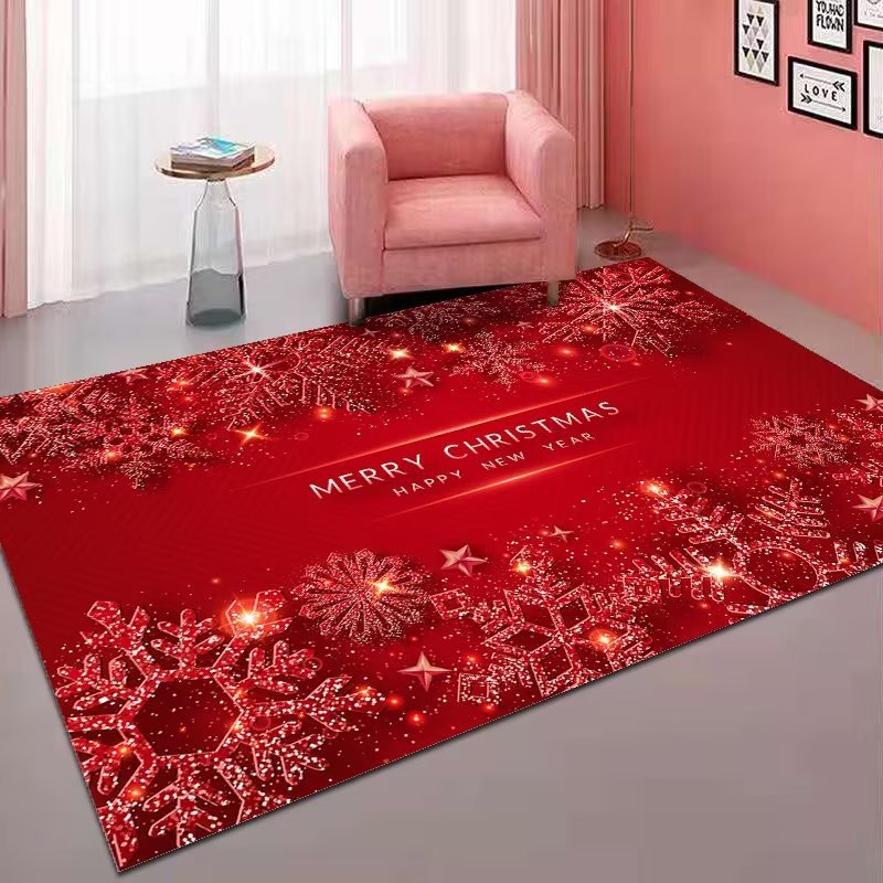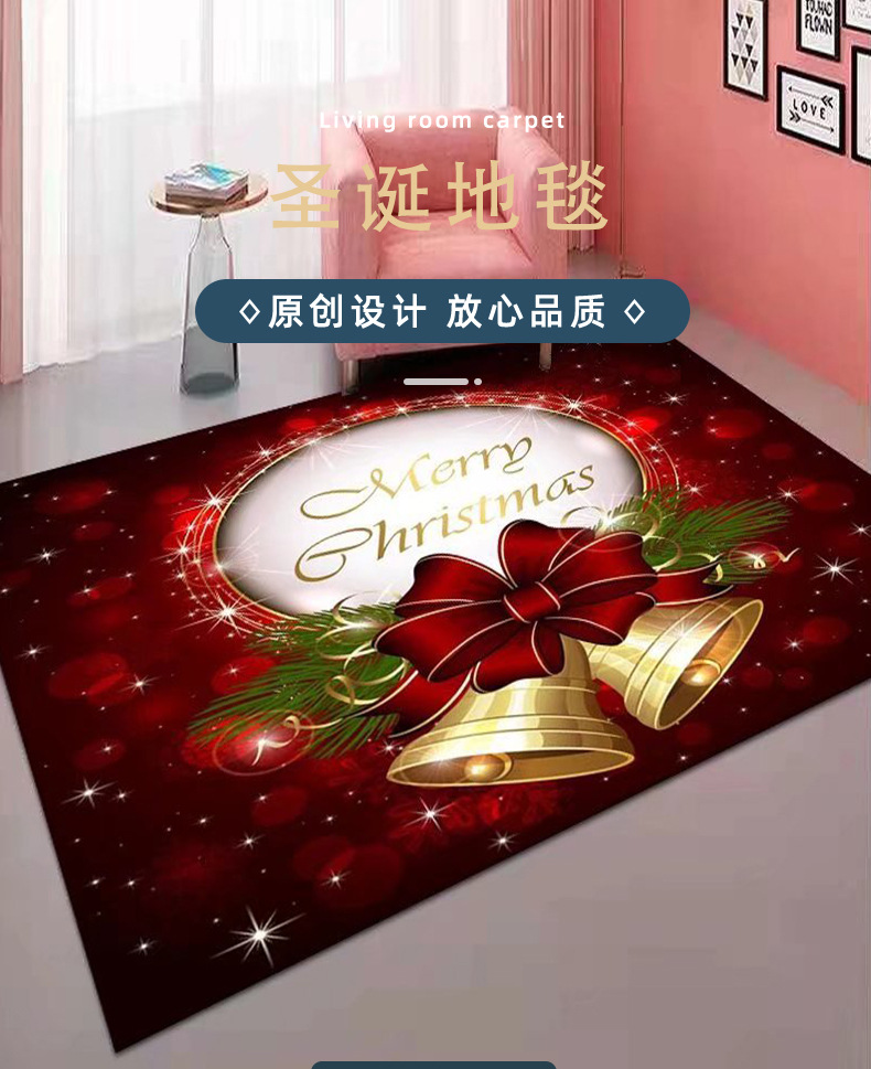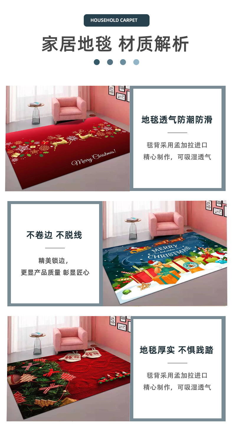 跨境水晶绒圣诞地垫防滑进门垫圣诞地垫门外红色家用卧室客厅地毯