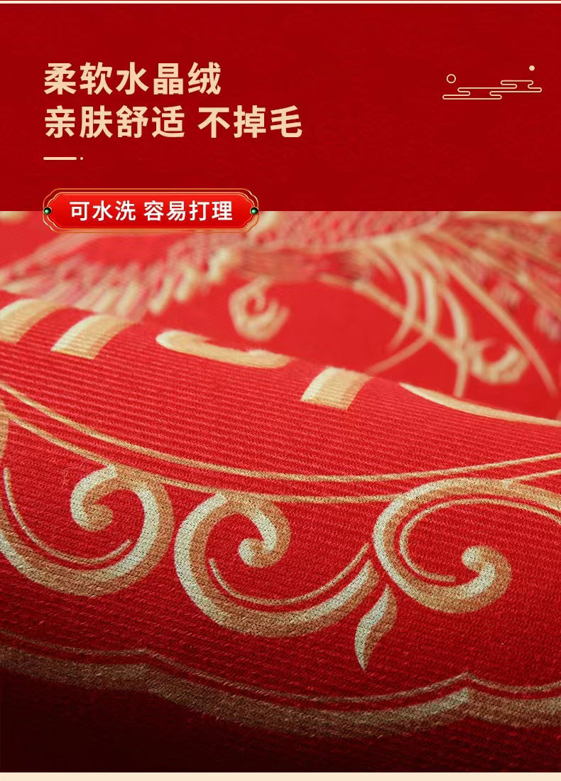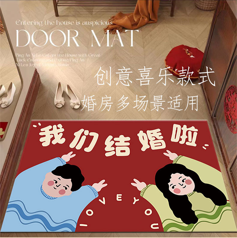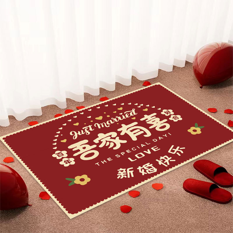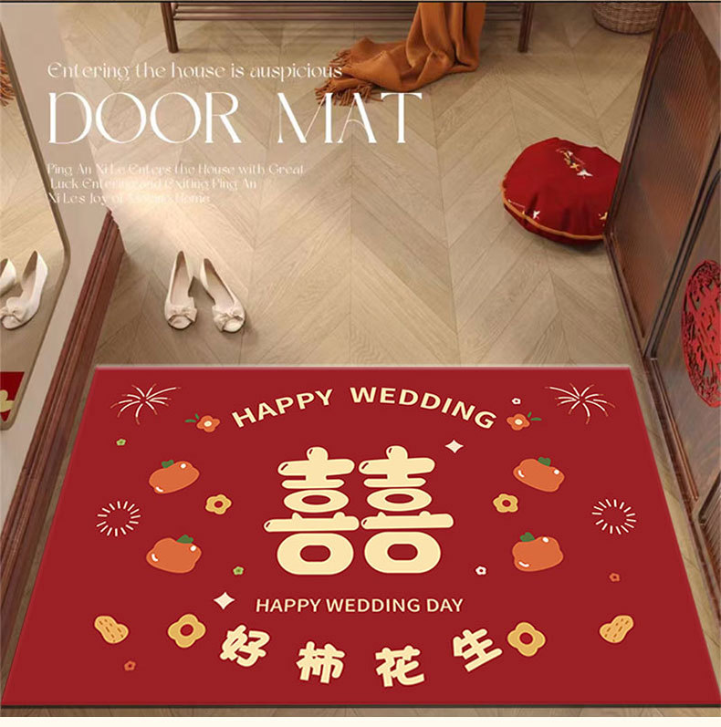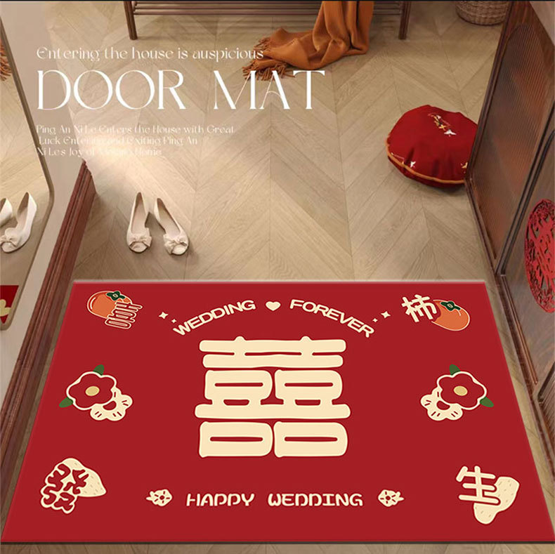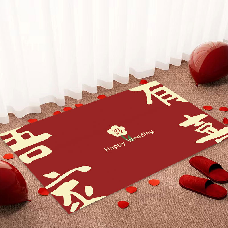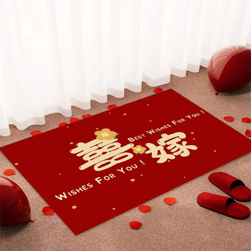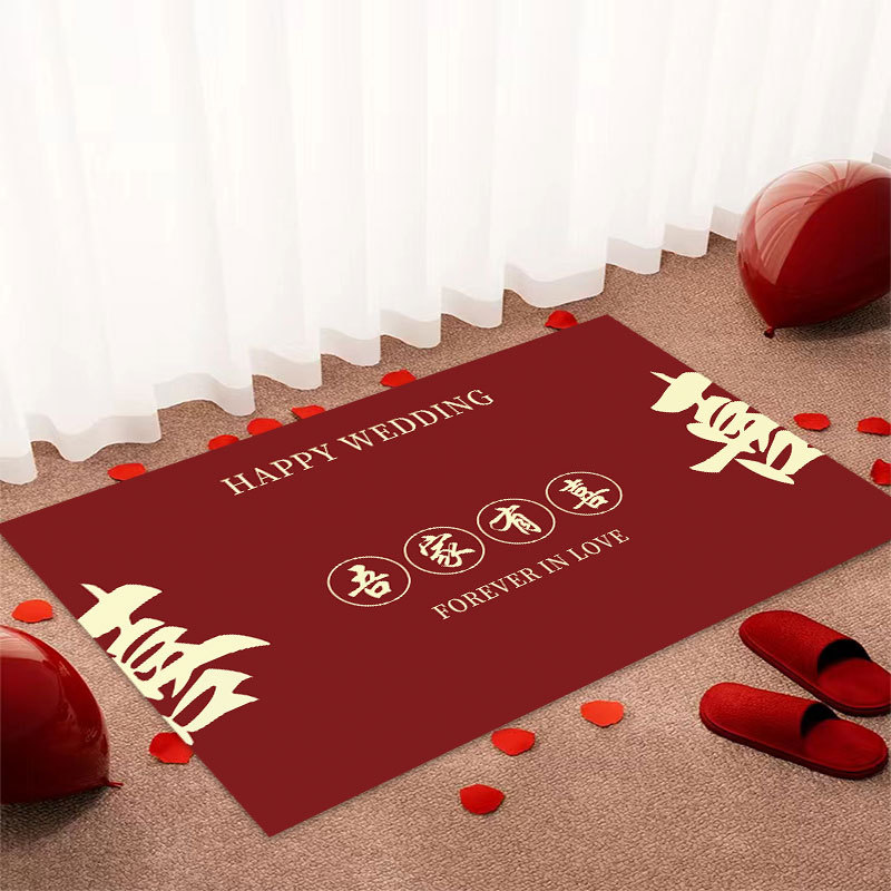 国风结婚地垫红色喜庆结婚地毯家用喜字入户门地垫婚房床边毯脚垫