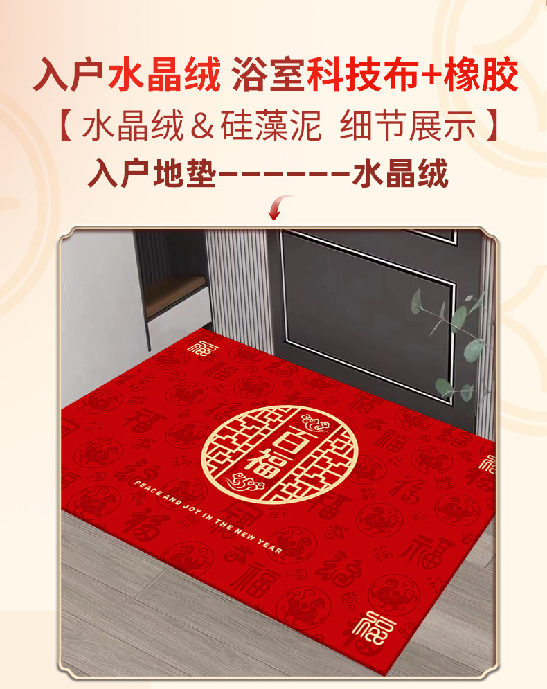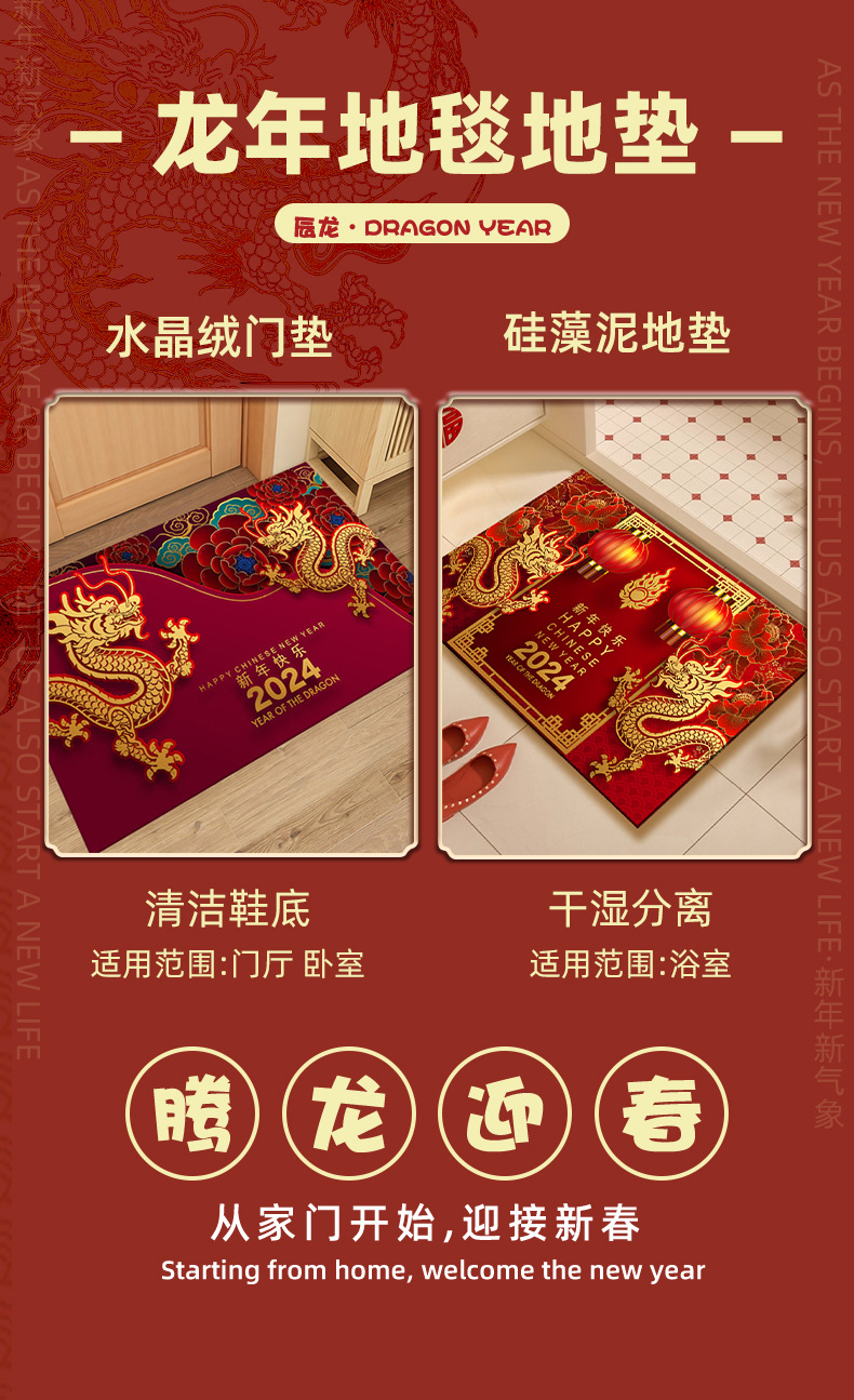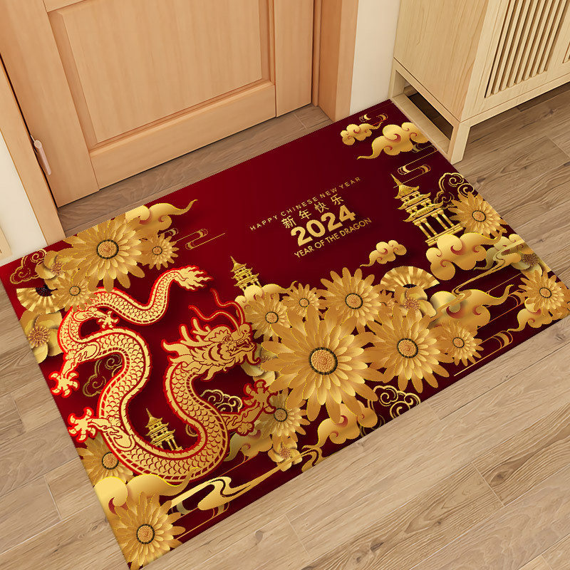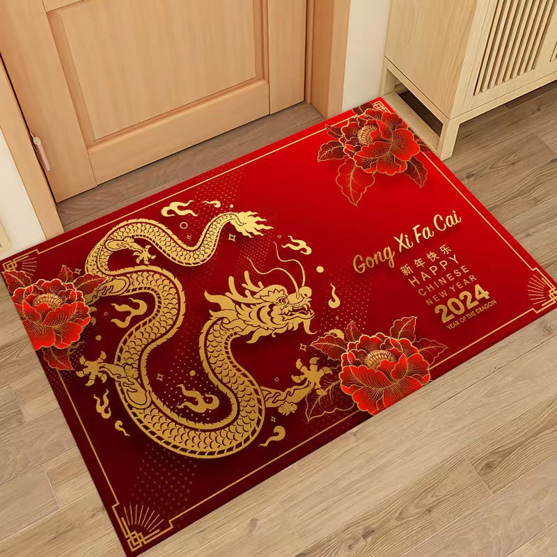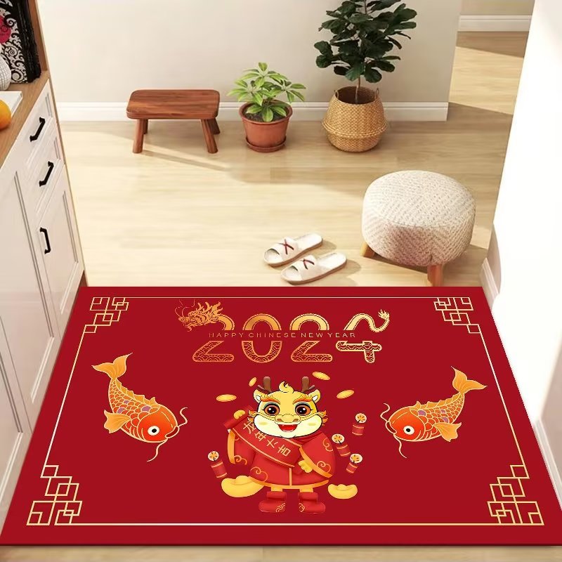 新年入户地垫入户门脚垫进门防滑垫红色地毯2024龙年出入平安门垫