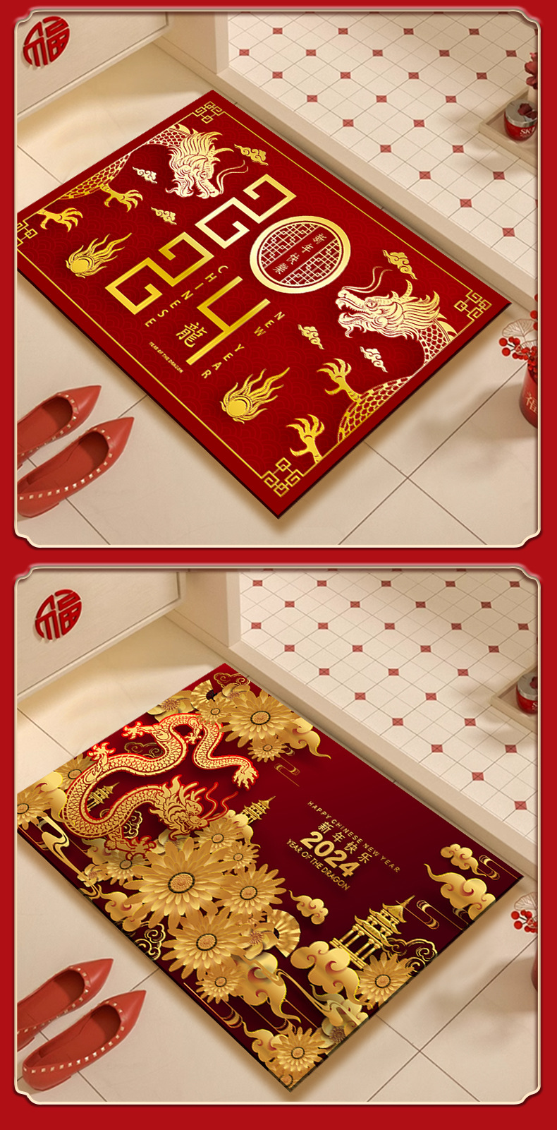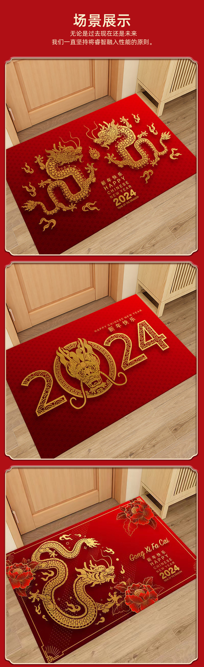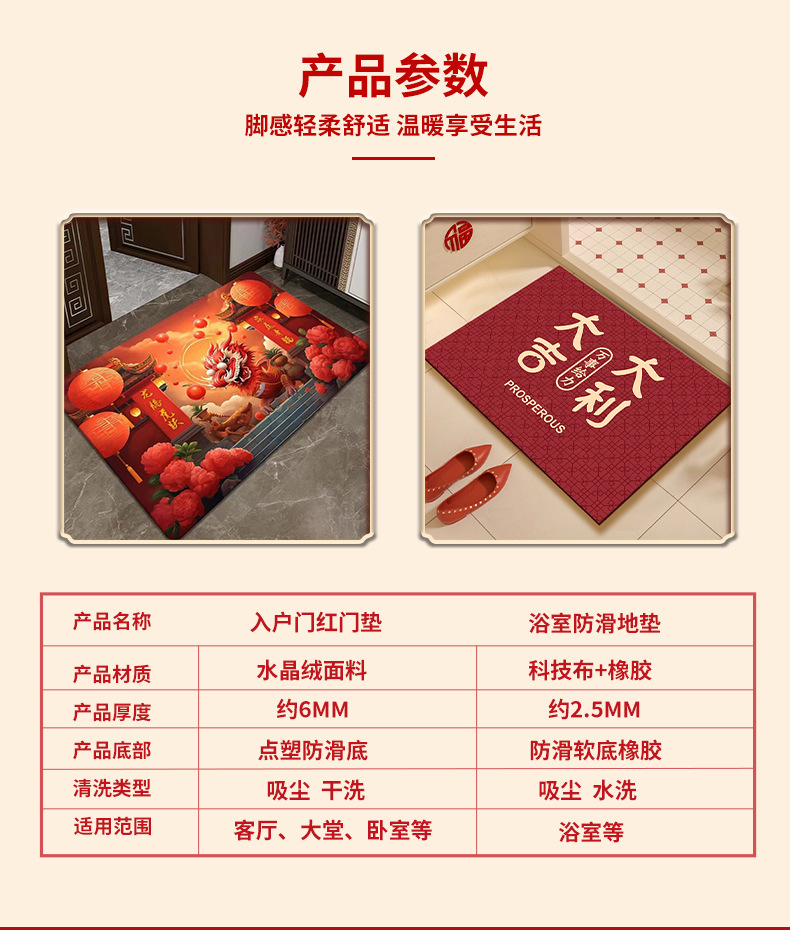 新年入户地垫入户门脚垫进门防滑垫红色地毯2024龙年出入平安门垫