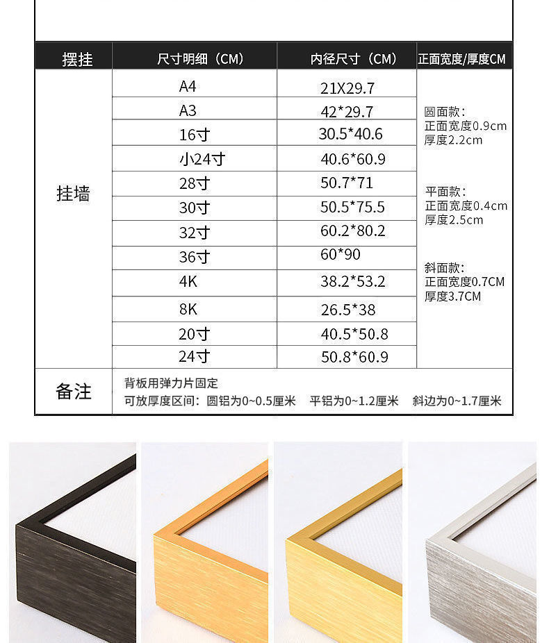 铝合金相框现代简约细边窄边画框任意尺寸预约装裱海报挂墙细窄边