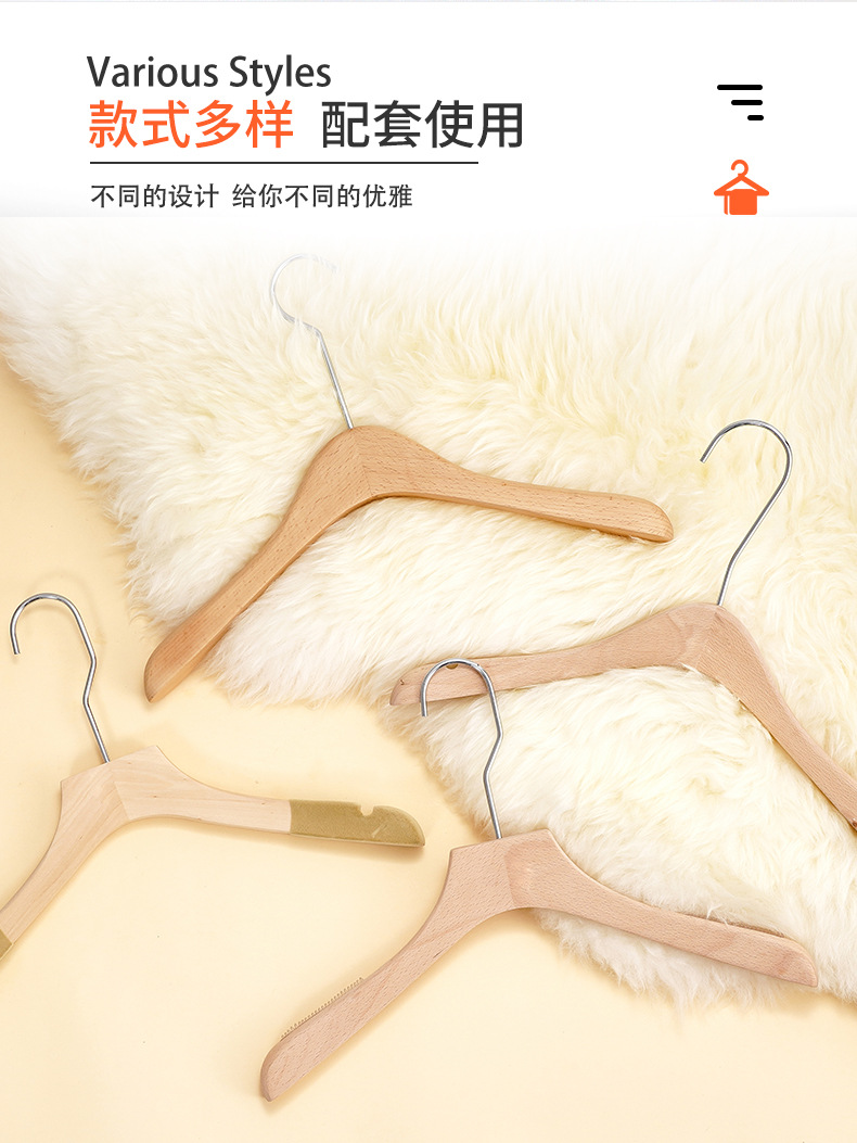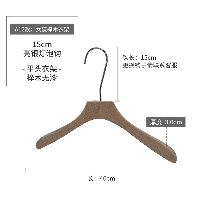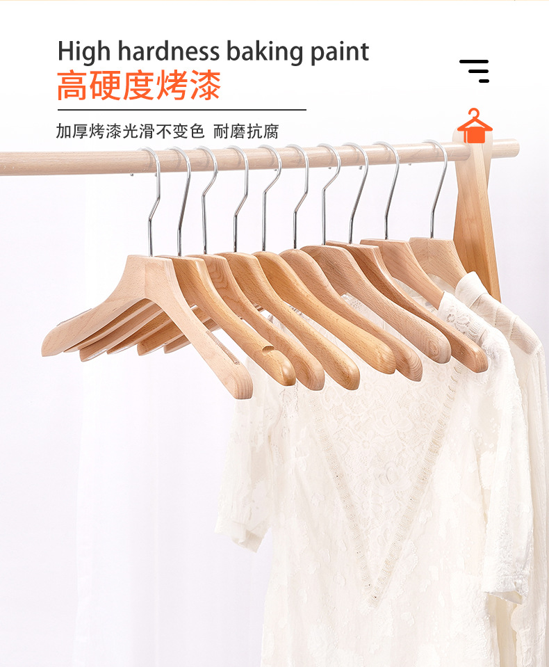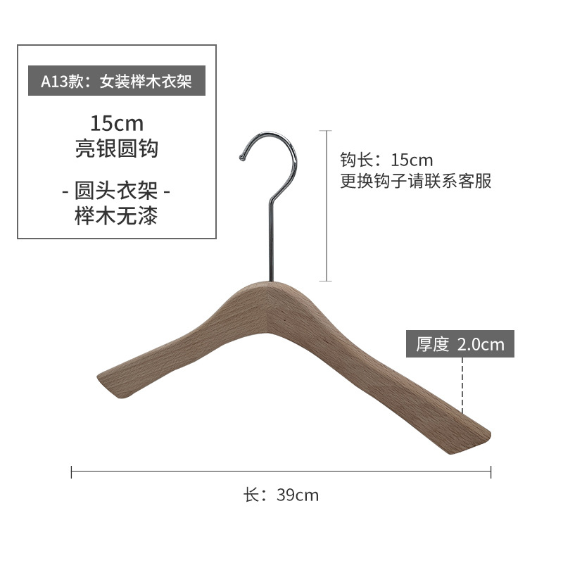 纯实木榉木女装衣架 原木色卧室挂衣架子家用晾衣架衣帽衣服架
