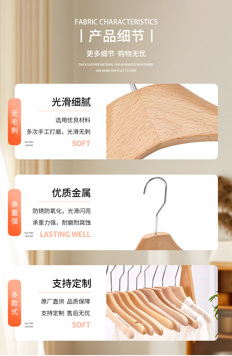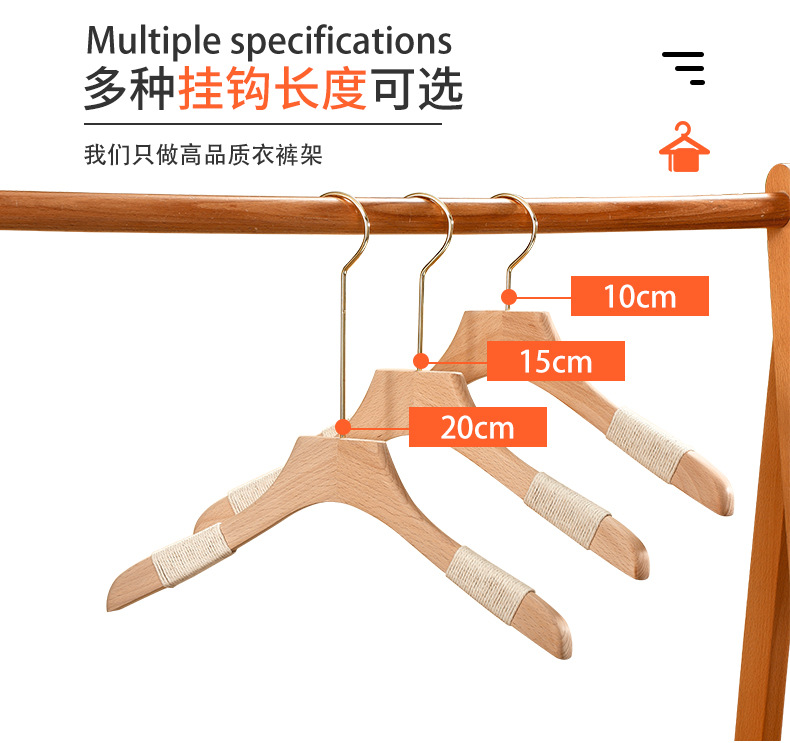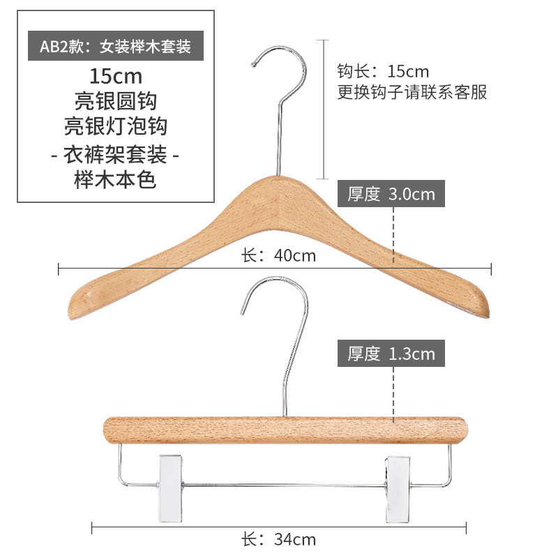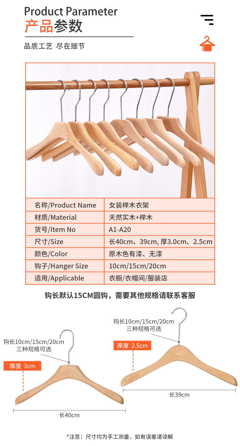 纯实木榉木女装衣架 原木色卧室挂衣架子家用晾衣架衣帽衣服架