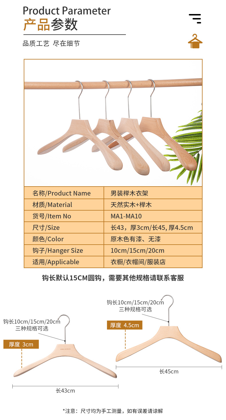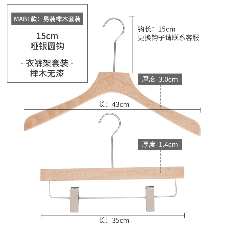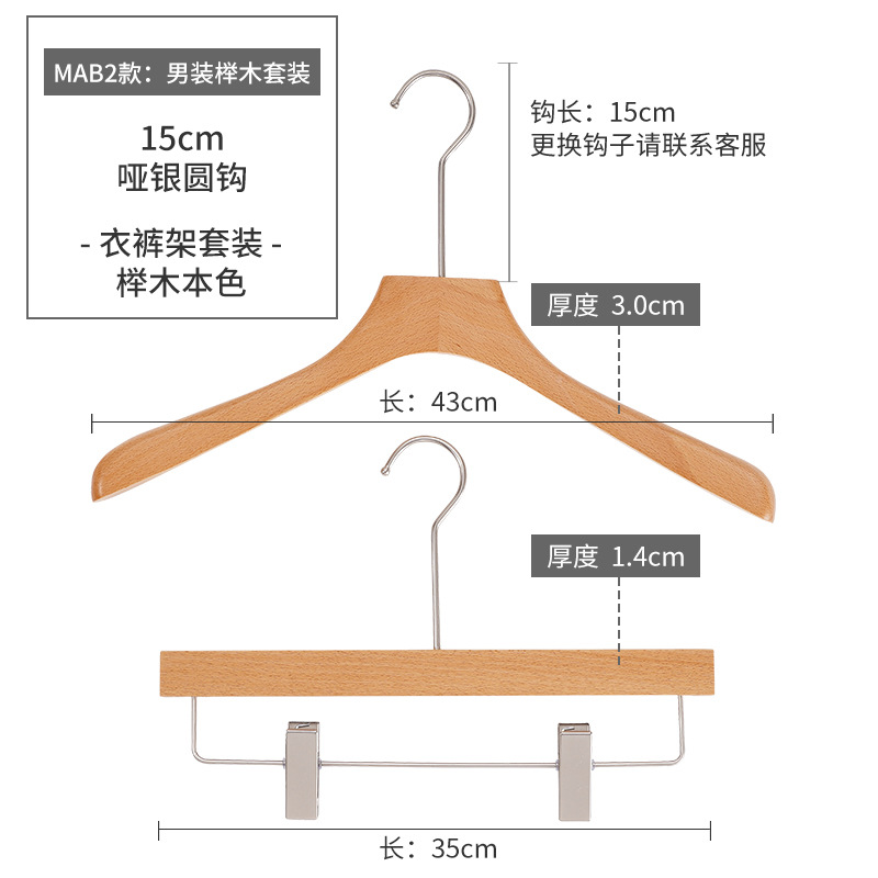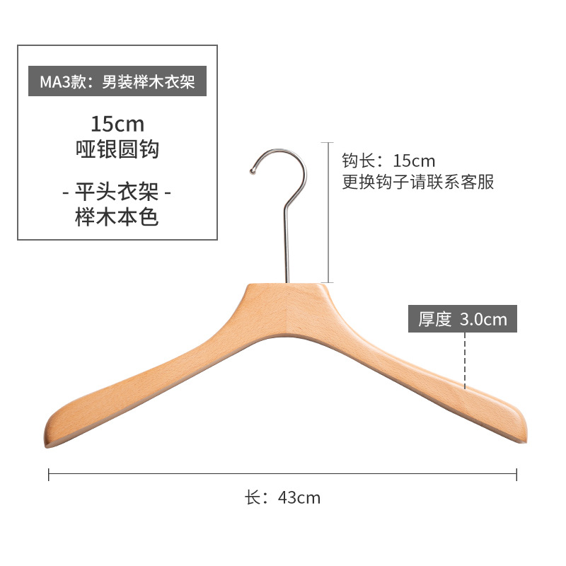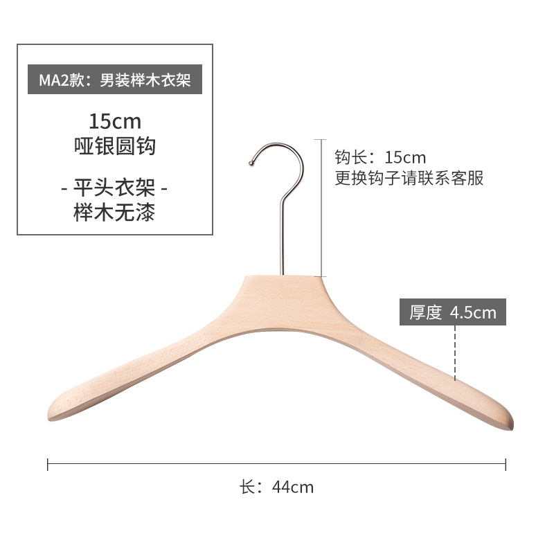 木制平头男装榉木衣架 西服西装宽肩防滑无痕衣挂榉木高档衣架