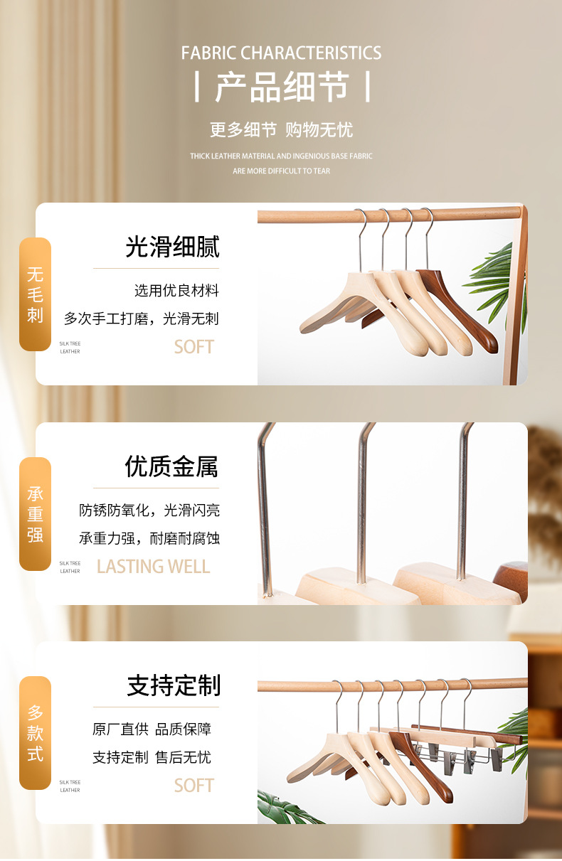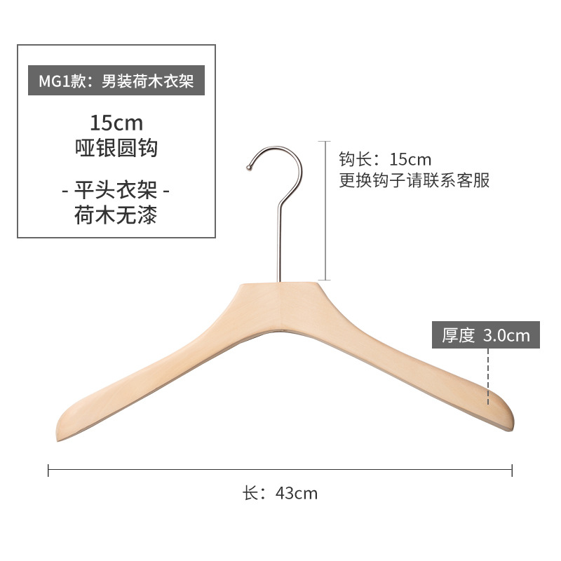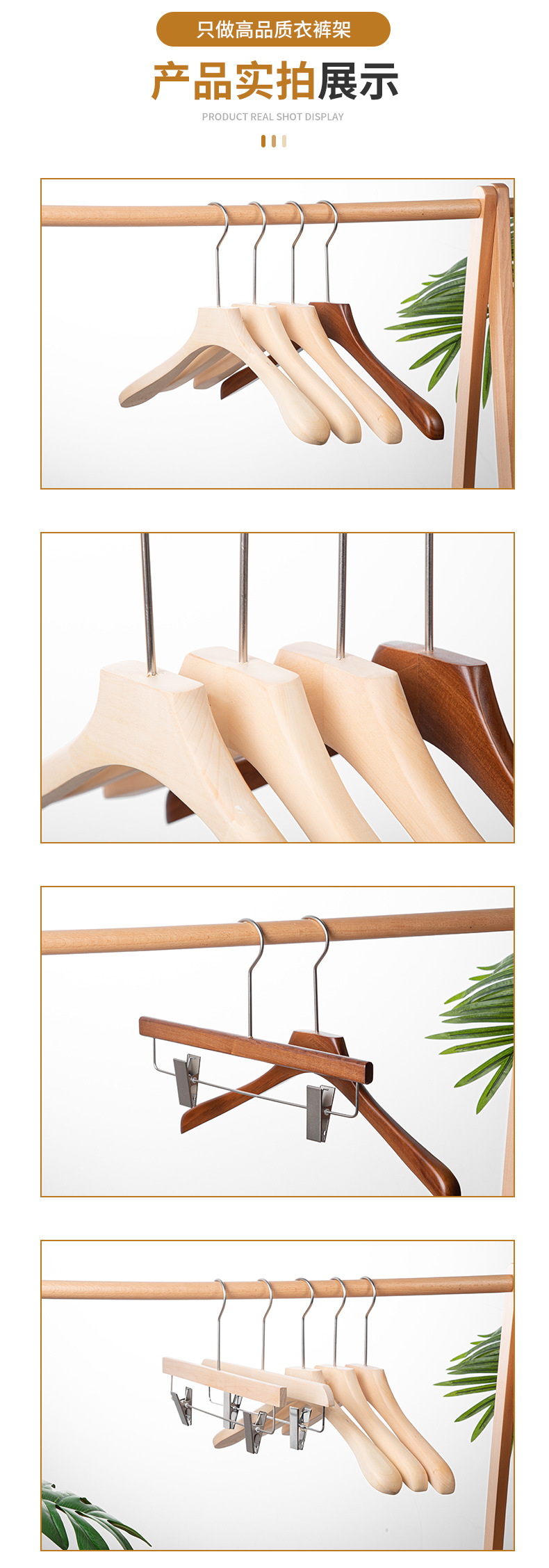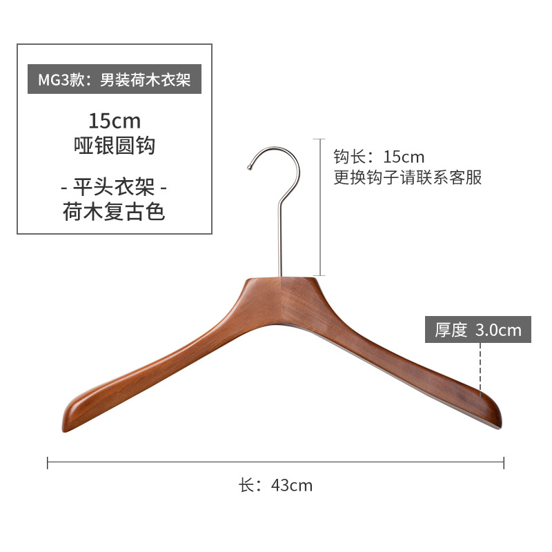 男装荷木衣架 原木风简约无痕卧室衣帽间平头无漆复古色衣挂