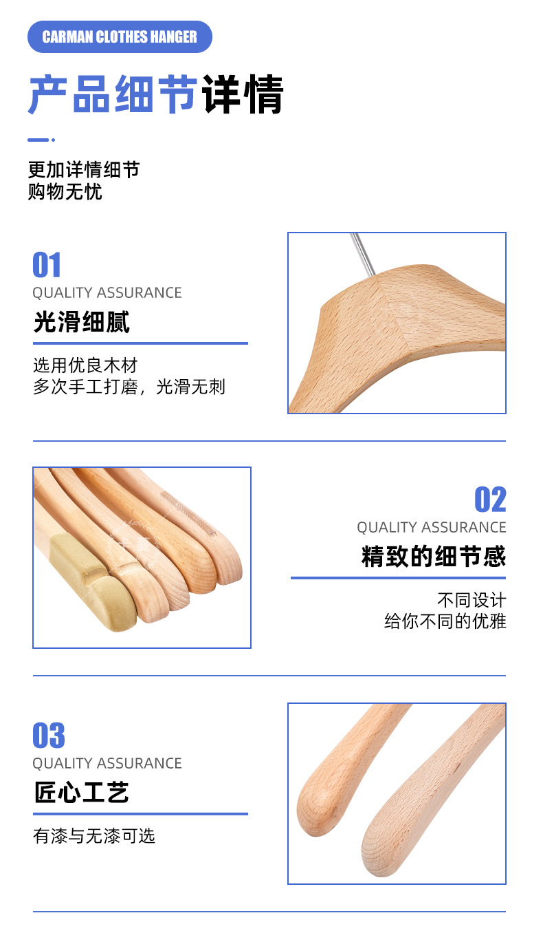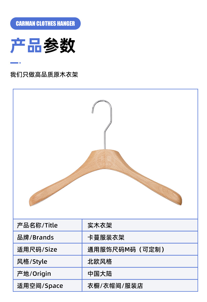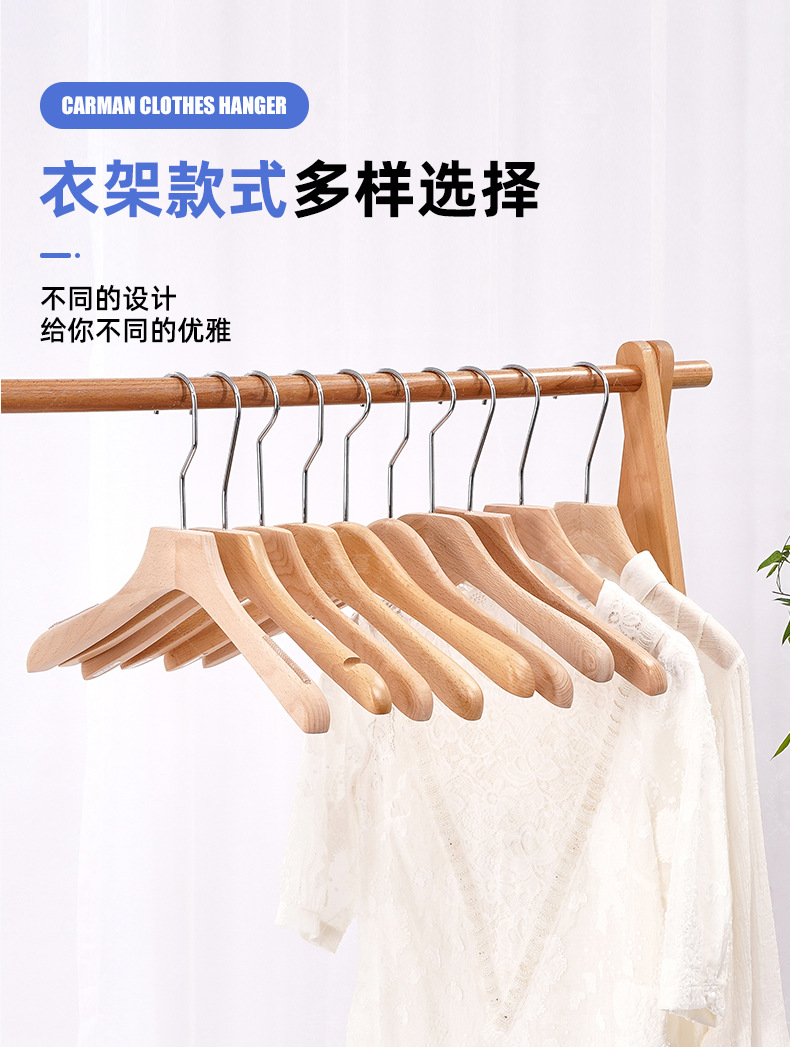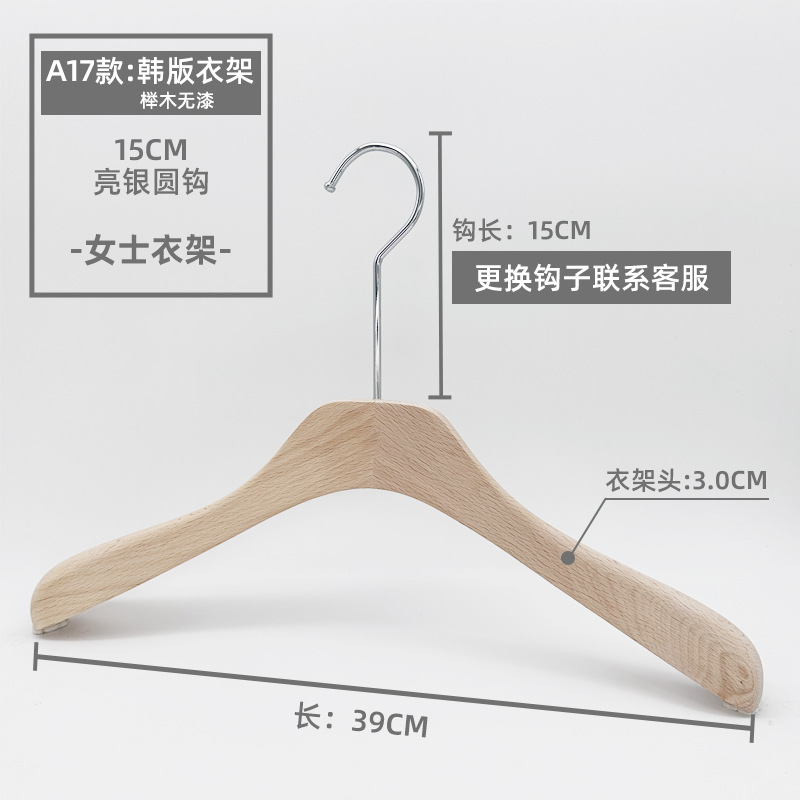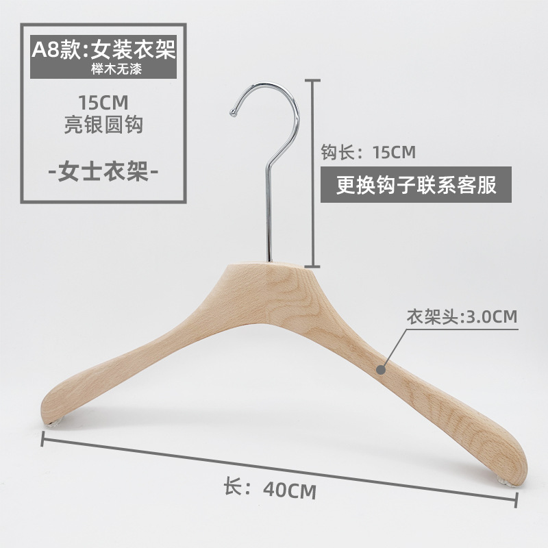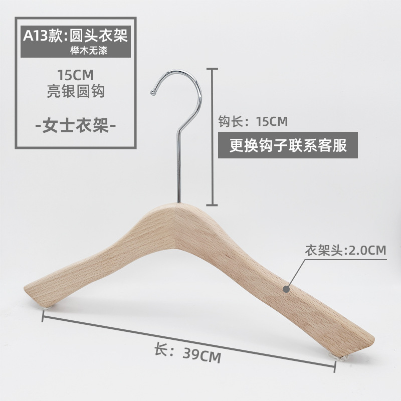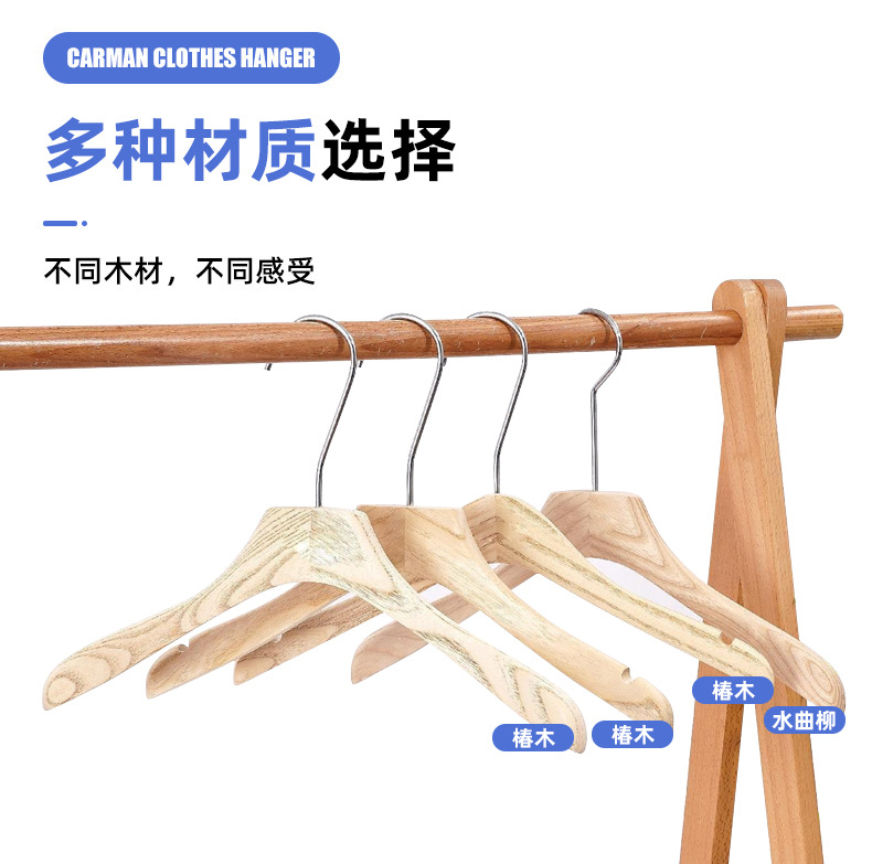 服装店实木衣架男女装无漆榉木衣撑裤夹防滑木质原木无痕衣挂批发