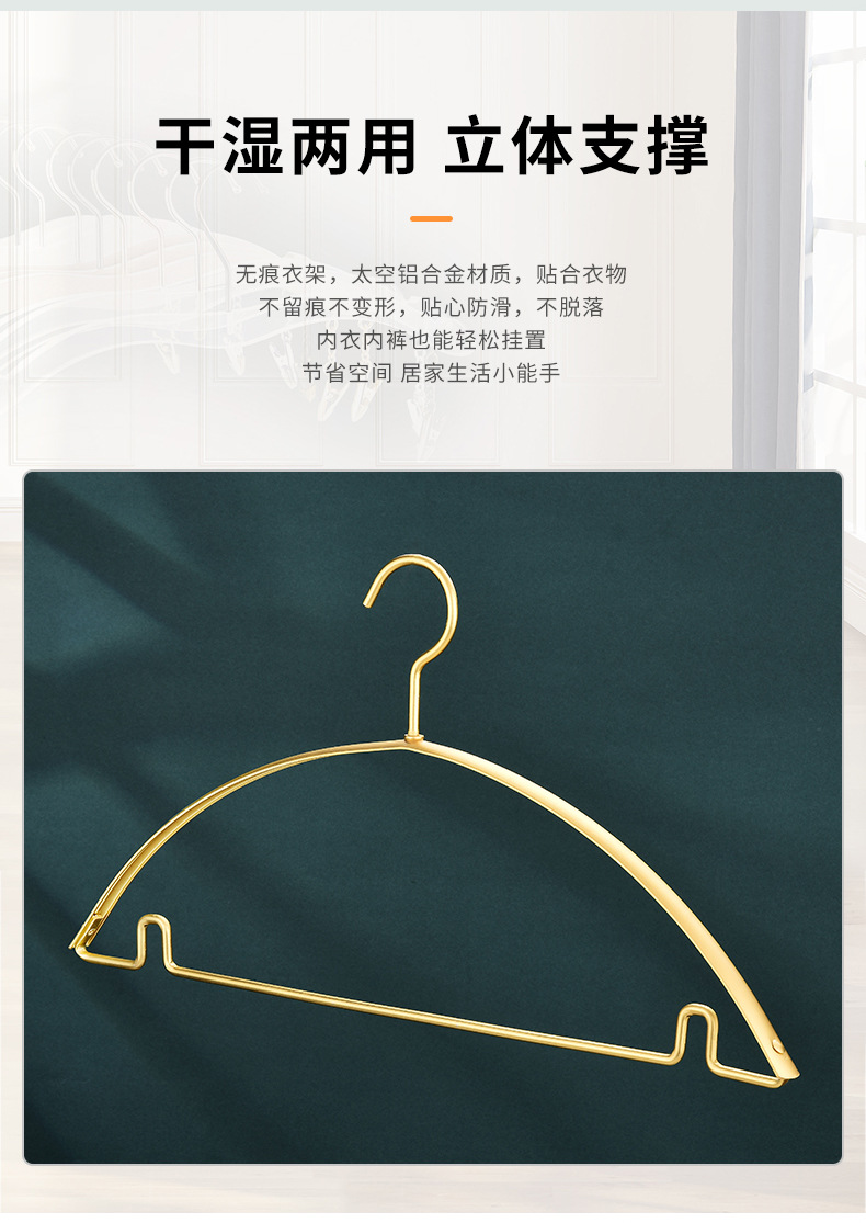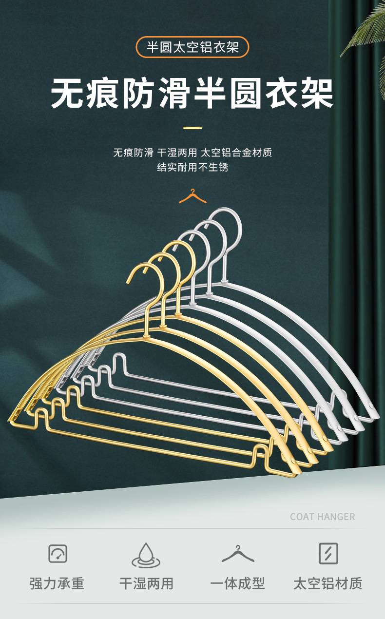 太空铝家用服装店防滑宽肩无痕衣挂轻奢晾衣撑子铝合金半圆衣架