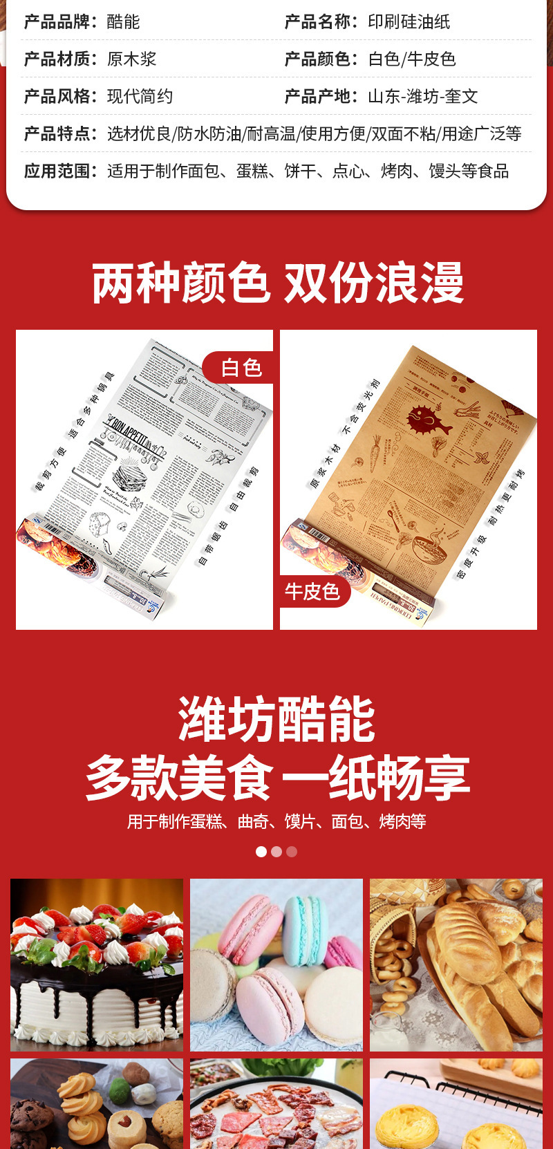 印刷硅油纸专用烘焙用纸硅油纸厨房吸油纸蛋糕油纸烘焙纸图案可选