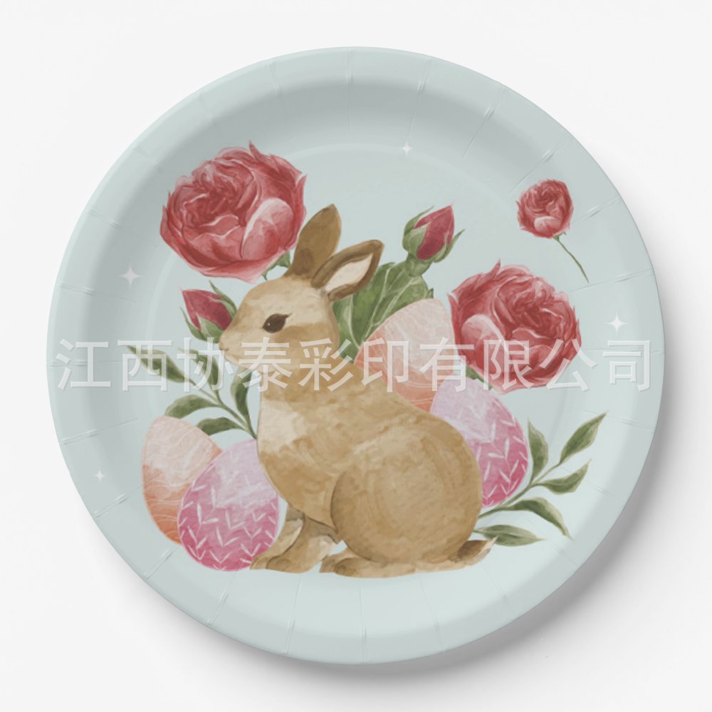 一次性主题纸餐具点心纸盘复活节套装派对餐具白卡盘野餐7寸9寸 2