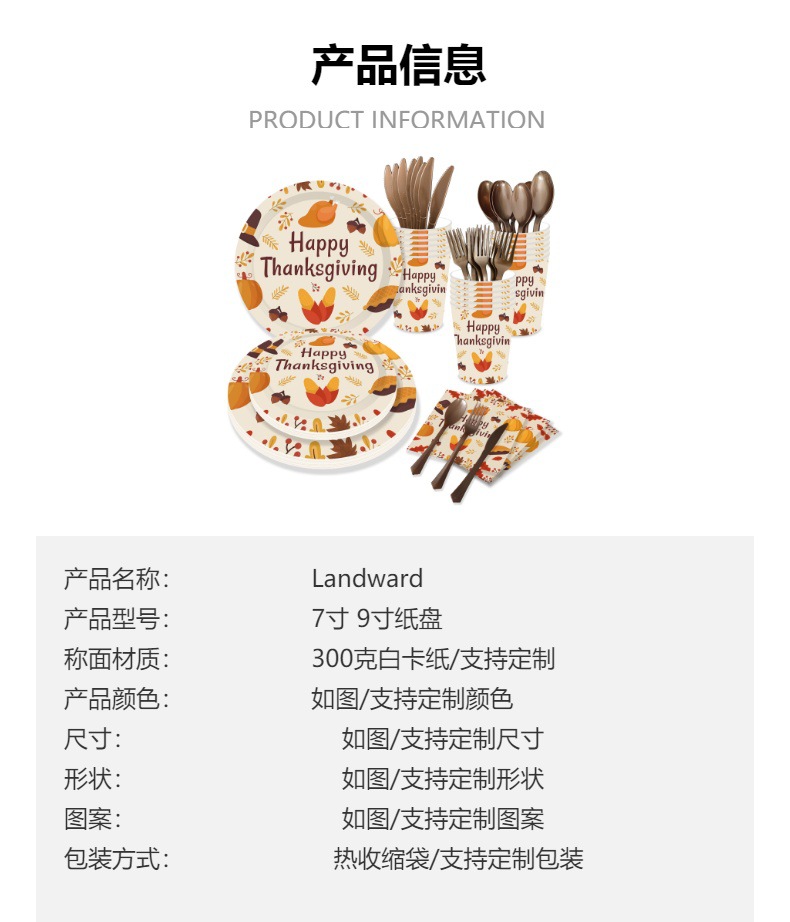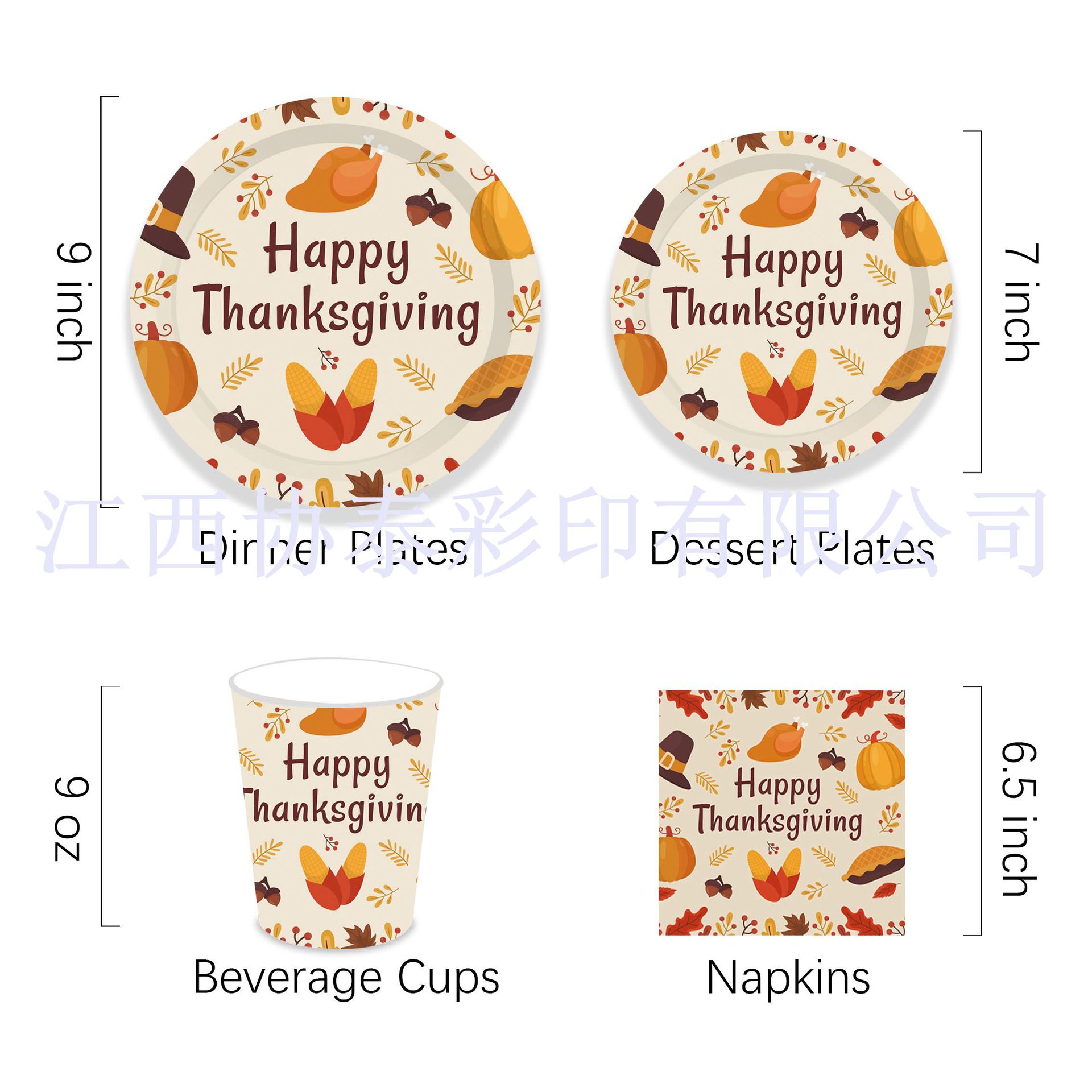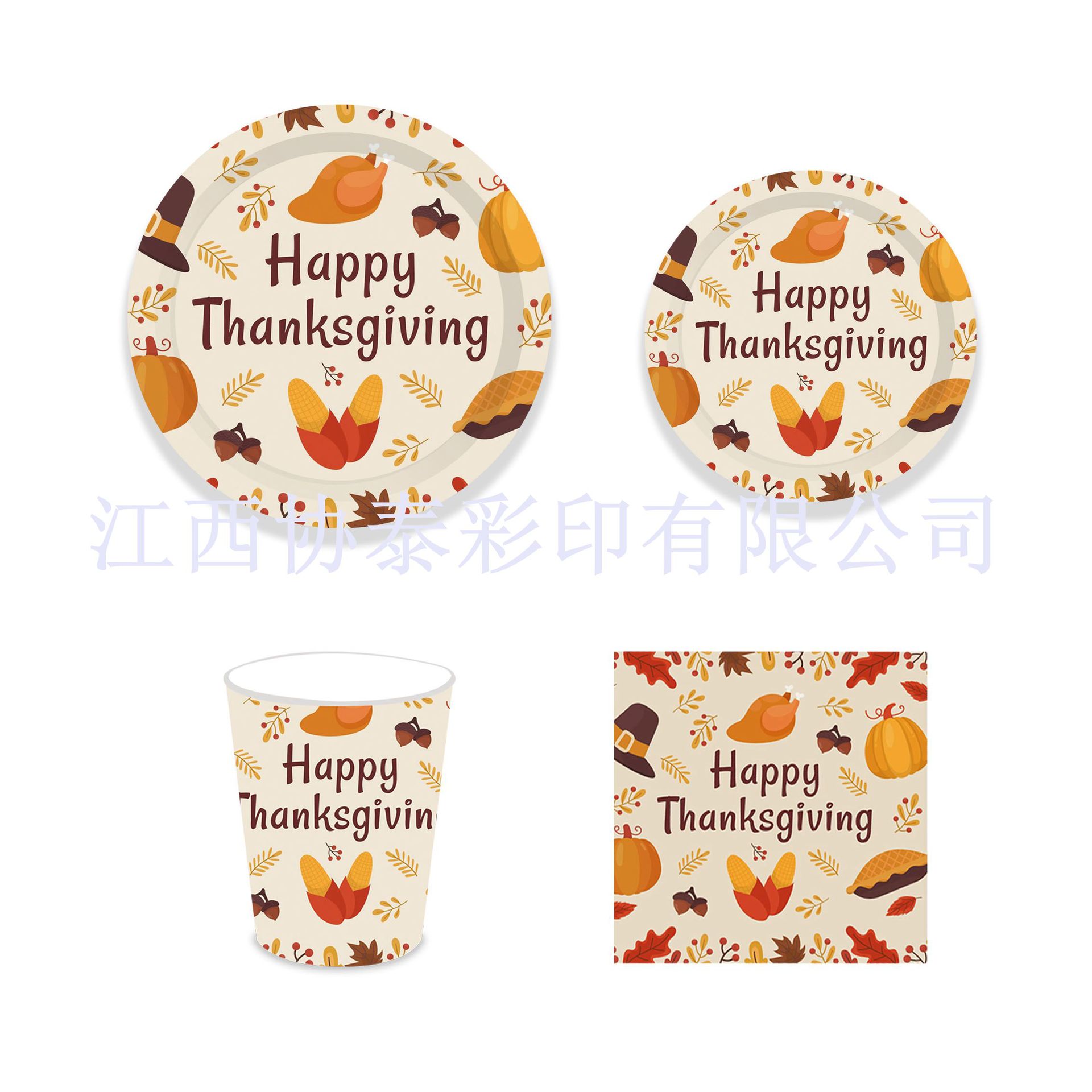 亚马逊新款感恩节派对用品套装一次性纸盘7寸9寸纸巾纸杯外销2023