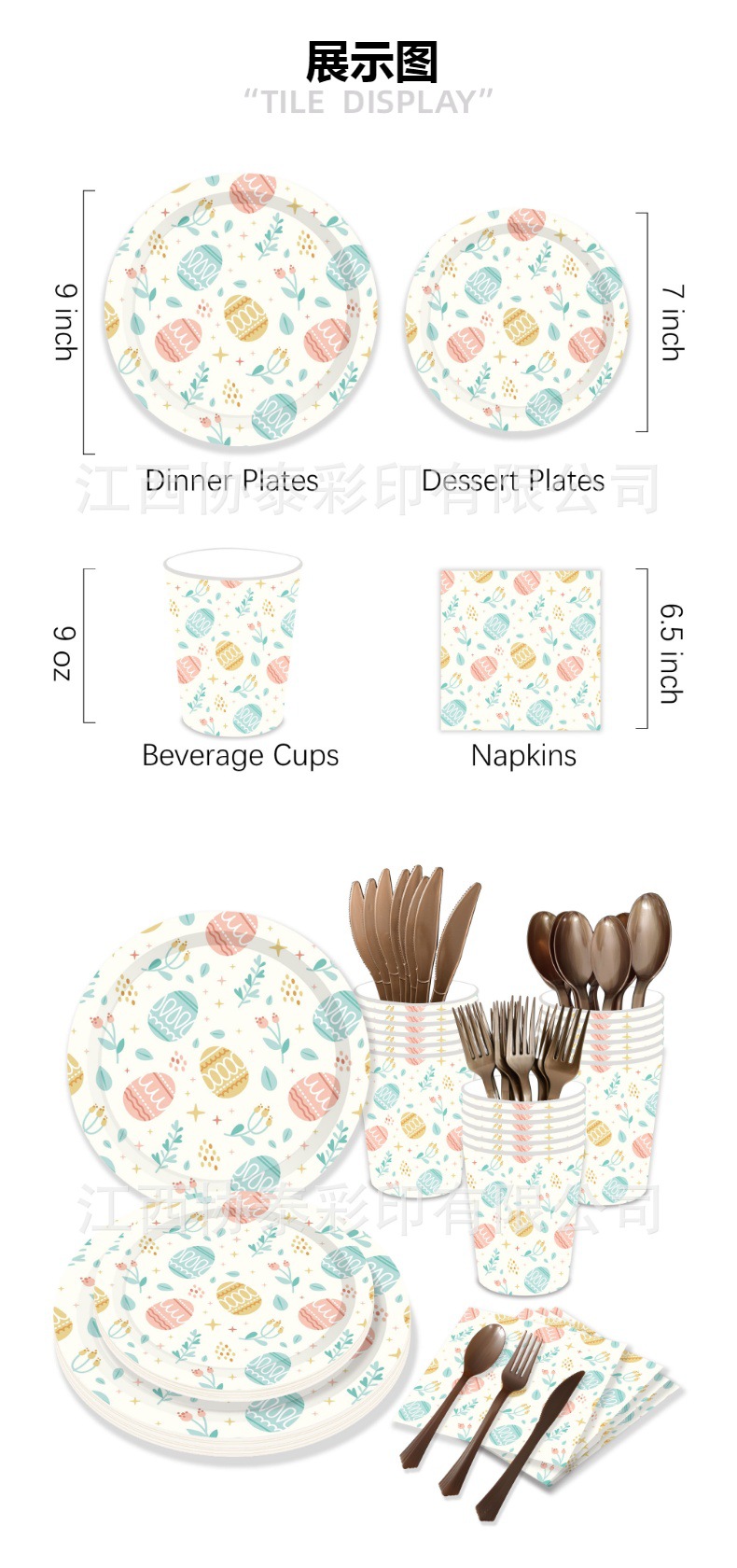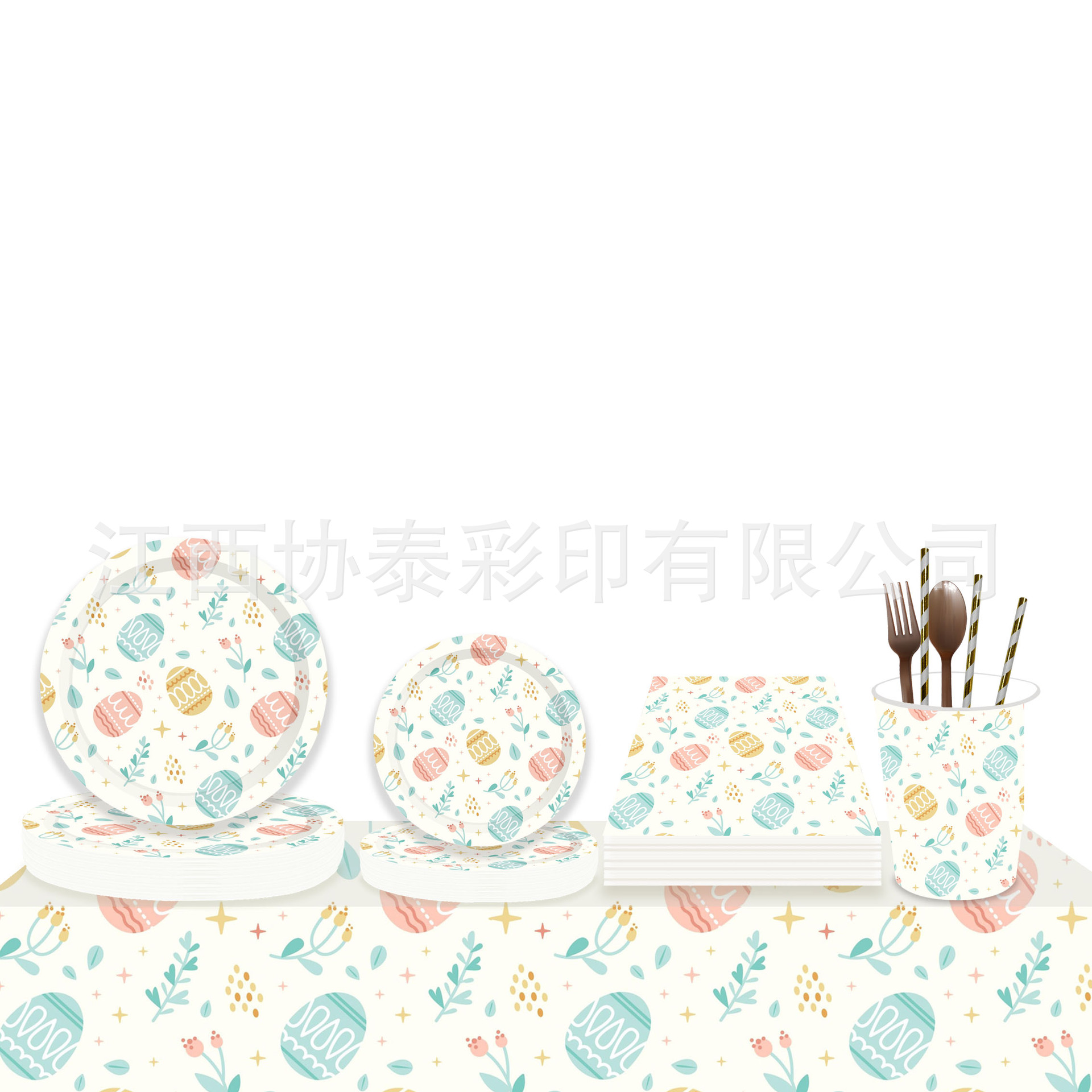 复活节派对主题聚会套装一次性餐具简约纸盘纸杯2023
