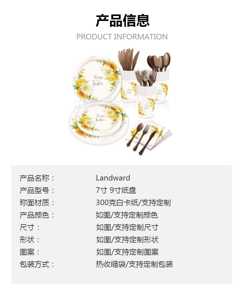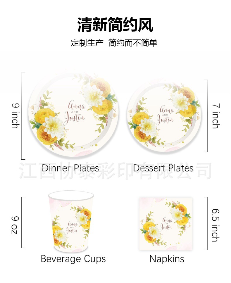 婚礼派对主题聚会套装一次性餐具简约纸盘纸杯2023
