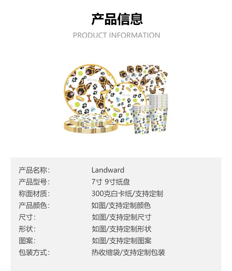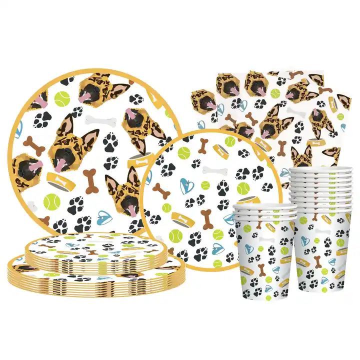 亚马逊新款宠物小狗一次性纸盘纸制餐具纸杯纸巾生日派对用品套装