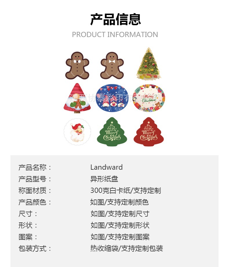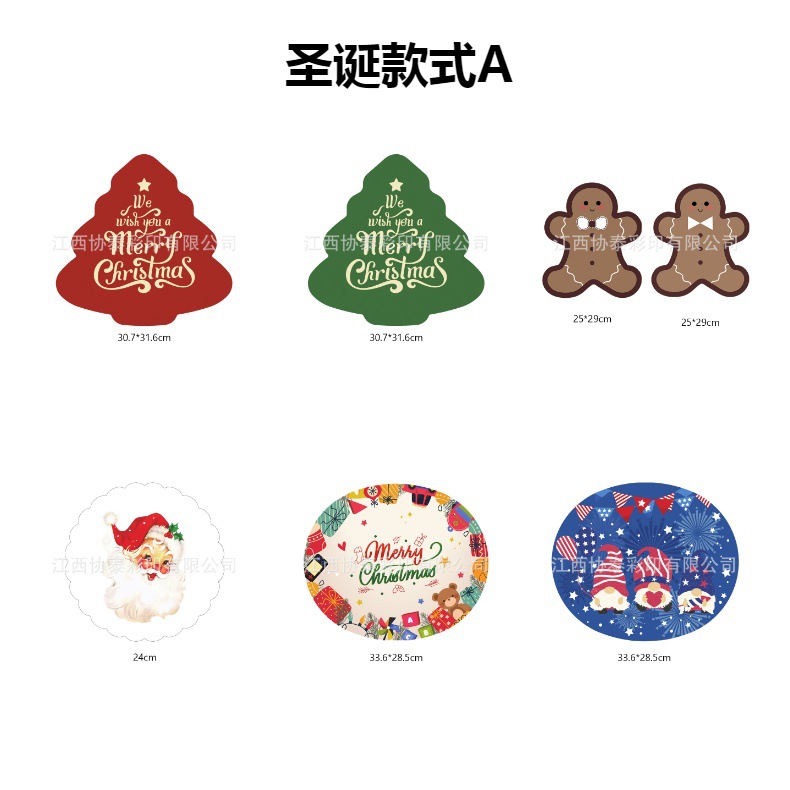跨境圣诞节主题雪人圣诞树装饰一次性纸盘点心纸盘派对餐具白卡盘