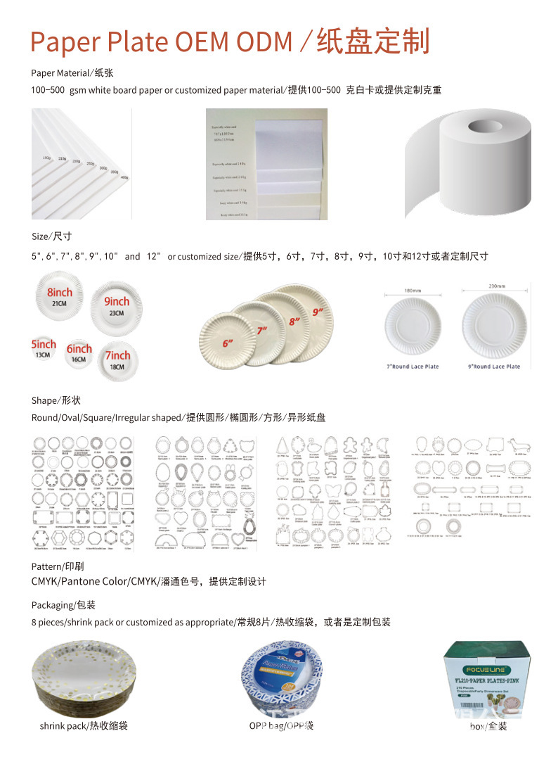 一次性主题点心纸盘跨境纸盘派对餐具白卡盘野餐7寸8寸9寸 2023