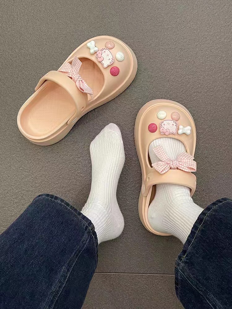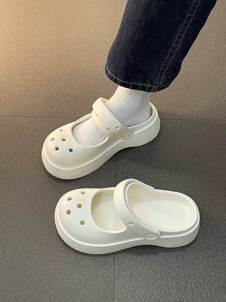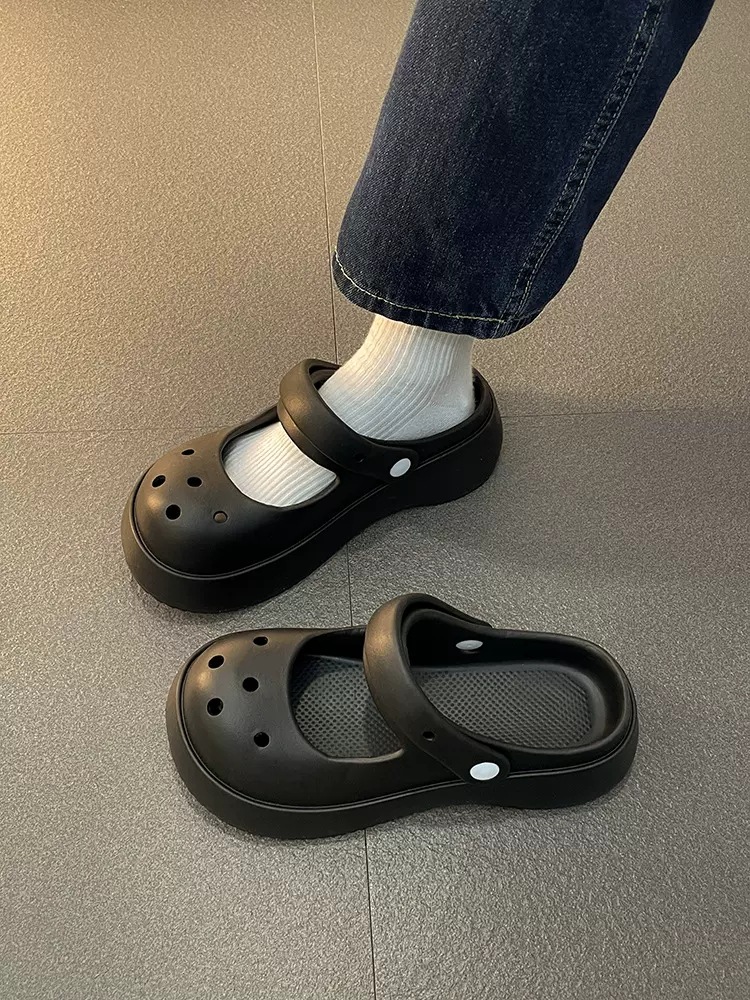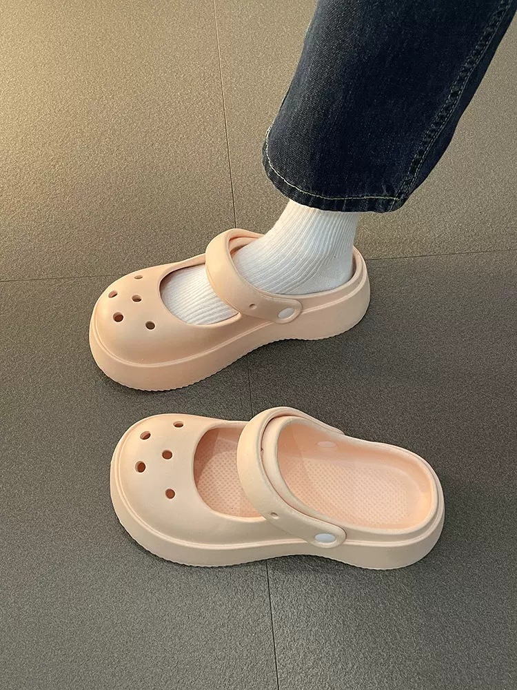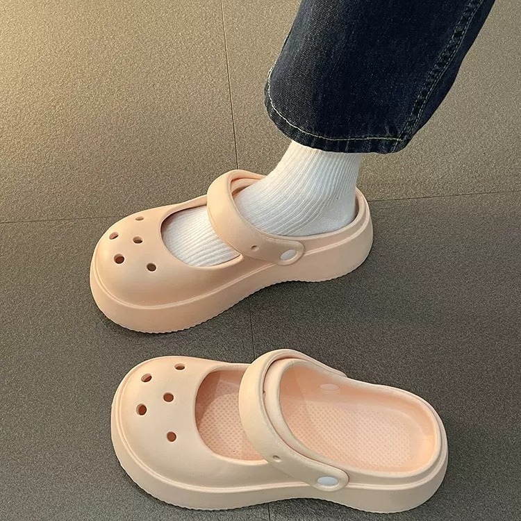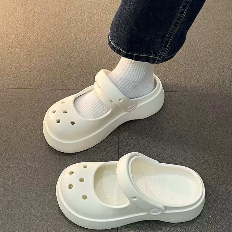网红踩屎感包头玛丽珍拖鞋夏季女2024新款厚底洞洞鞋防滑室外凉鞋