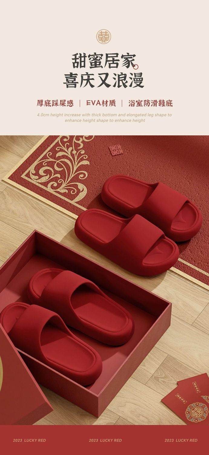 踩屎感拖鞋女夏季室内家居新款情侣浴室防滑红色本命年凉拖鞋女士
