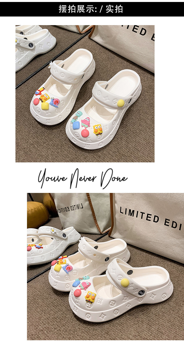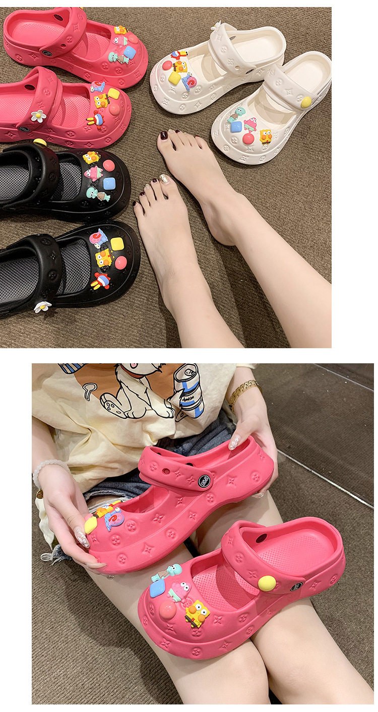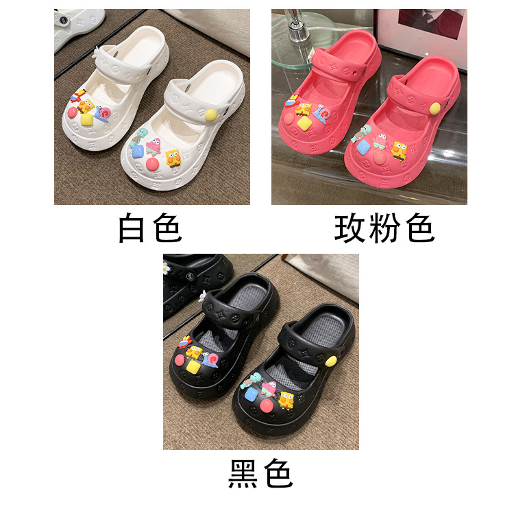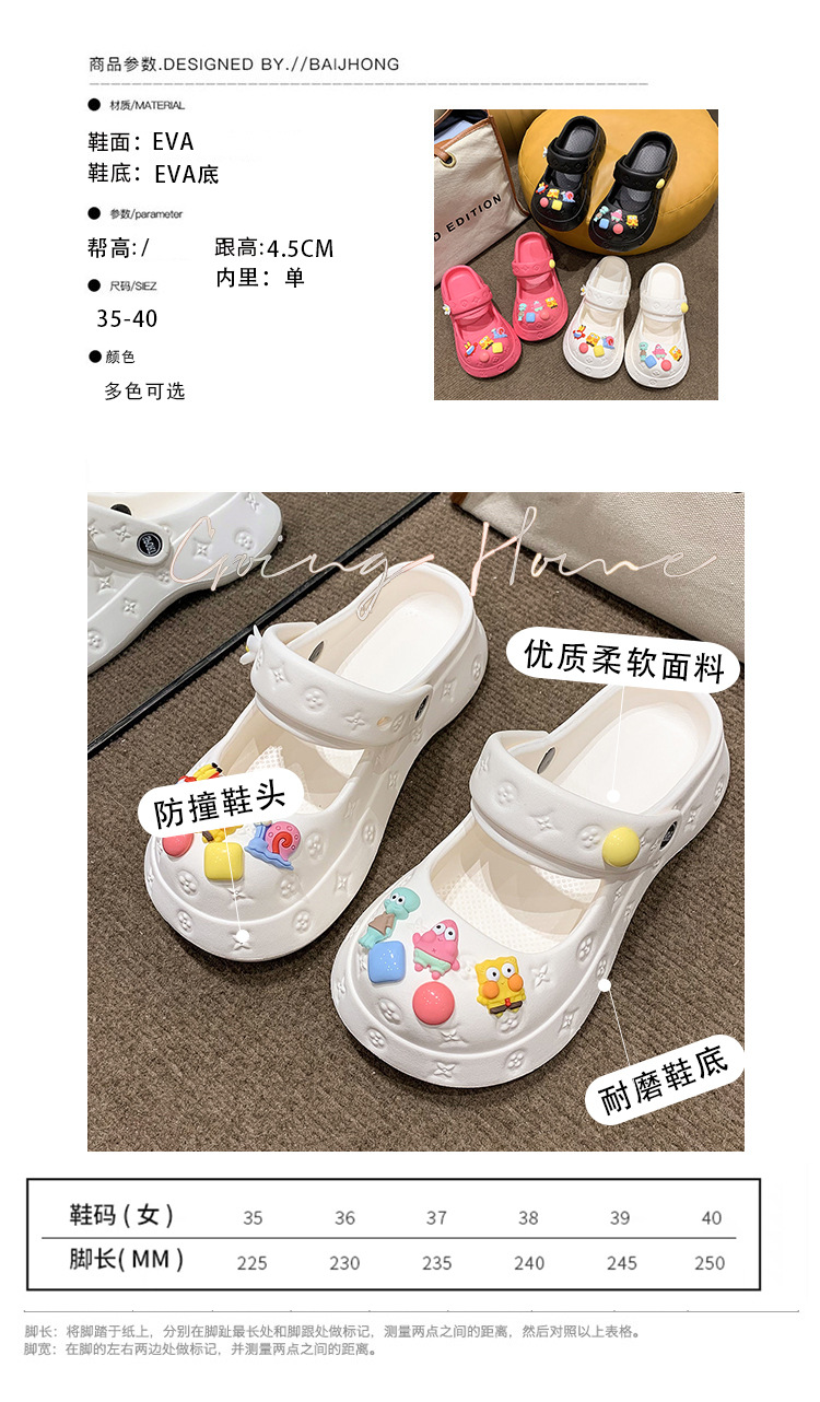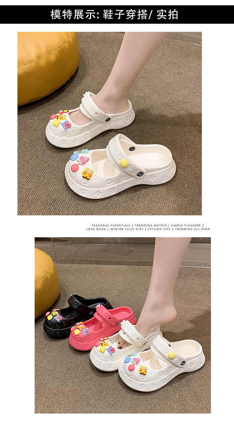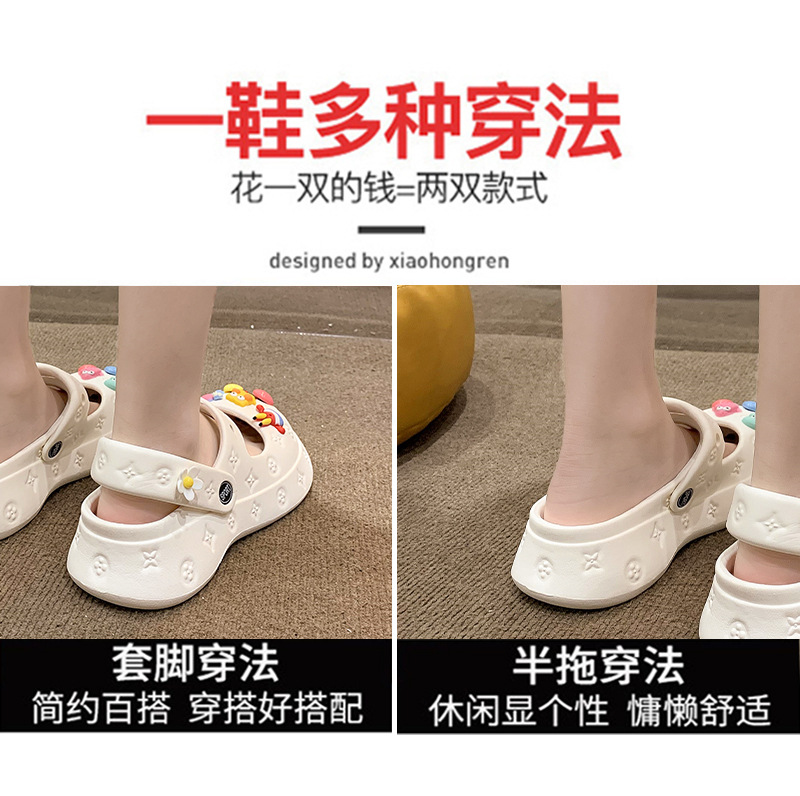 洞洞鞋女夏季可爱学生软底踩屎感外穿厚底包头洞洞鞋两穿沙滩凉拖