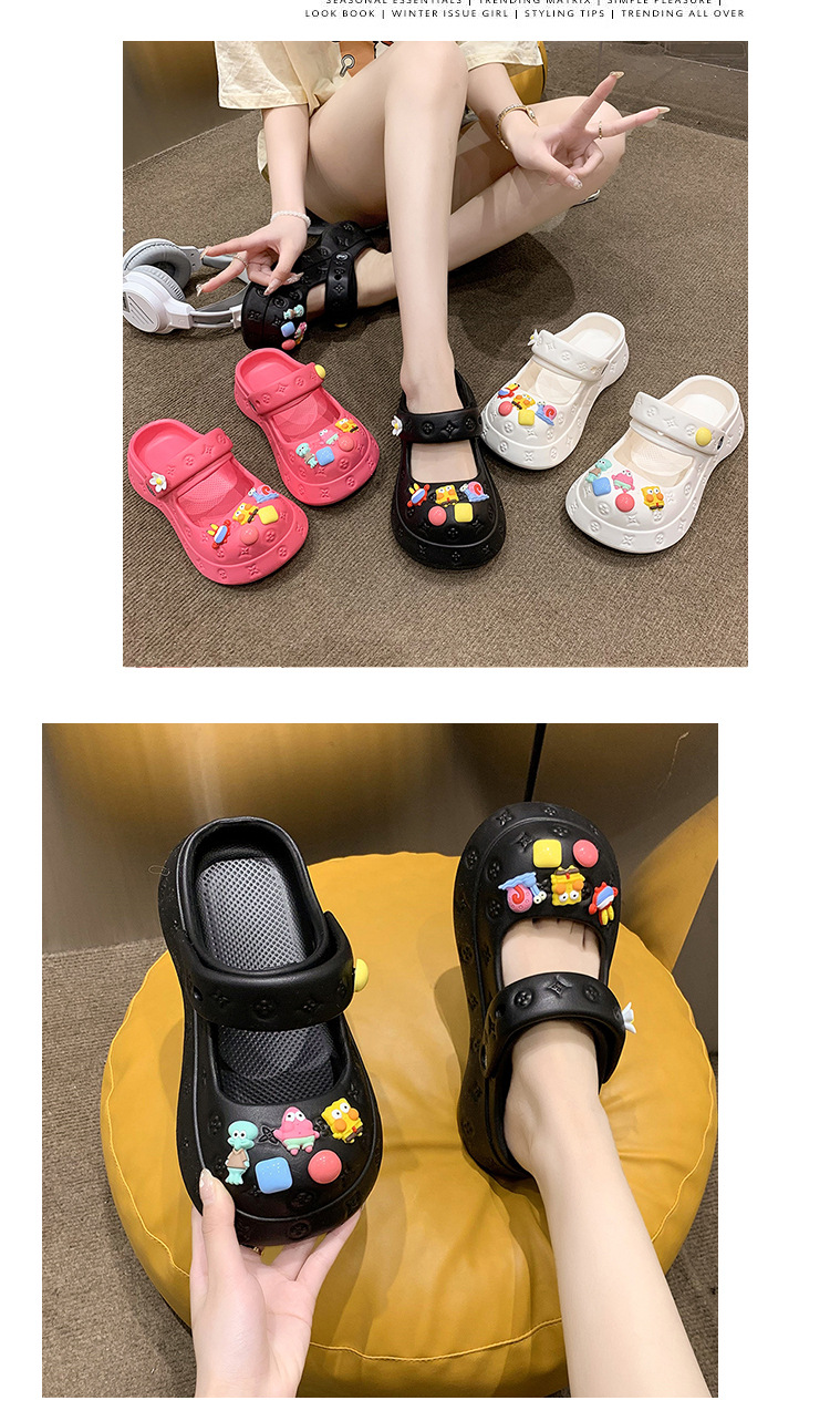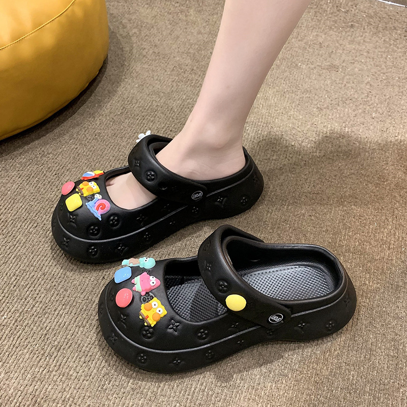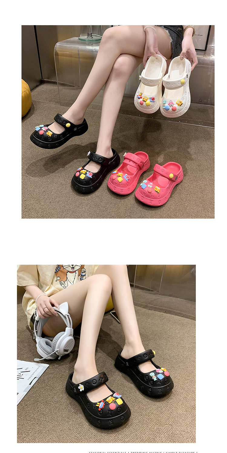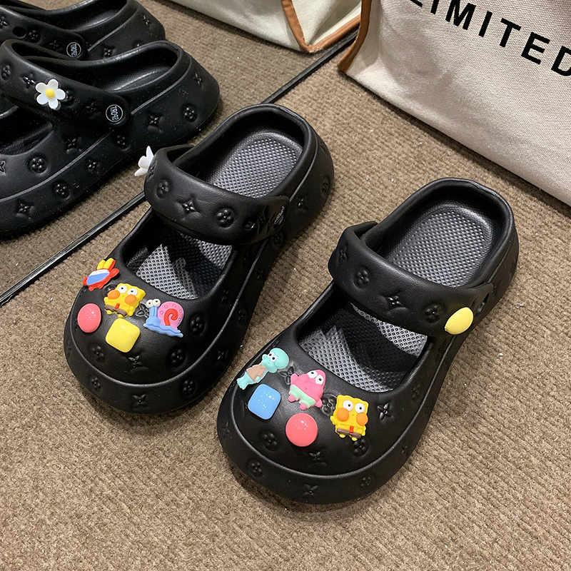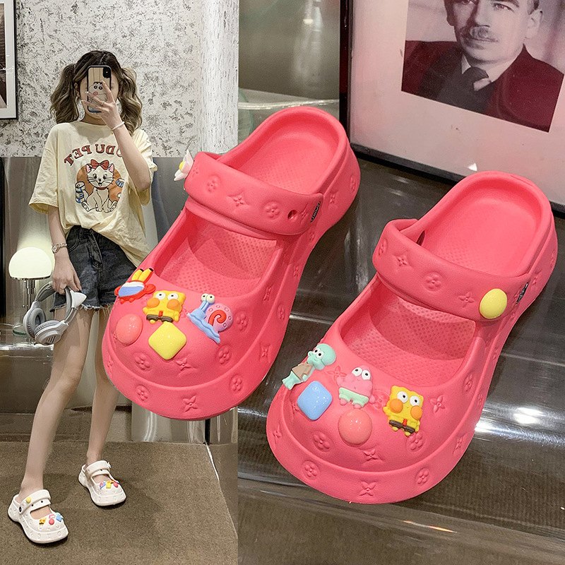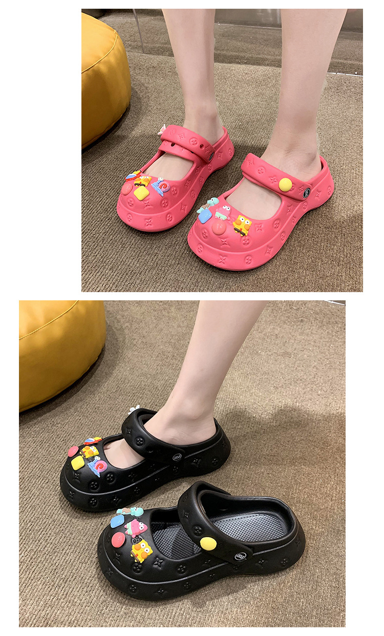 洞洞鞋女夏季可爱学生软底踩屎感外穿厚底包头洞洞鞋两穿沙滩凉拖