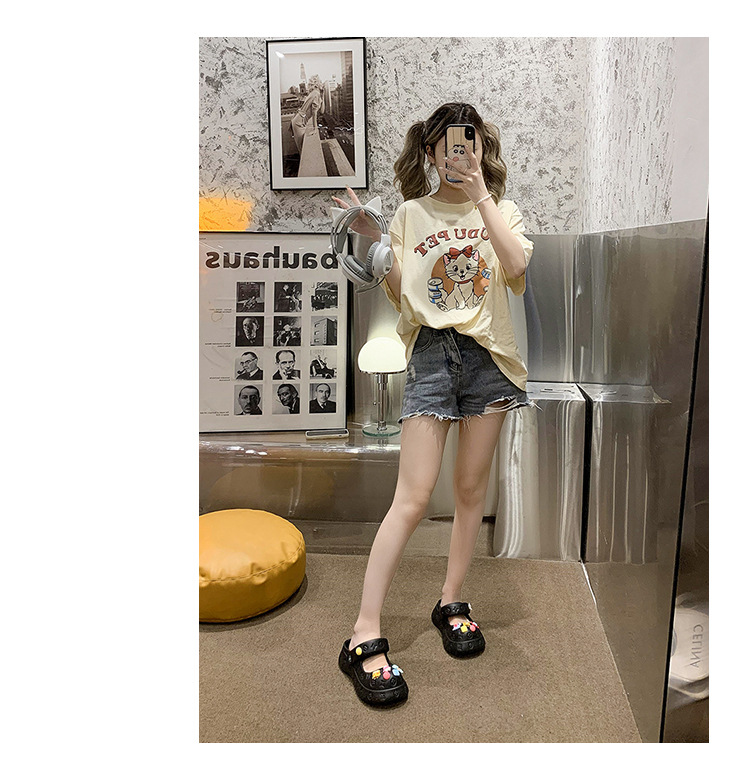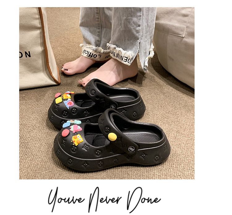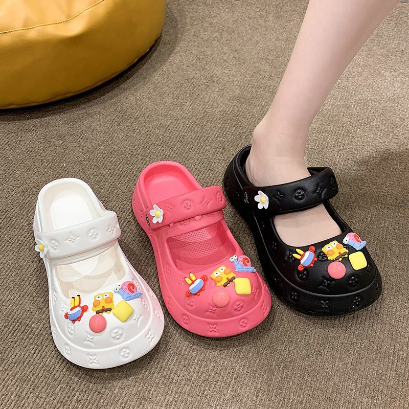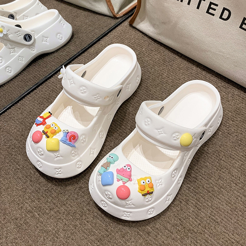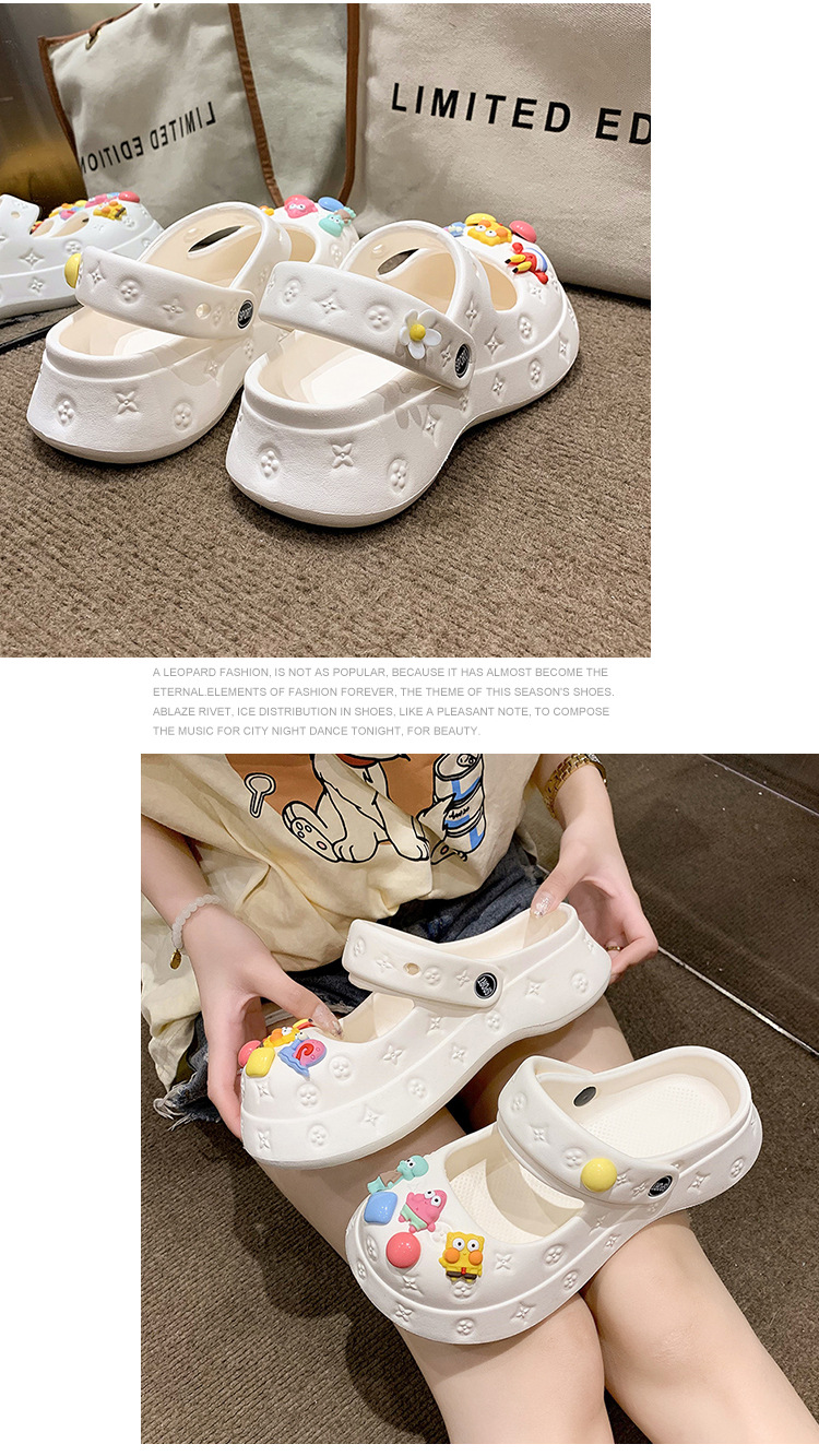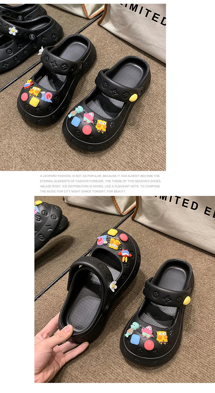 洞洞鞋女夏季可爱学生软底踩屎感外穿厚底包头洞洞鞋两穿沙滩凉拖