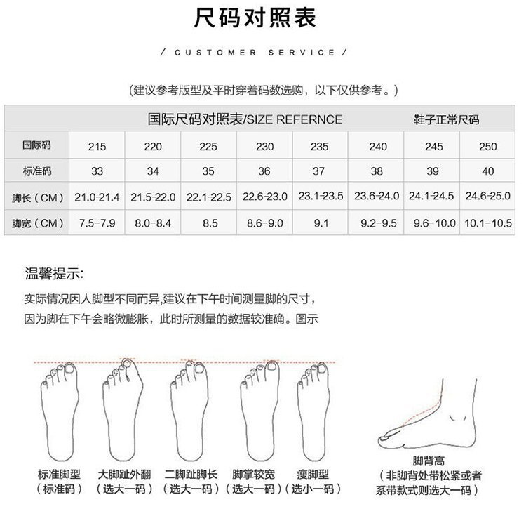 | 36-37 (smaller size)(36-37(偏小一码)) | USD $2.41 | 1129 pair available |