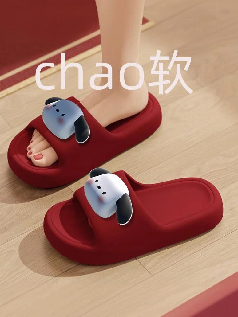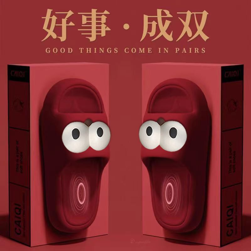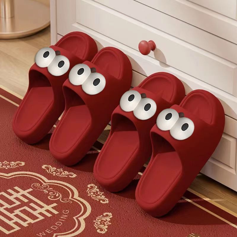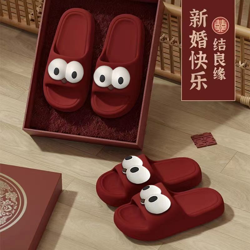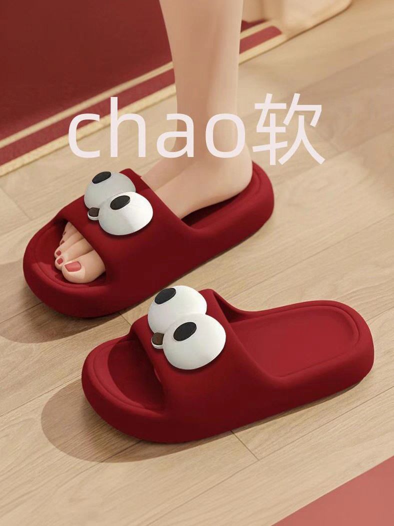 卡通厚底踩屎感红色拖鞋男浴室家居防滑陪嫁结婚鞋情侣款女