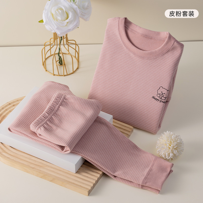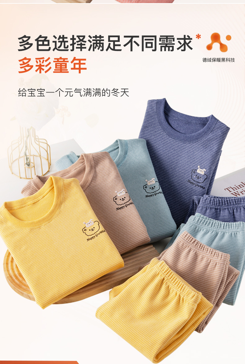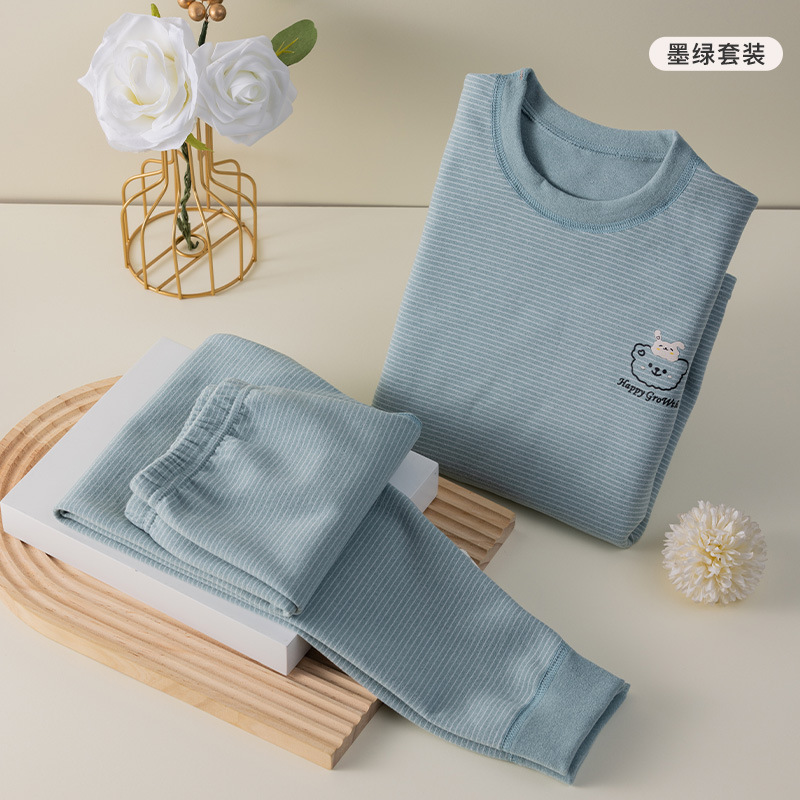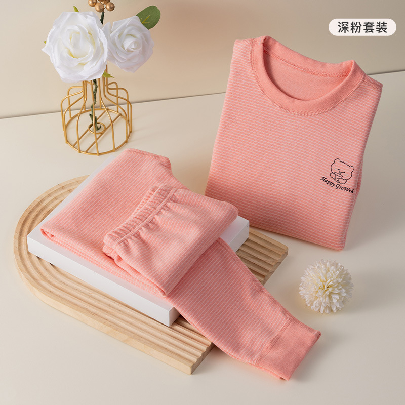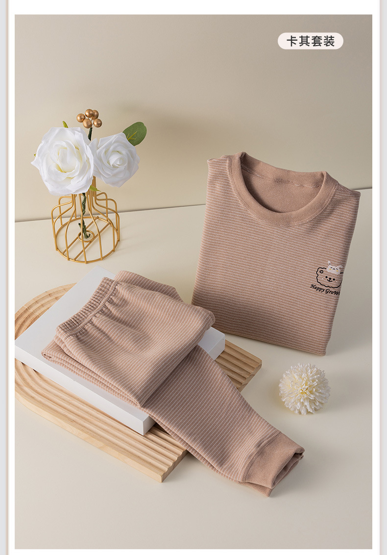 批发儿童秋衣秋裤套装百搭条纹卡通男女宝宝双面德绒打底保暖内衣