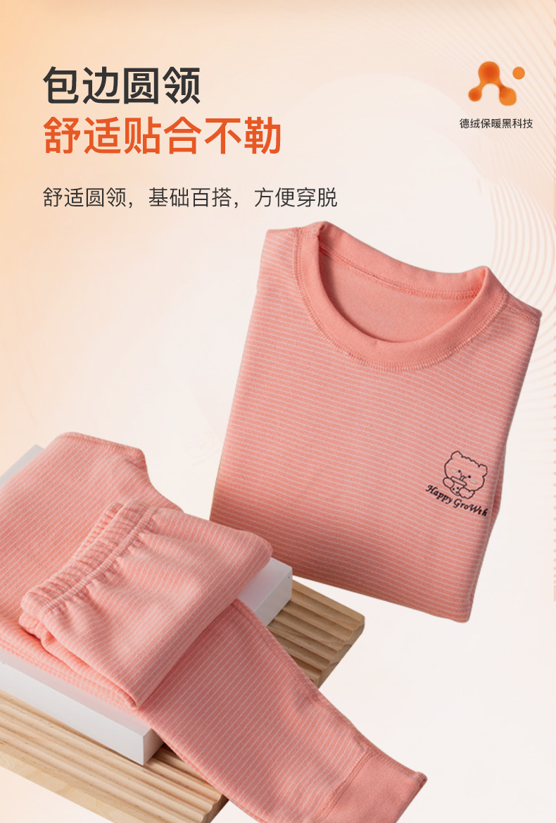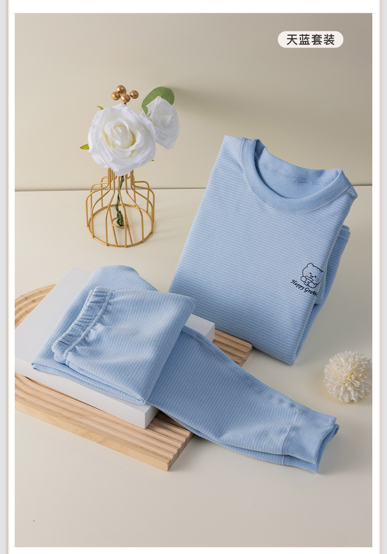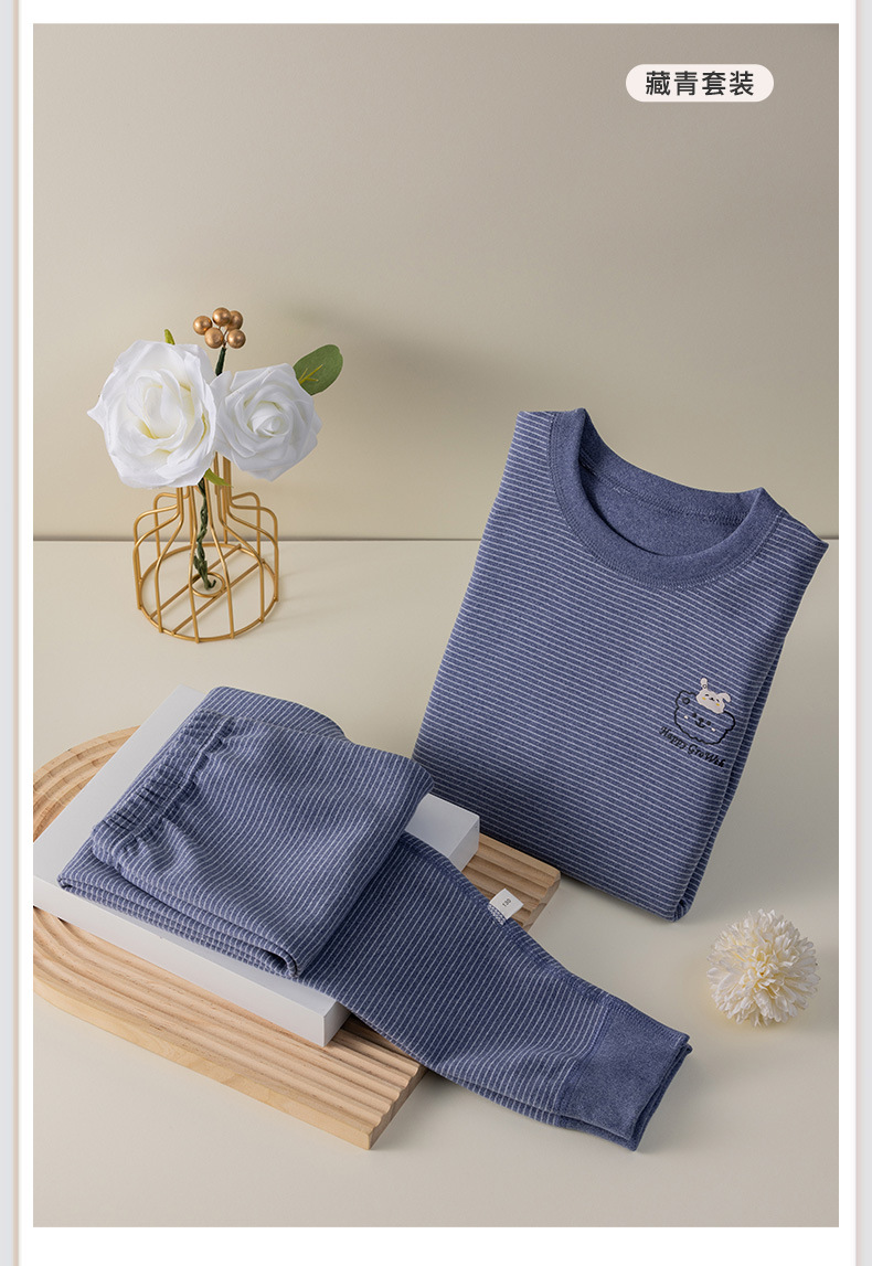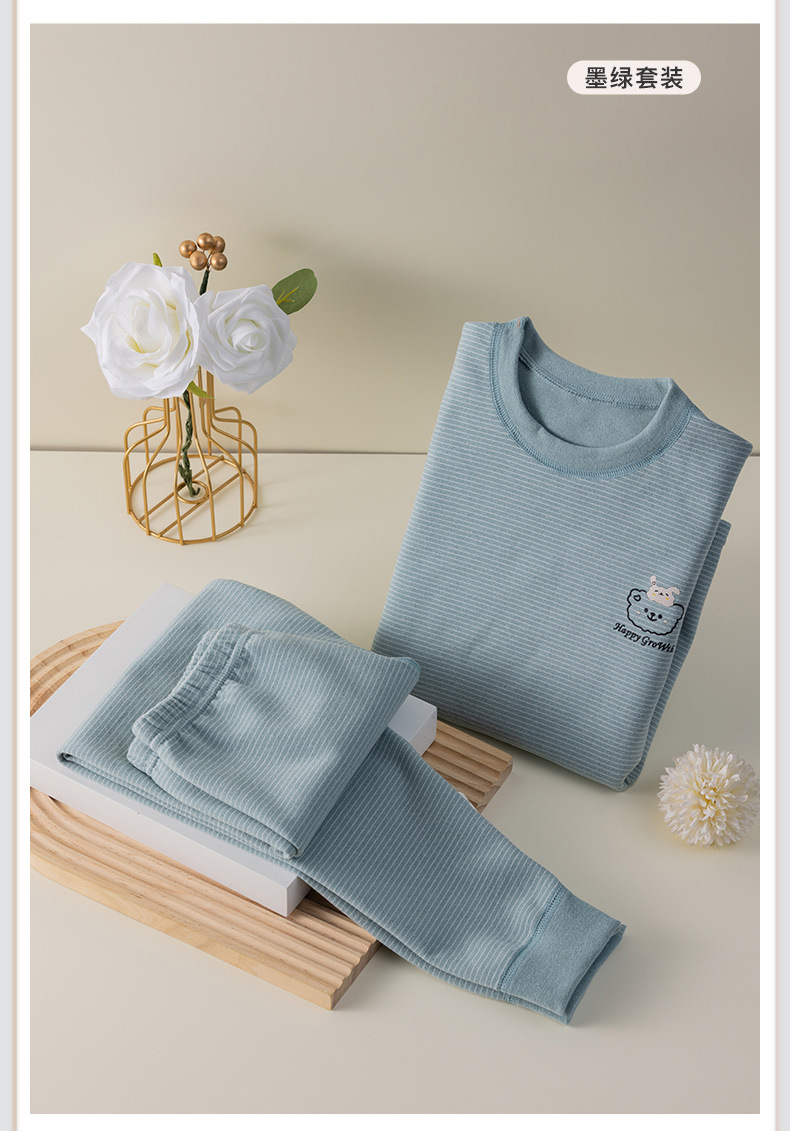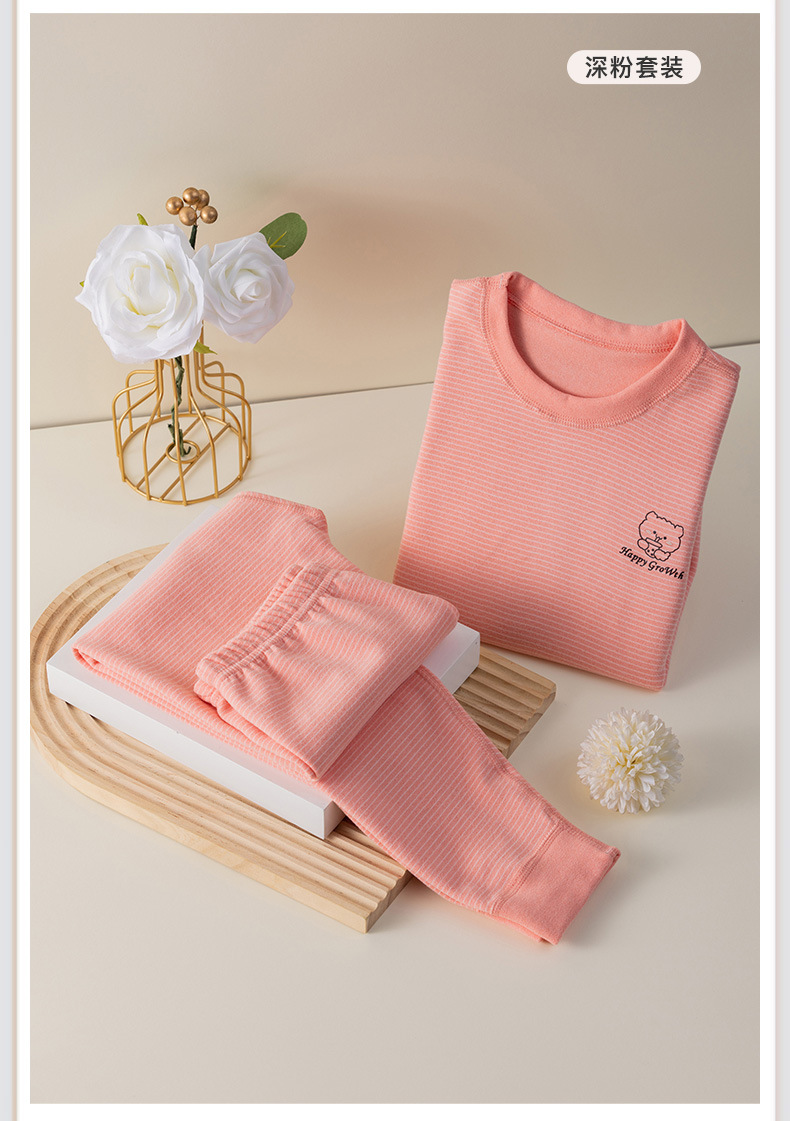 批发儿童秋衣秋裤套装百搭条纹卡通男女宝宝双面德绒打底保暖内衣