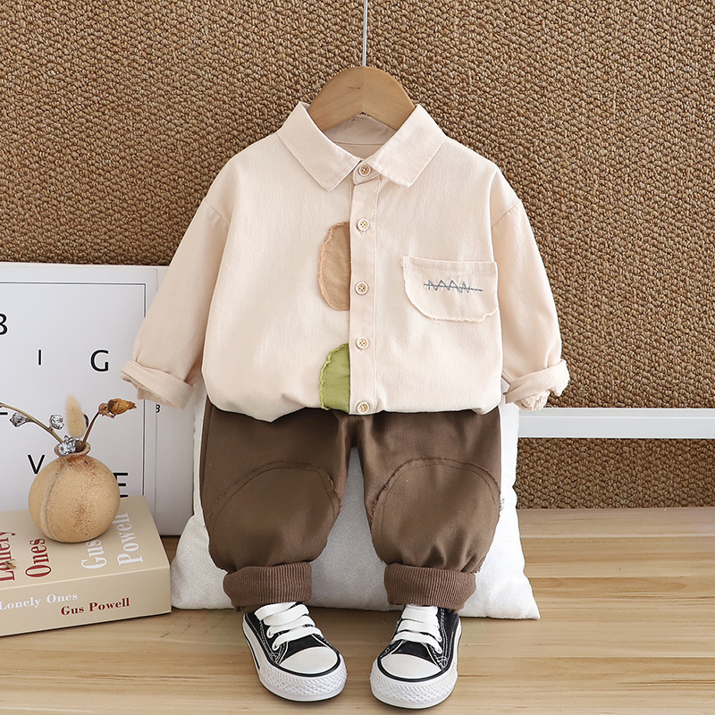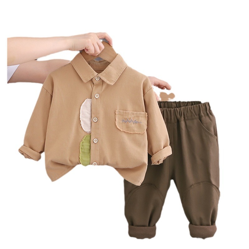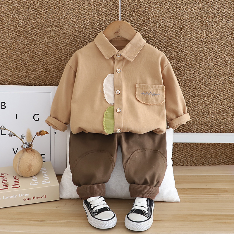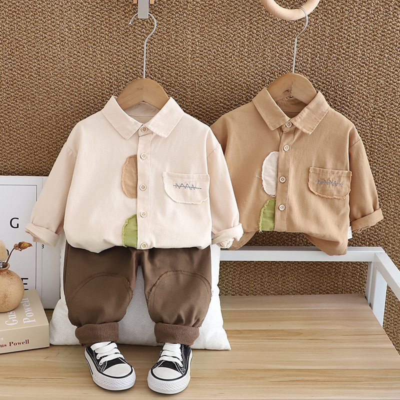 男童衬衫套装2024新款儿童衬衣宝宝春秋洋气休闲长袖两件套代发潮