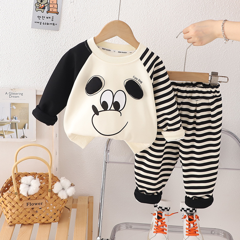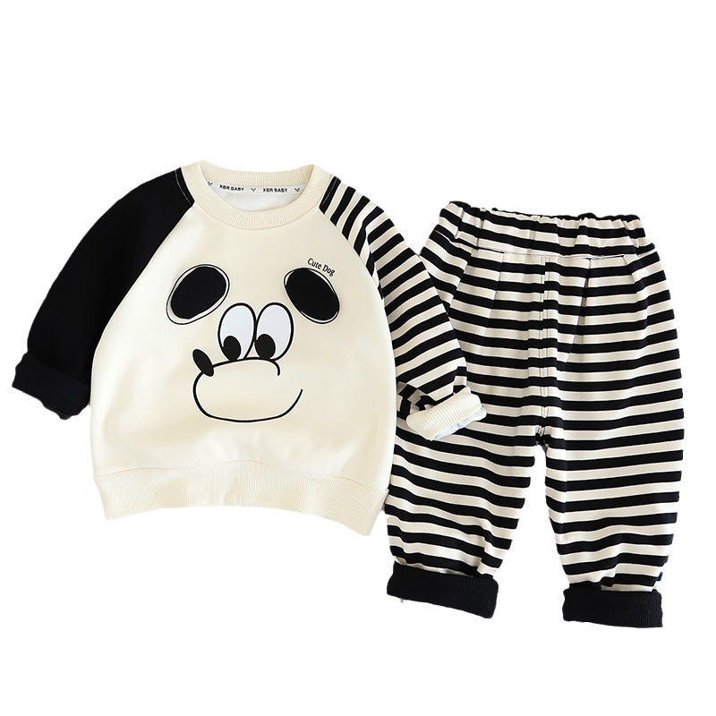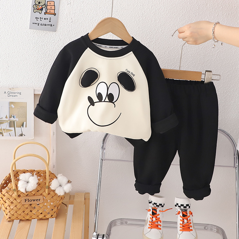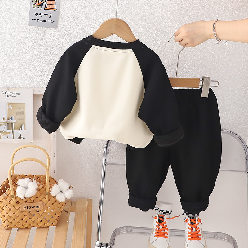 2024秋季新款男童口袋圆领长袖套装男宝宝休闲长裤两件套一件代发