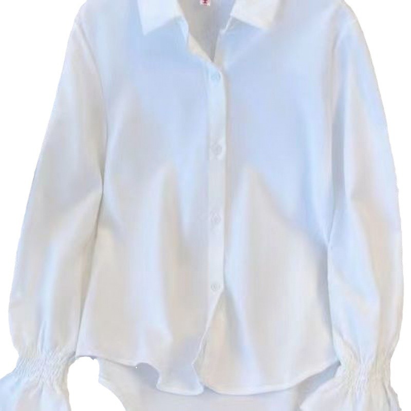 春秋新款设计感小众白色衬衫女学生喇叭袖马甲衬衣打底衫上衣百搭