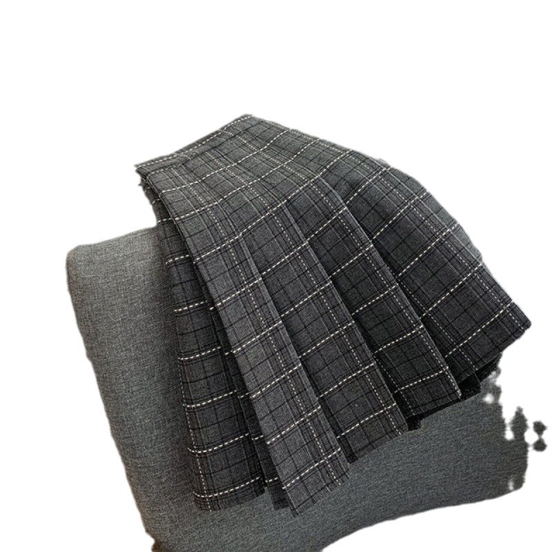 百褶裙夏新款格子灰色粉色洋气大码A字高腰显瘦防走光短裙半身裙