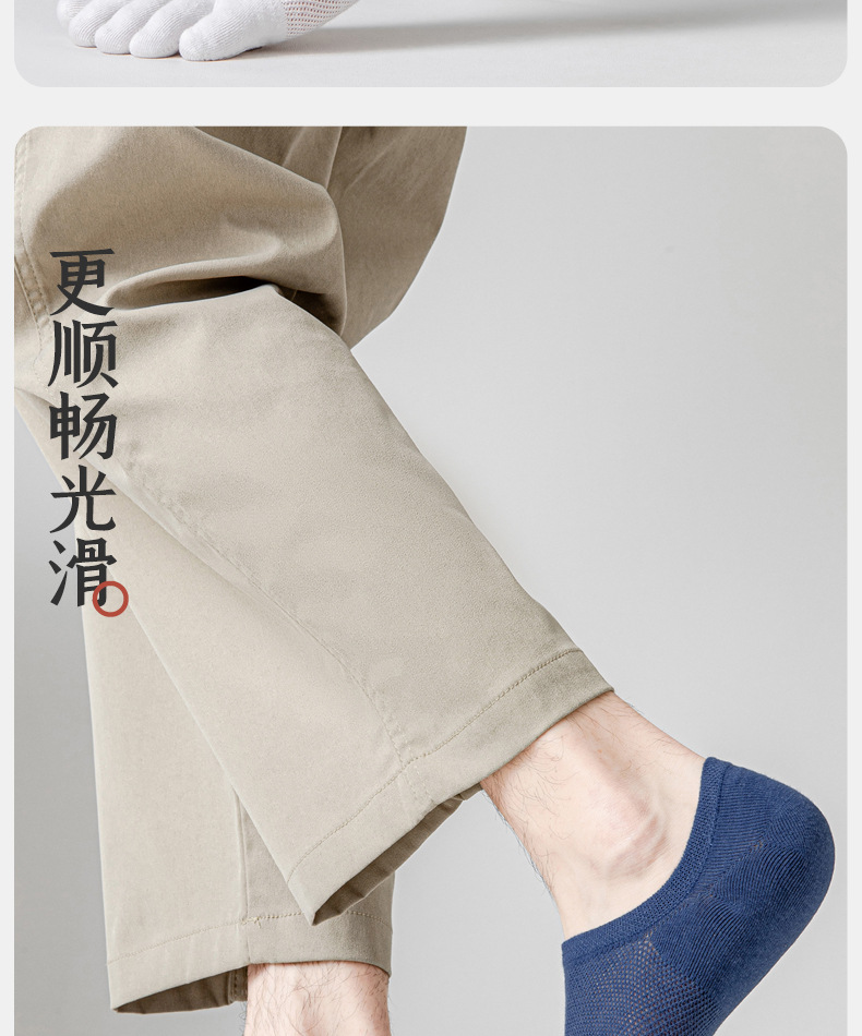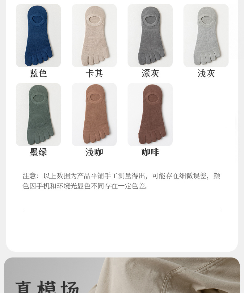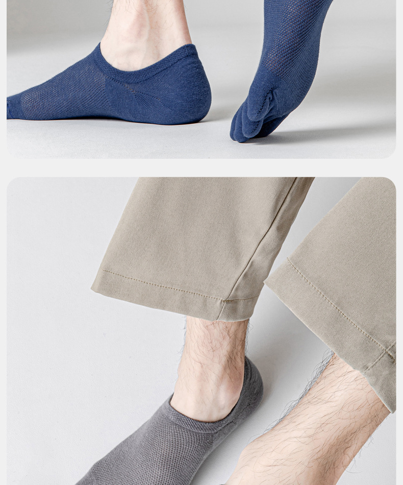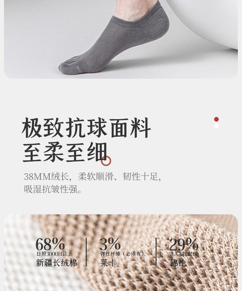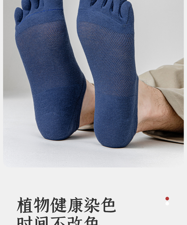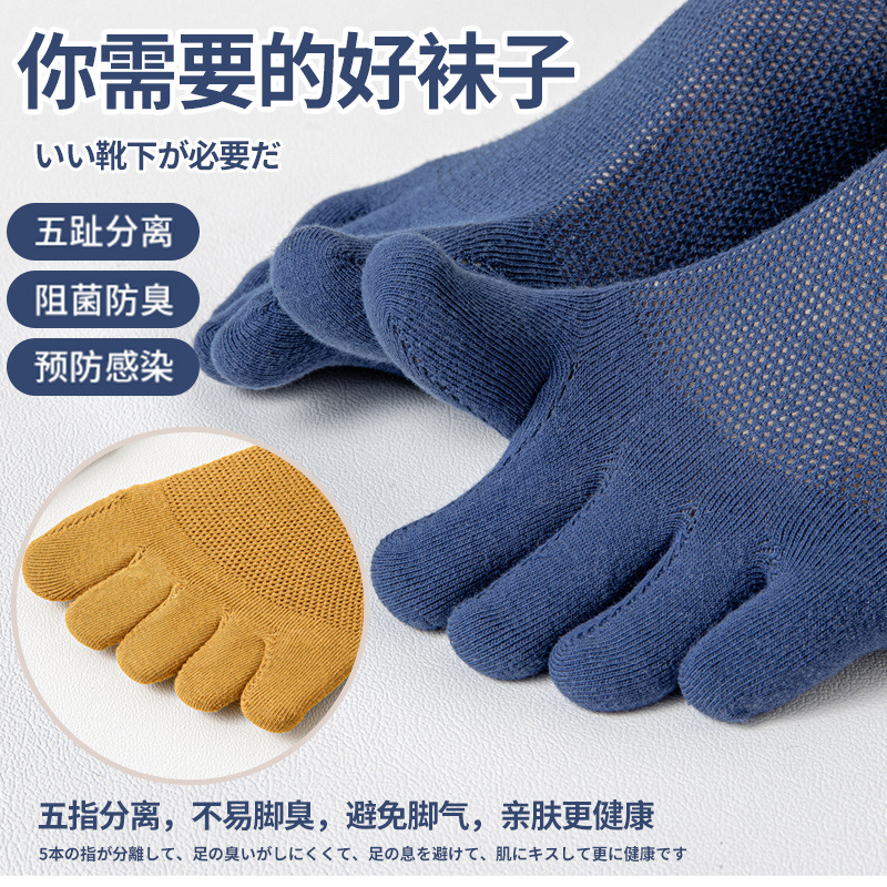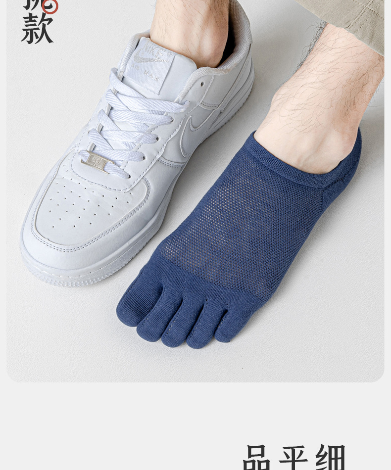五指袜男士纯色棉短袜防臭吸汗夏季薄款透气分趾脚趾隐形网眼船袜