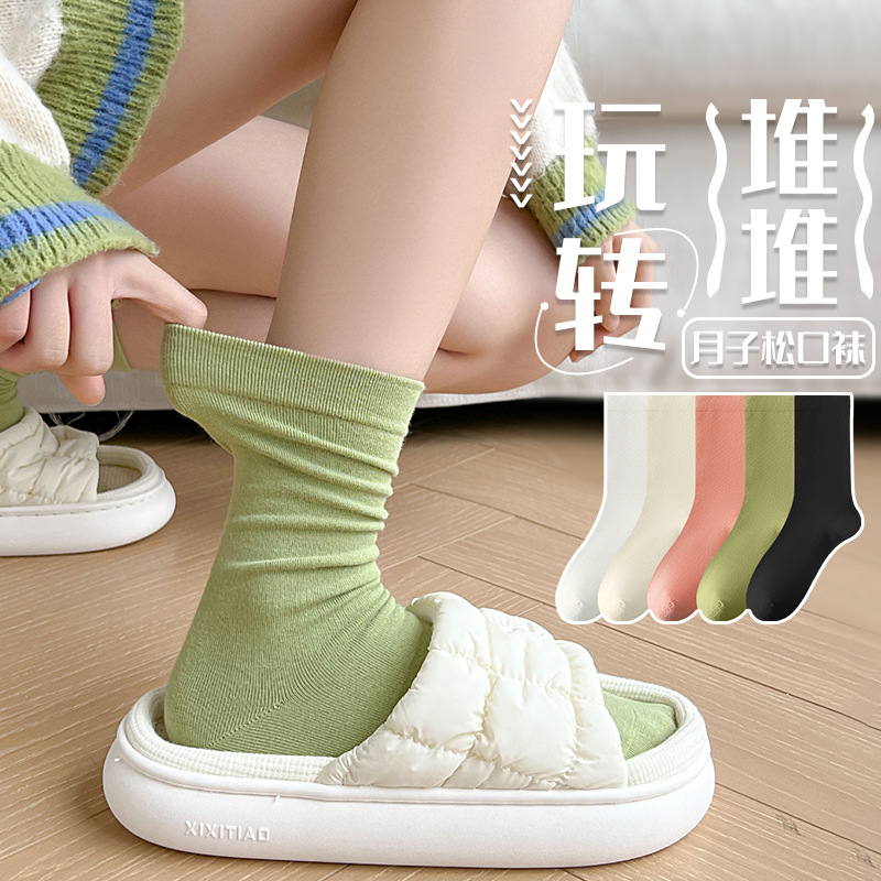 松口袜子女中筒棉袜纯白色堆堆袜ins风百搭抗起球无骨月子袜批发
