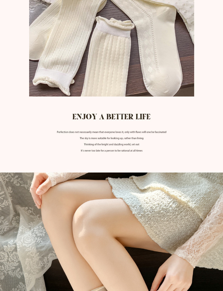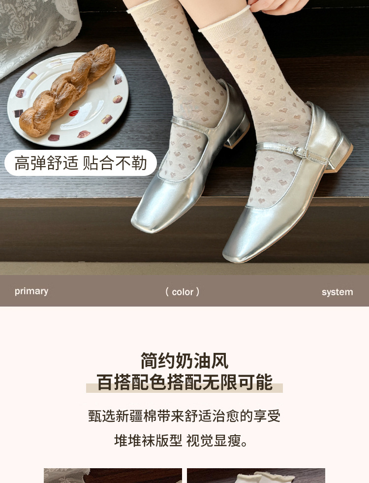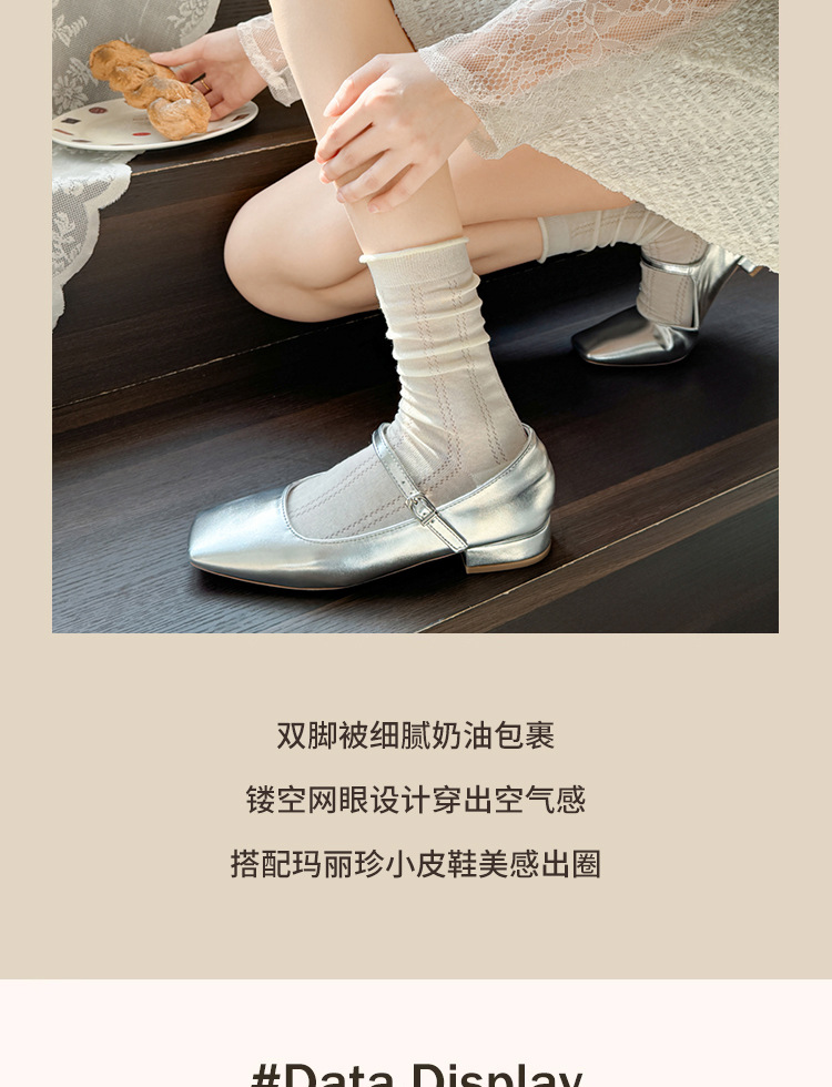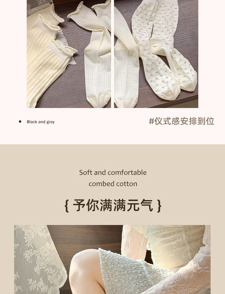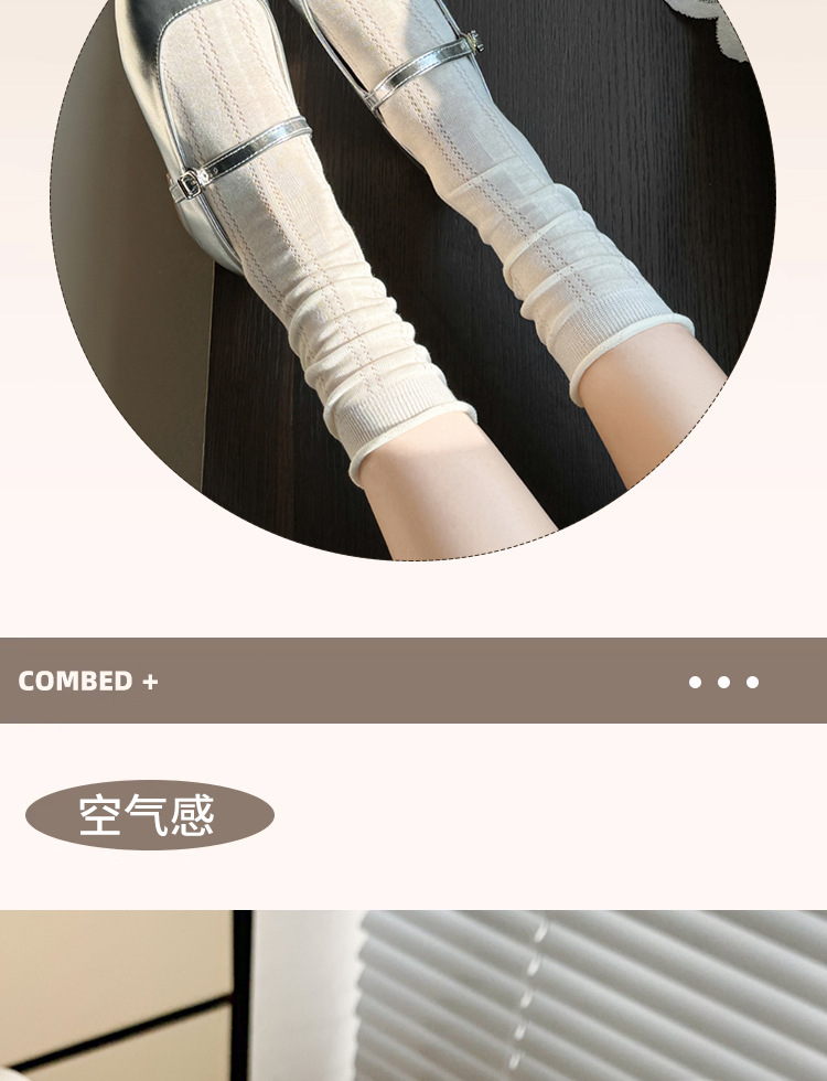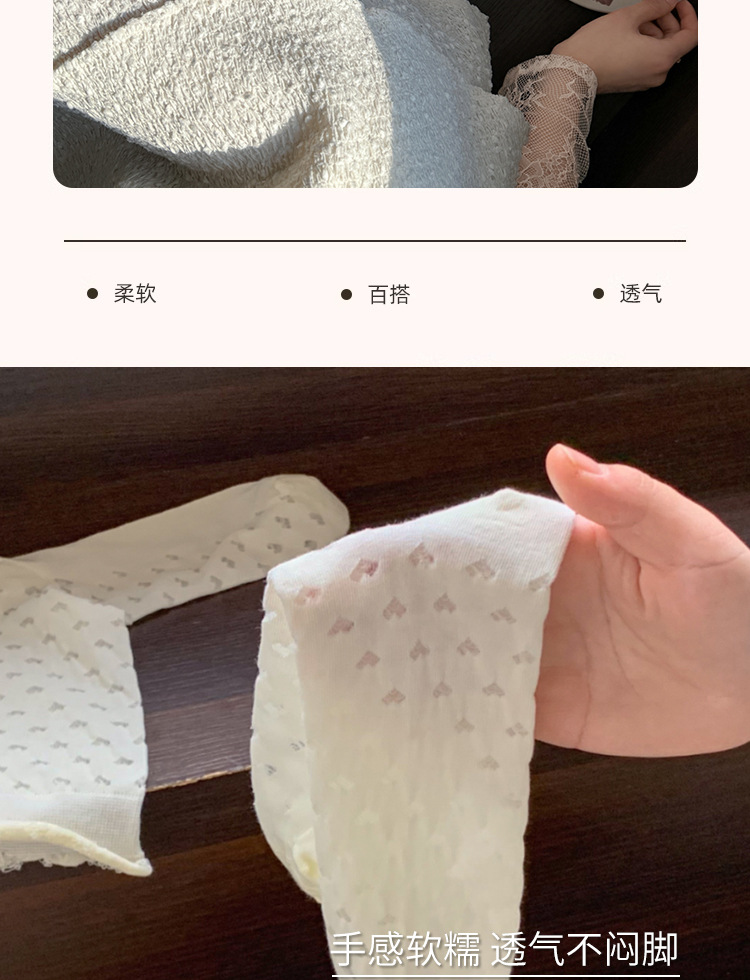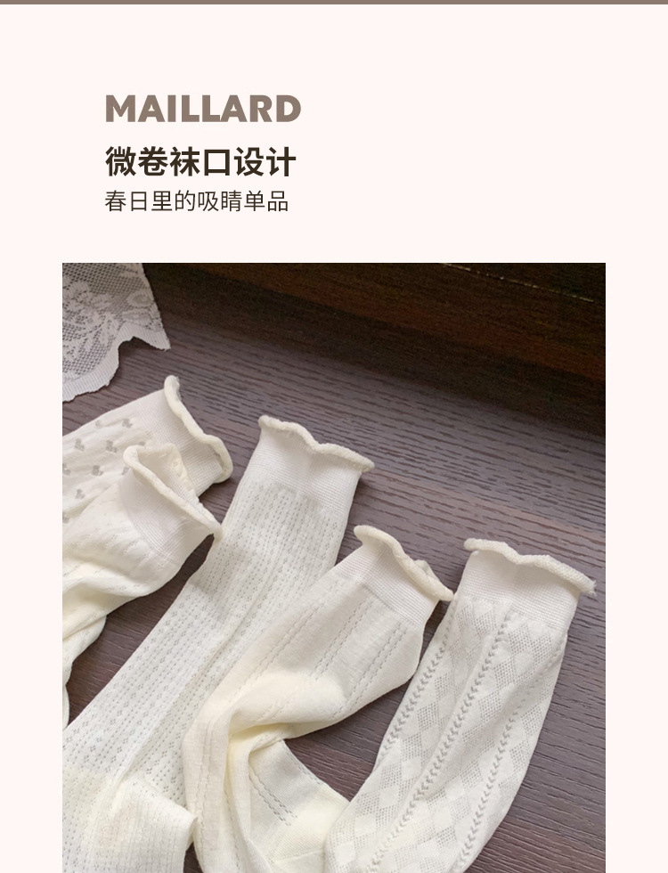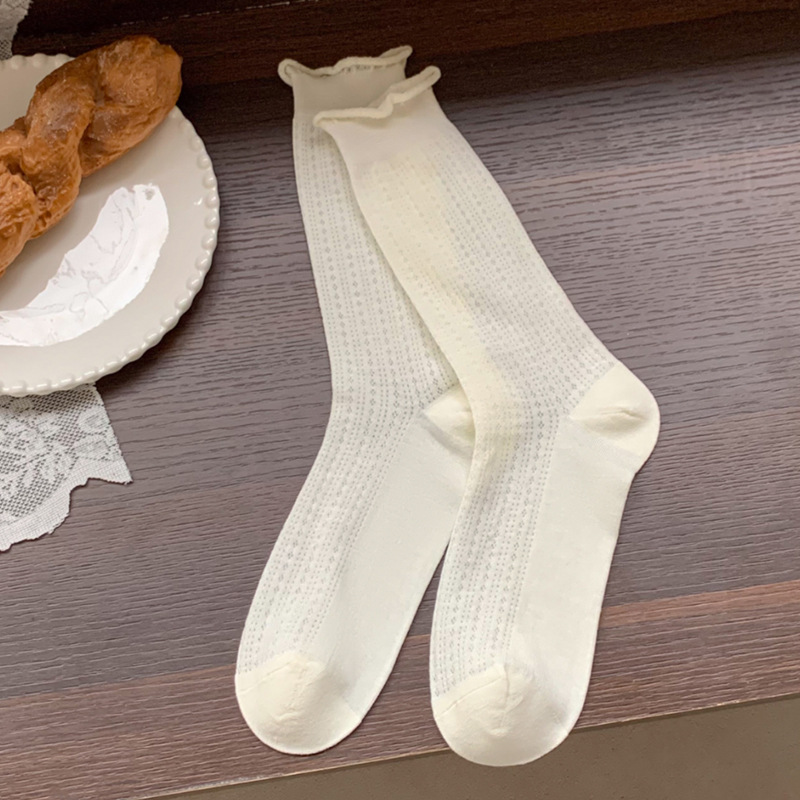 袜子女夏季薄款miu~风白色卷边堆堆袜网眼透气中筒袜子搭配小皮鞋