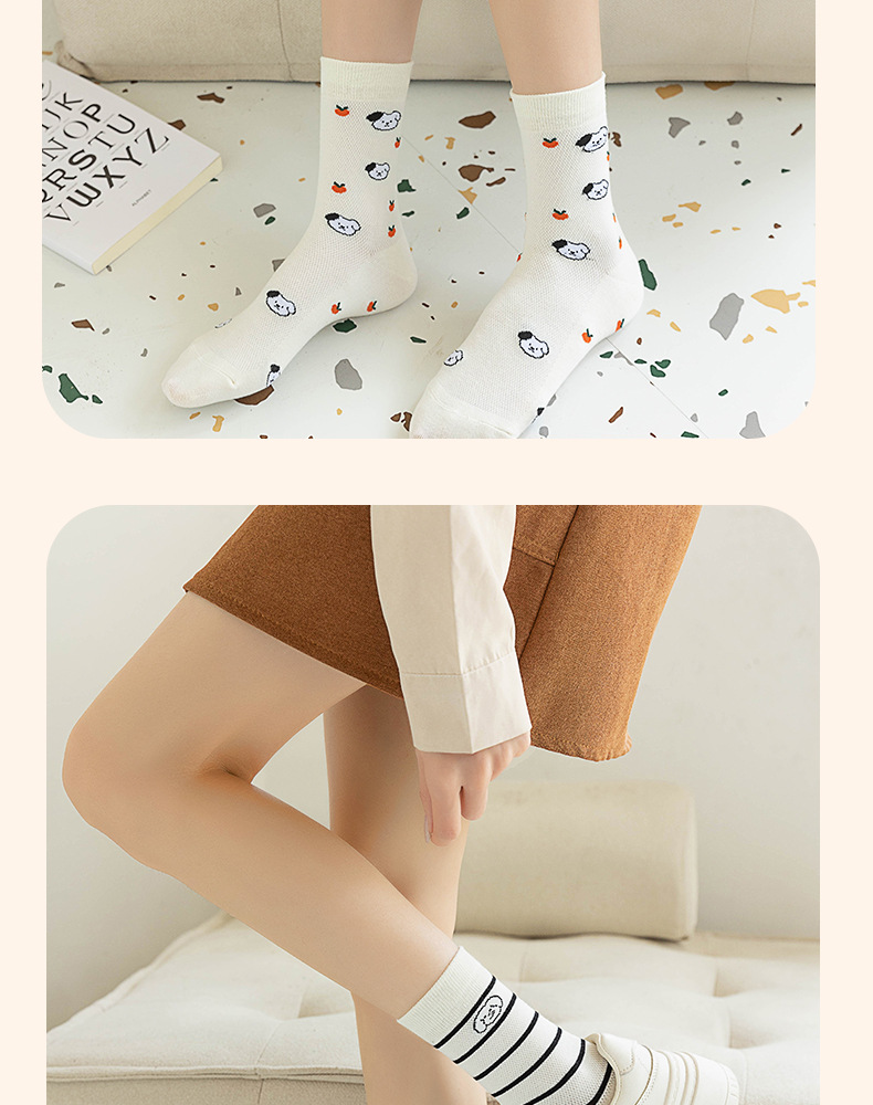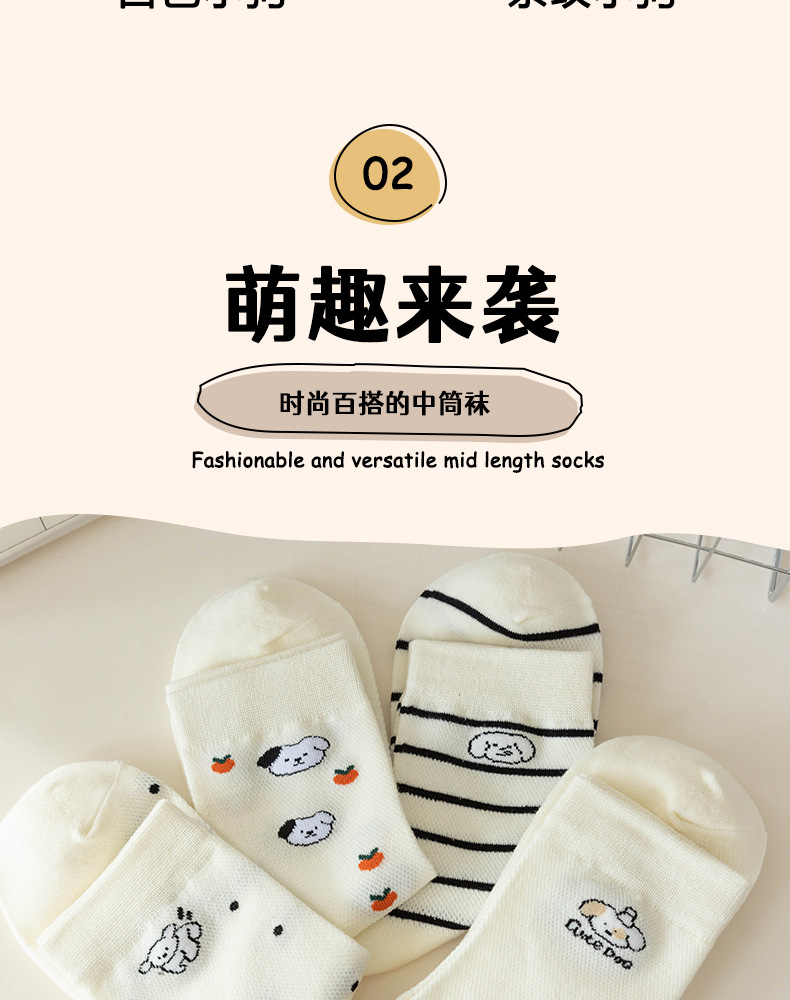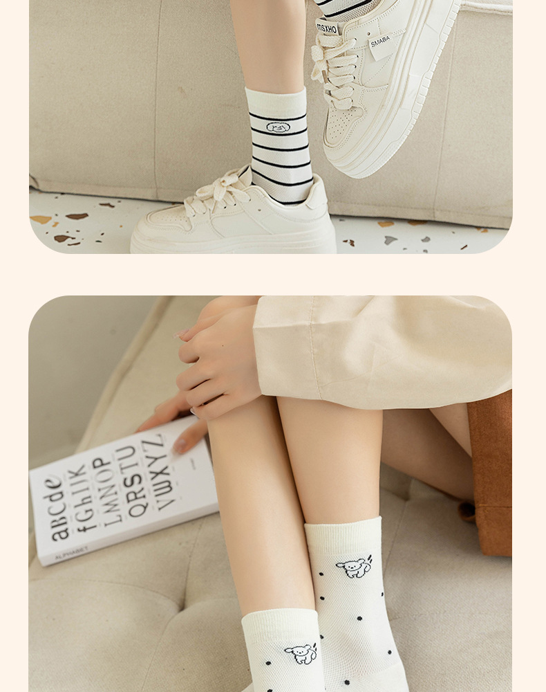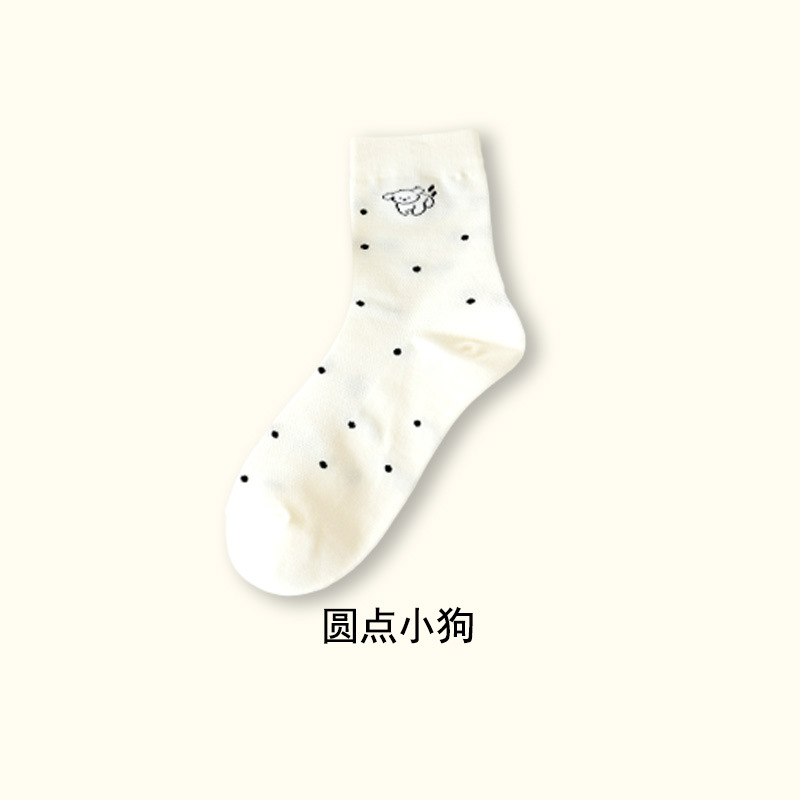 袜子女可爱卡通小狗网眼透气黑白圆点条纹中筒袜ins潮袜夏季薄款
