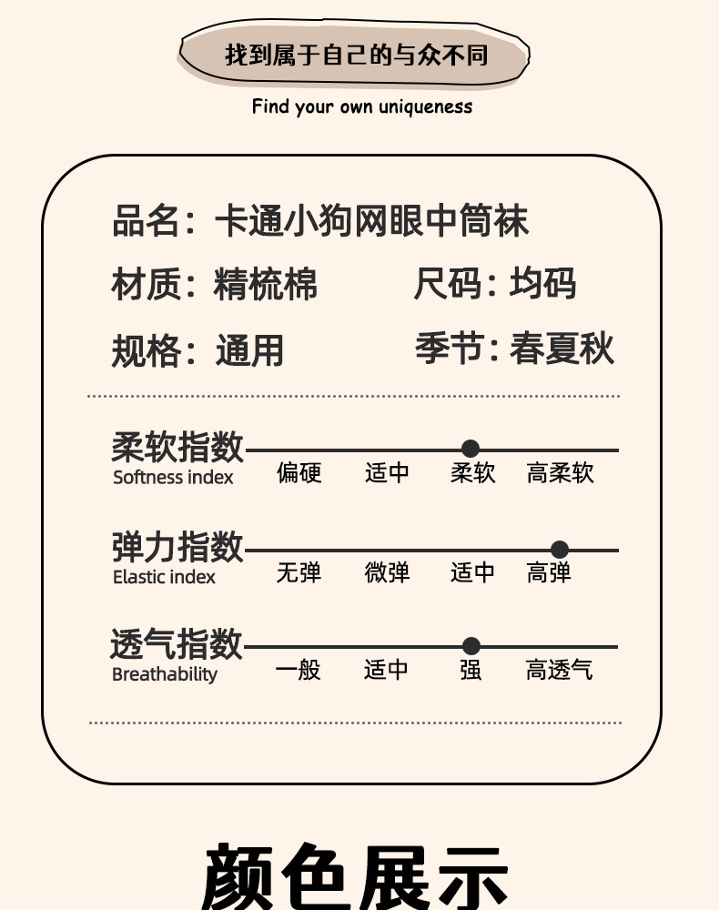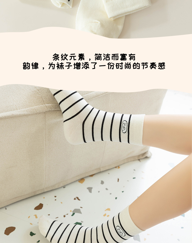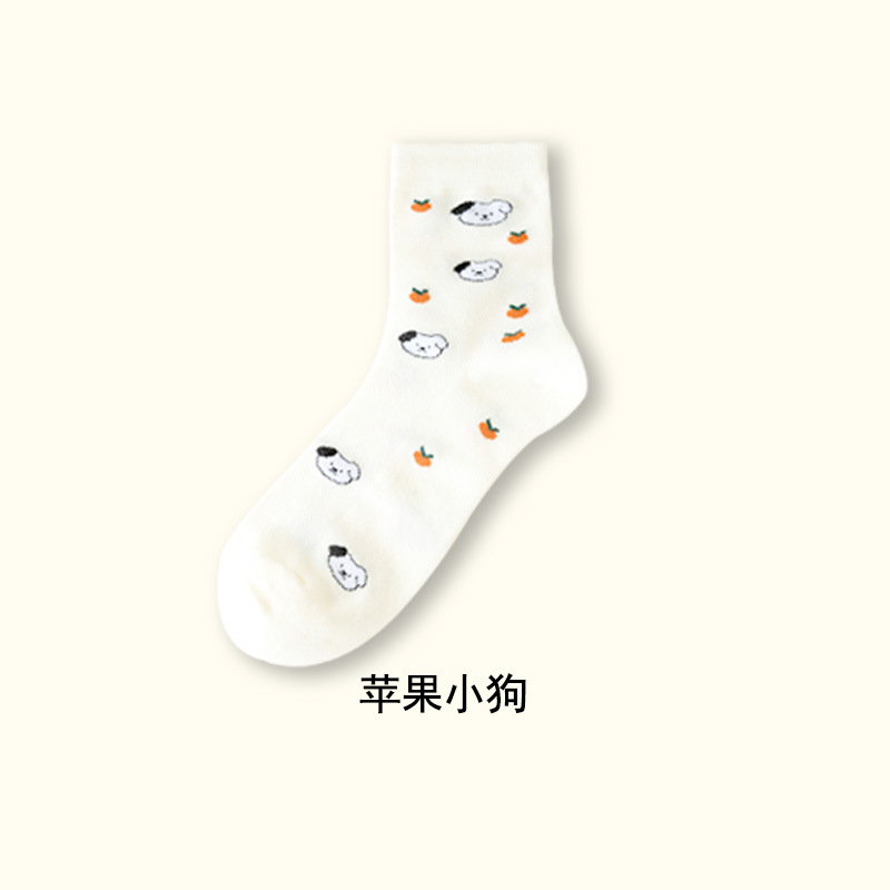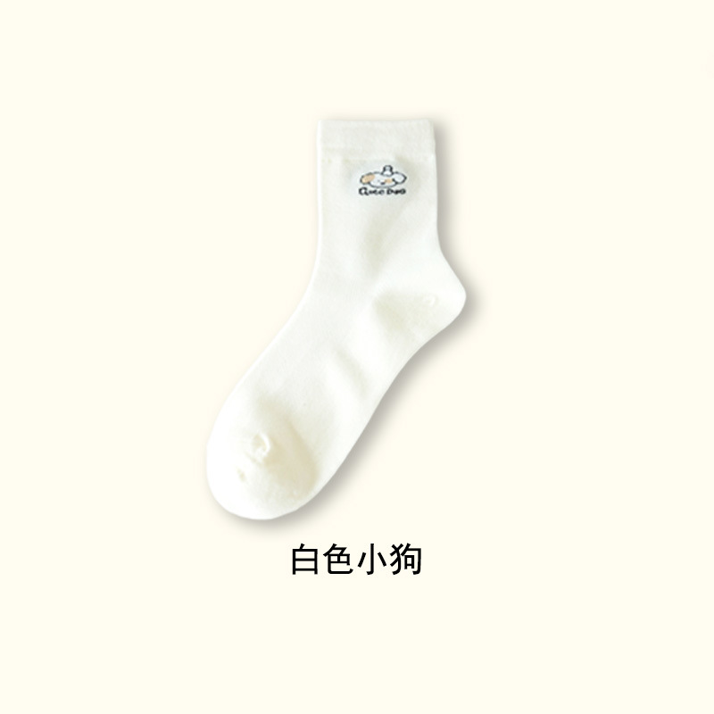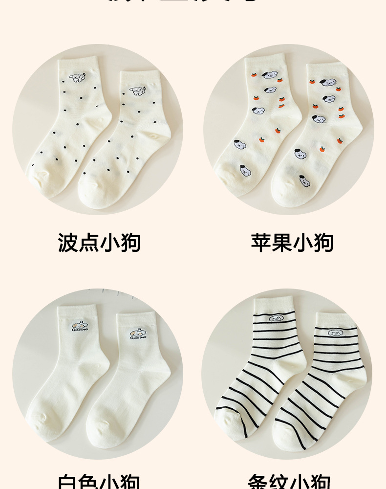 袜子女可爱卡通小狗网眼透气黑白圆点条纹中筒袜ins潮袜夏季薄款
