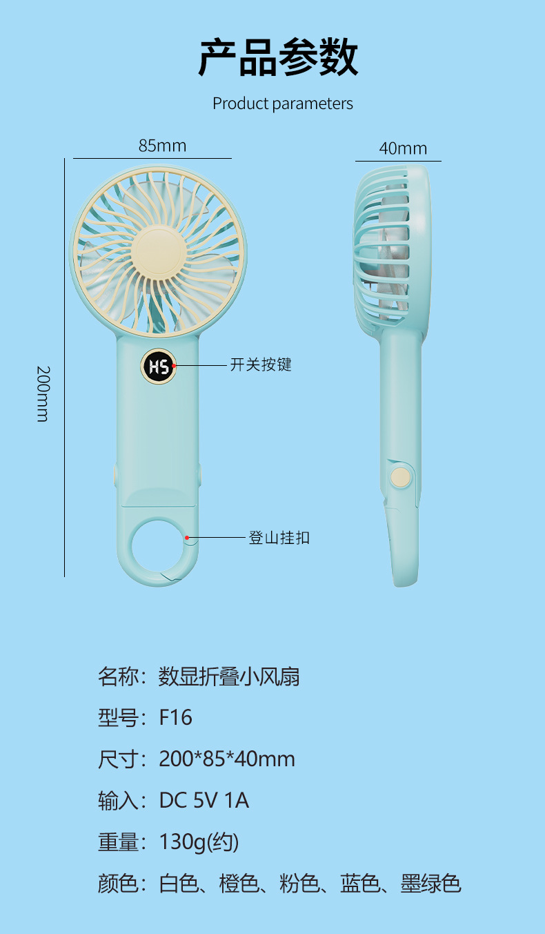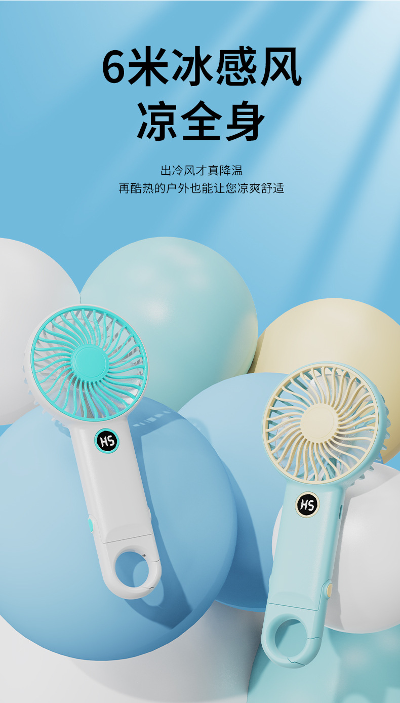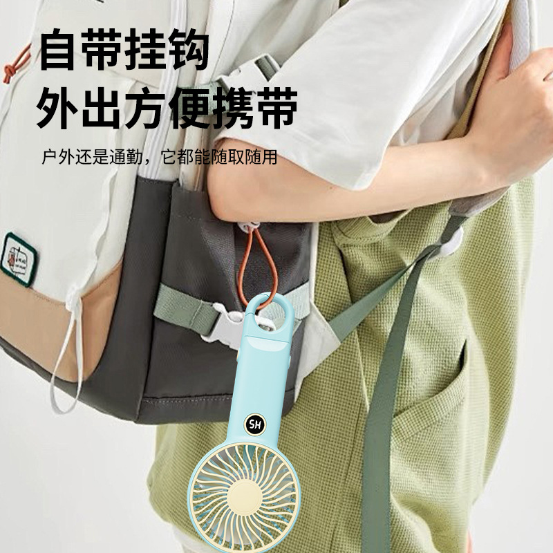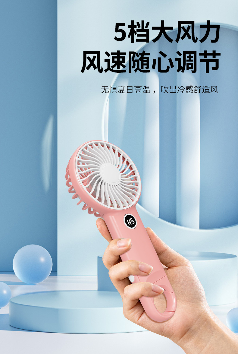 跨境优选登山扣USB手持小风扇5档数显TYPE-C充电接口可彩印LOGO