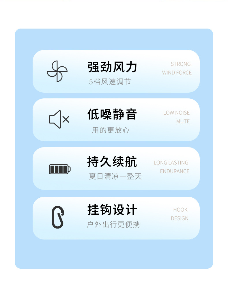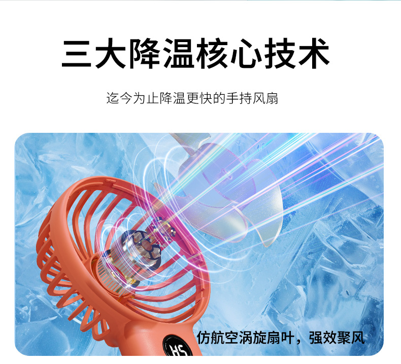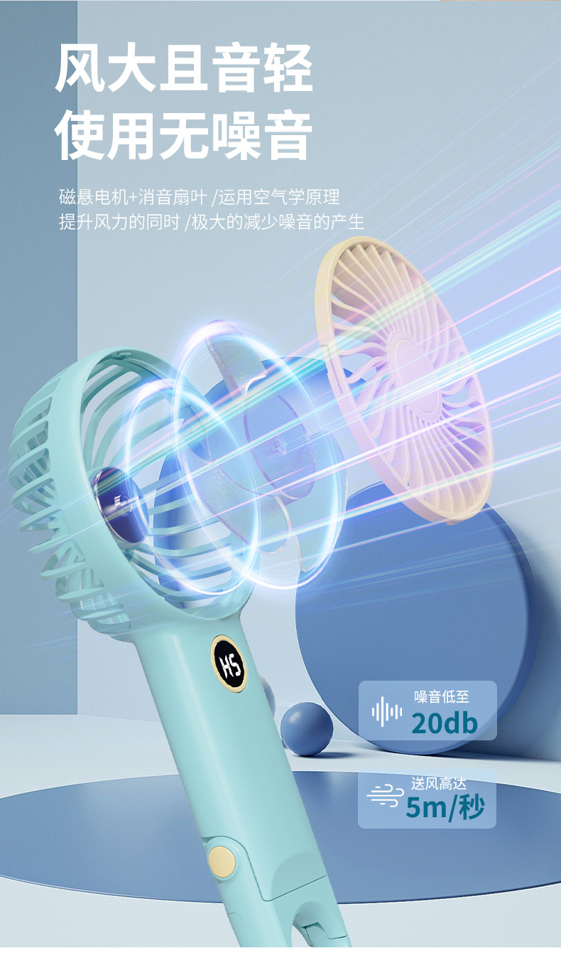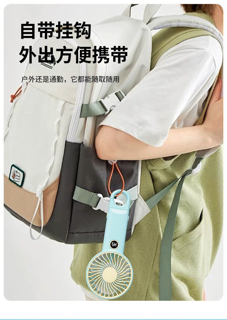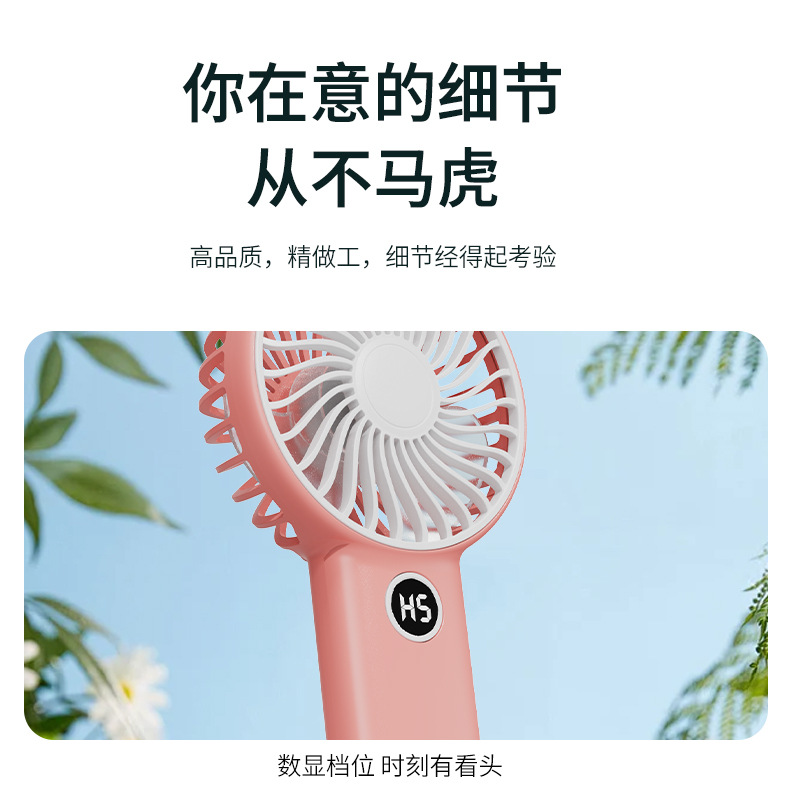 跨境优选登山扣USB手持小风扇5档数显TYPE-C充电接口可彩印LOGO