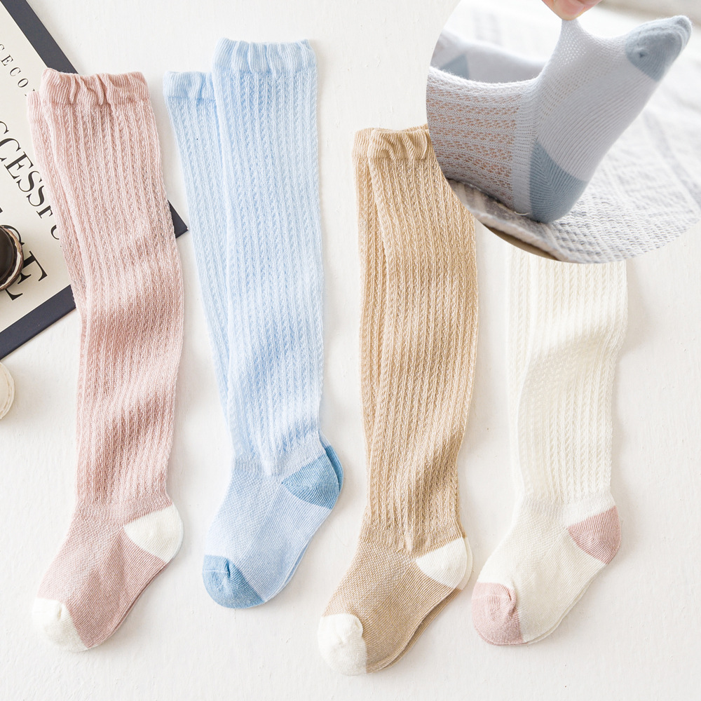 秋婴儿过膝防蚊袜0-12-24个月宝宝长筒袜四色可挑网眼松口袜