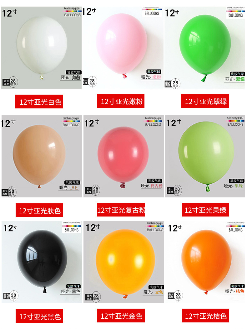 12寸2.8g亚光气球婚庆用品生日派对商场活动装饰乳胶气球批发跨境