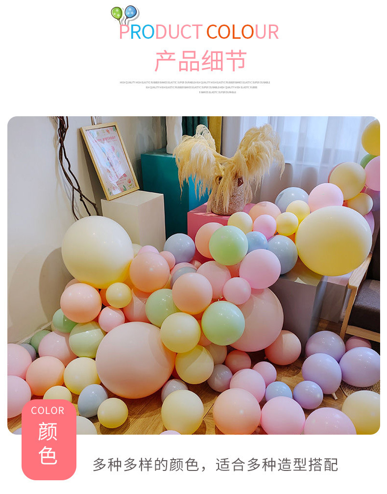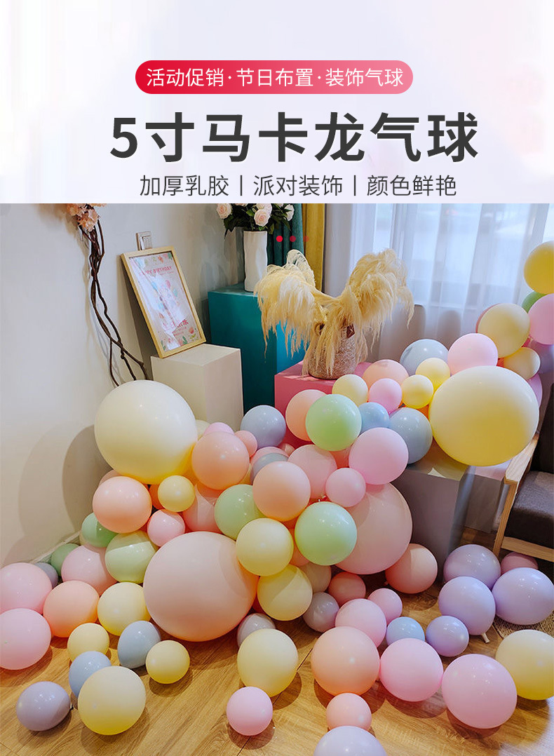 5寸马卡龙气球宝宝生日宴装饰气球结婚庆气球200个装圆形乳胶气球