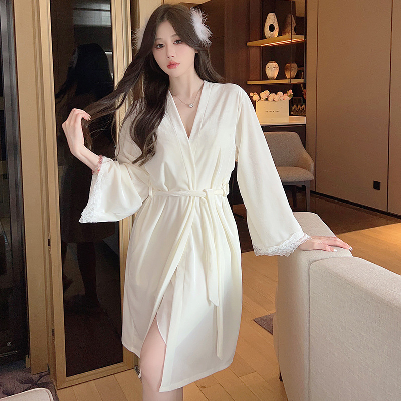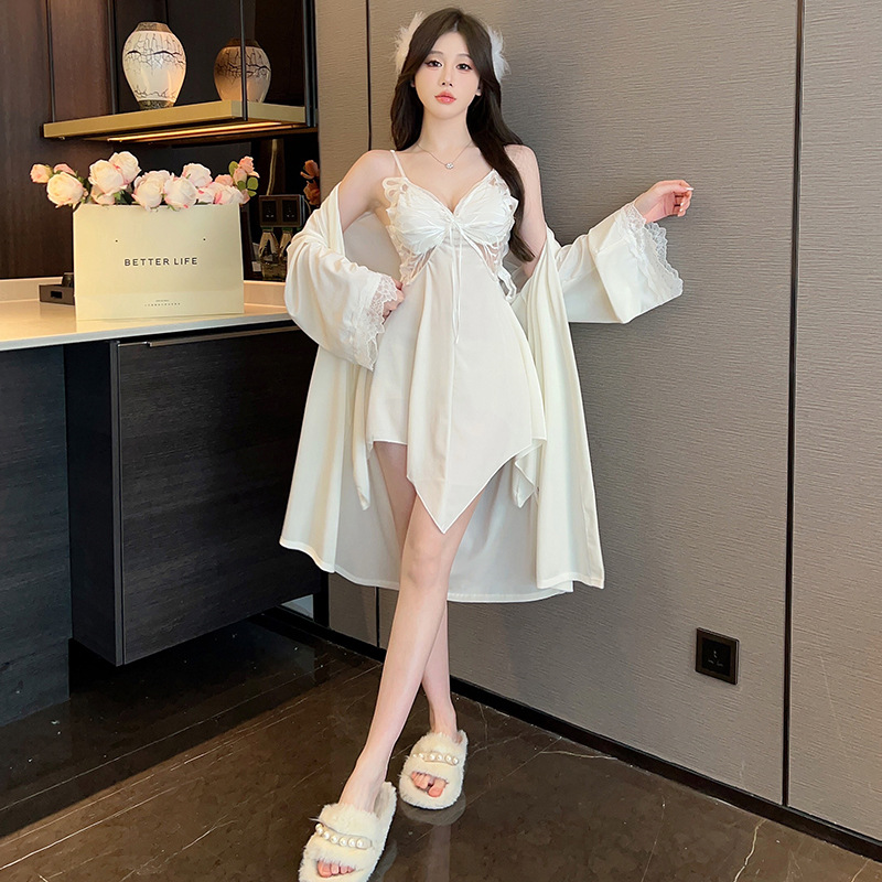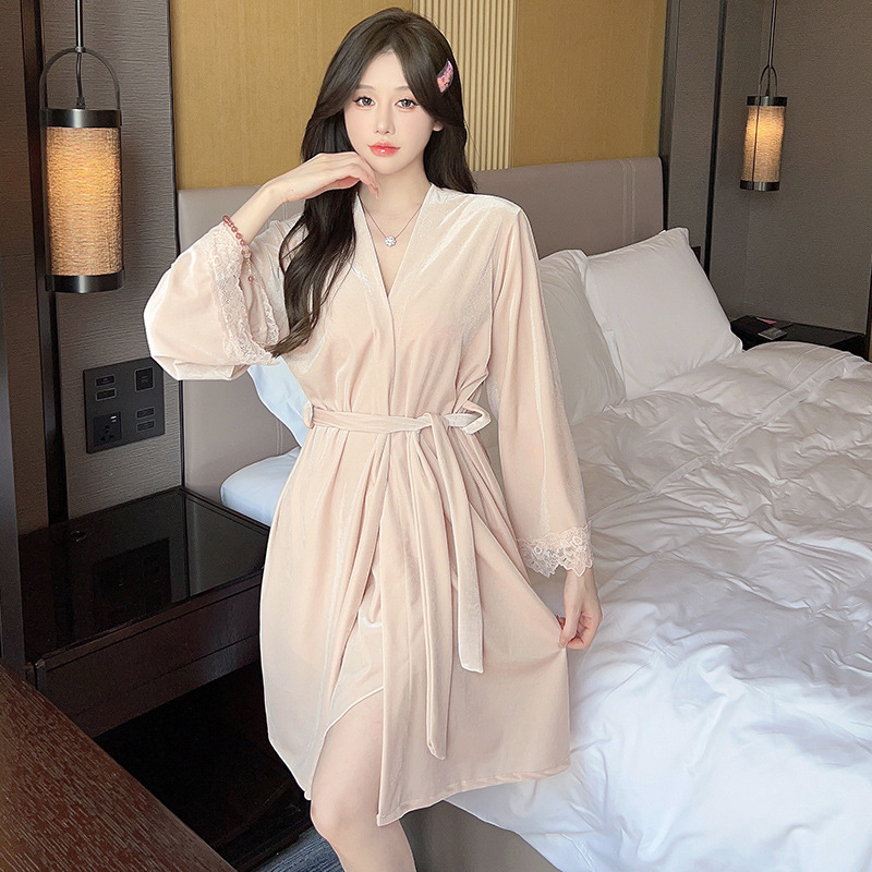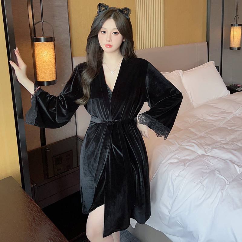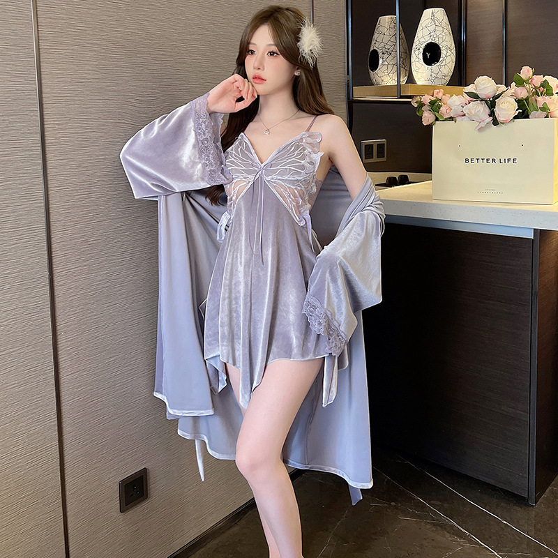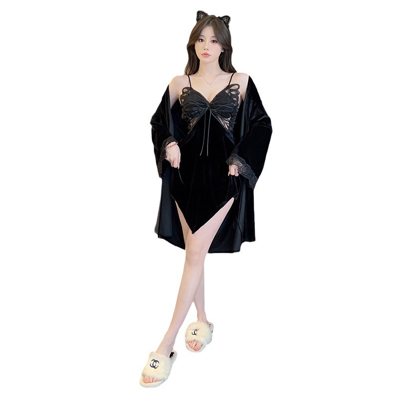 性感蕾丝吊带睡裙蝴蝶加胸垫简约舒适家居服套装镂空金丝绒睡衣女