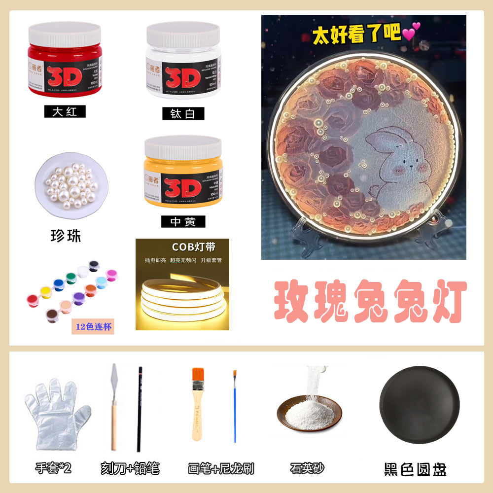 中秋手工diy肌理玫瑰兔兔月亮灯材料包 小夜灯七夕情人节创意礼物