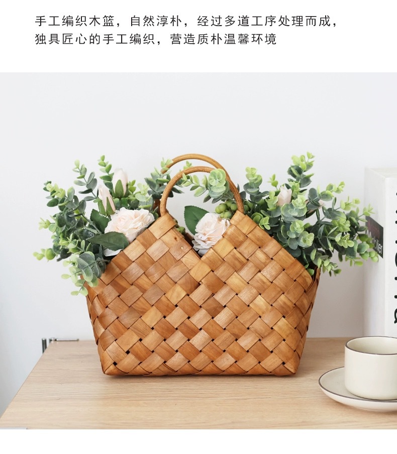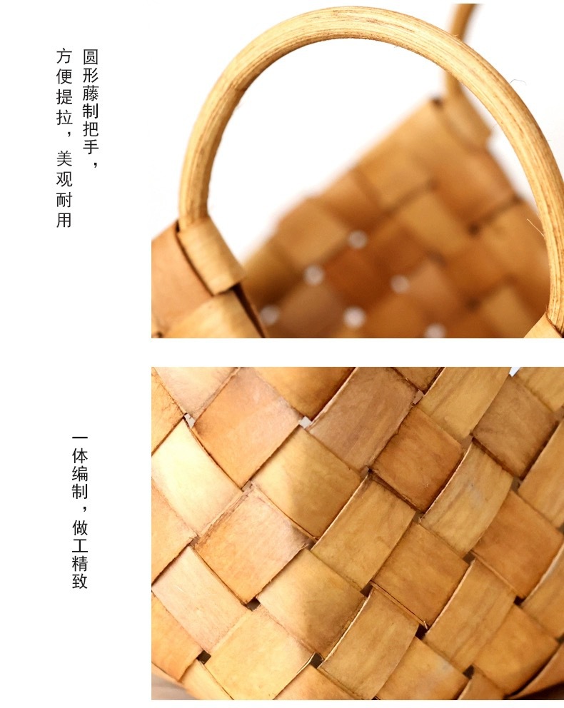 2024新款大号伴手礼篮子糕点包装复古提篮中秋手工木片编织手提篮