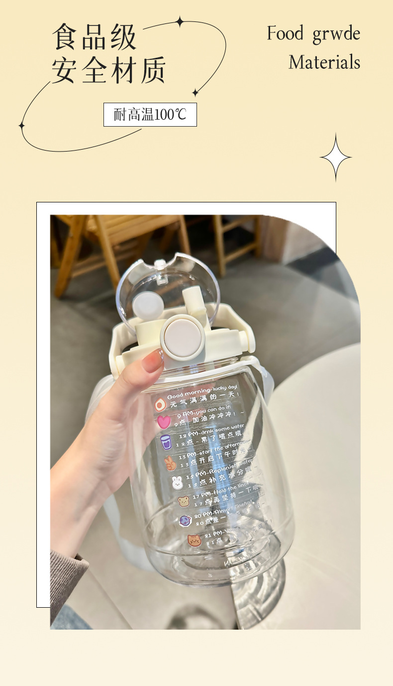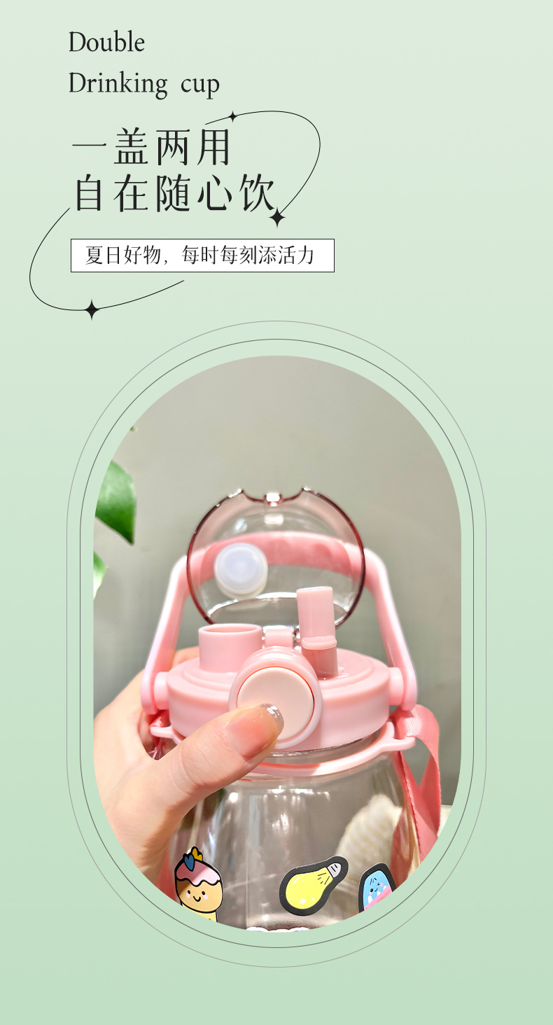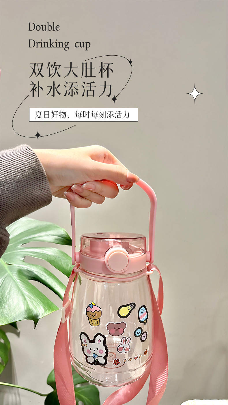 大容量双饮大肚男女网红高颜值塑料杯带吸管儿童背带水壶礼品杯子